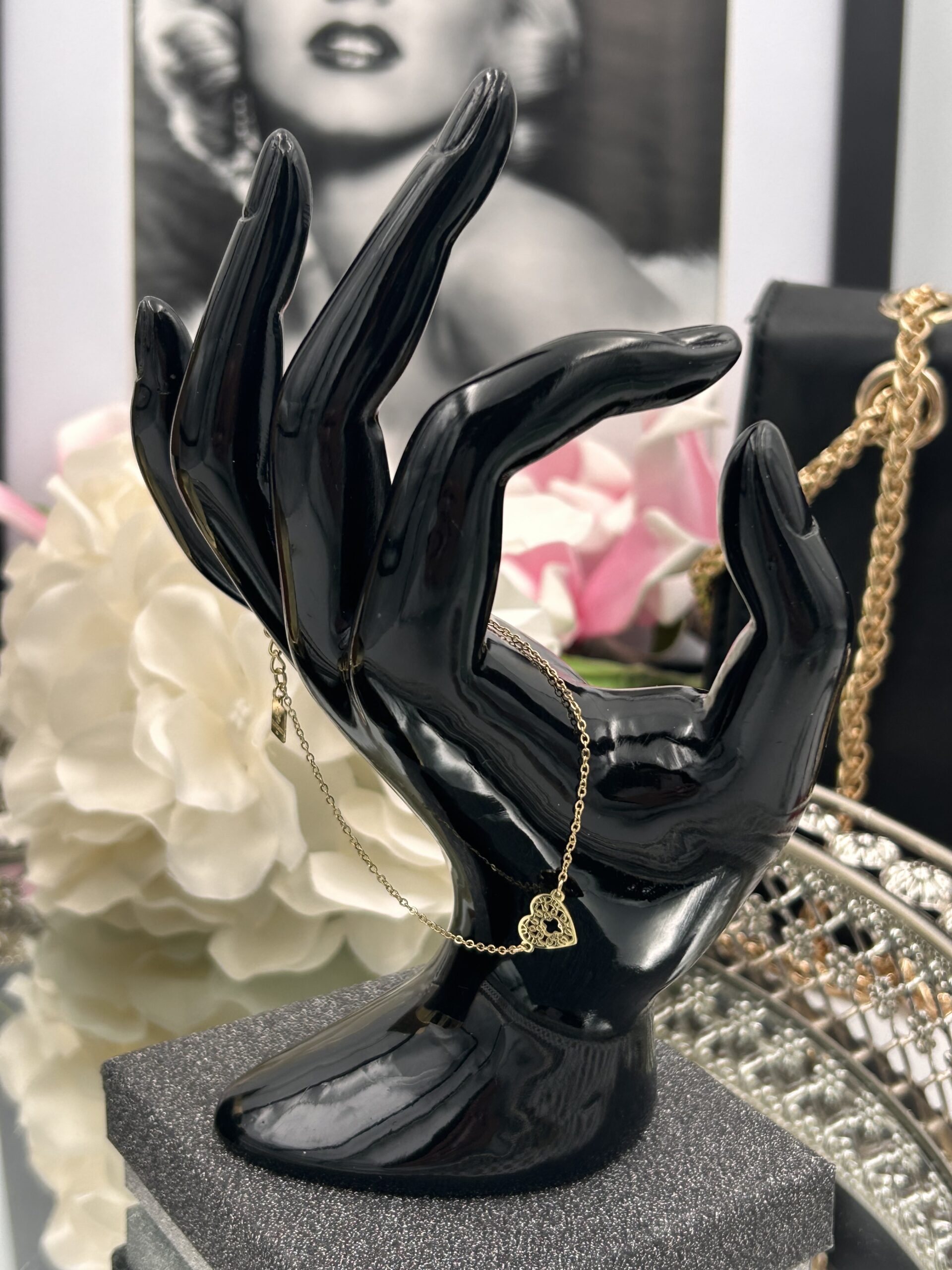 Bransoletka serce ażur stal 316L złota