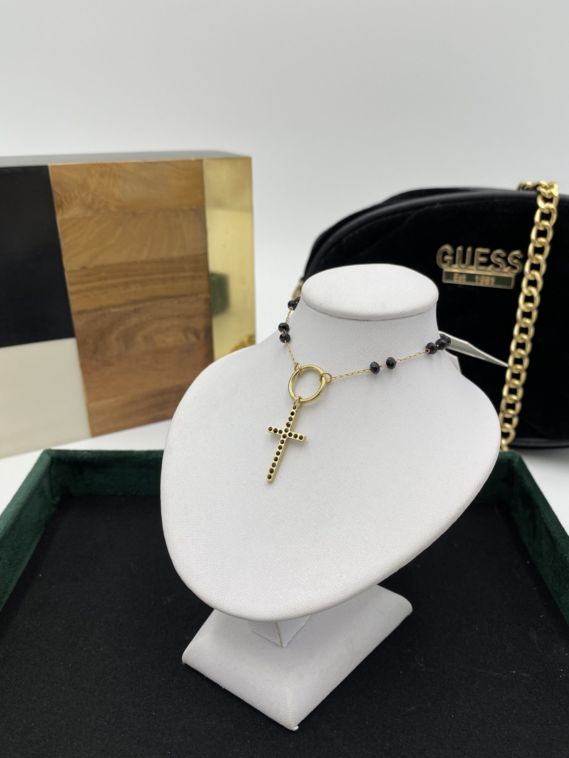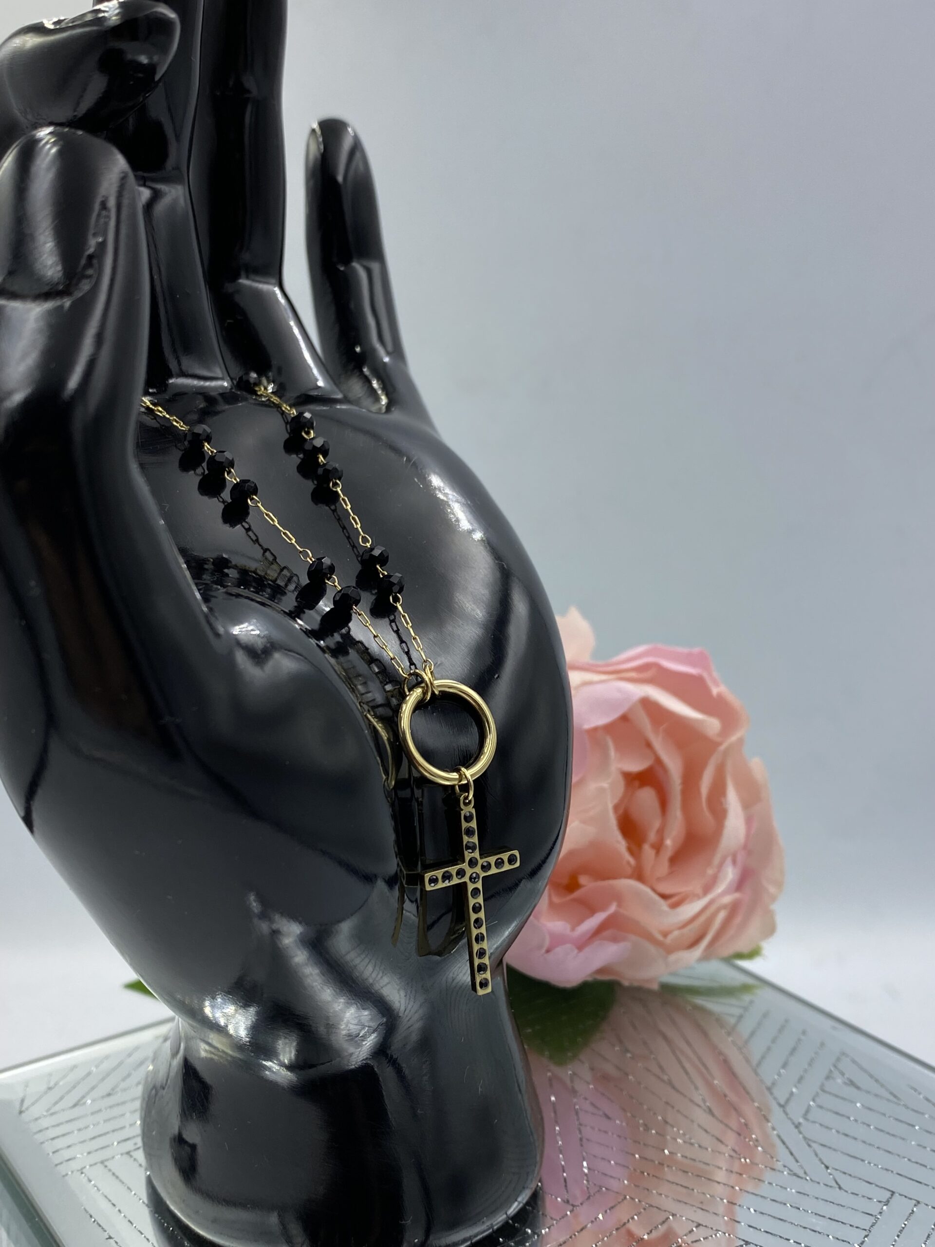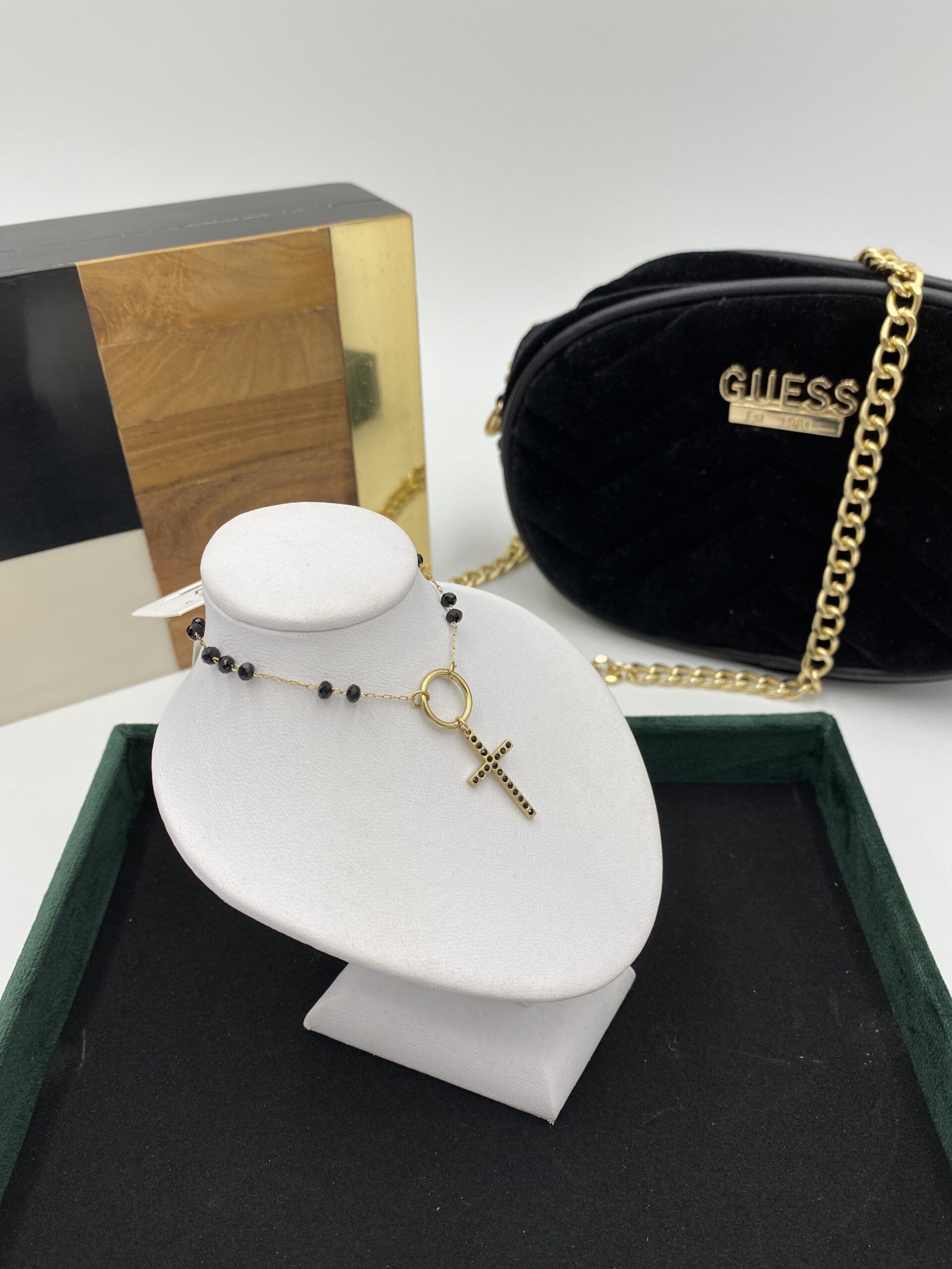 Celebrytka – delikatna, krzyżyk wysadzany czarnymi cyrkoniami. Łańcuszek z czarnymi szlifowanymi kamieniami.