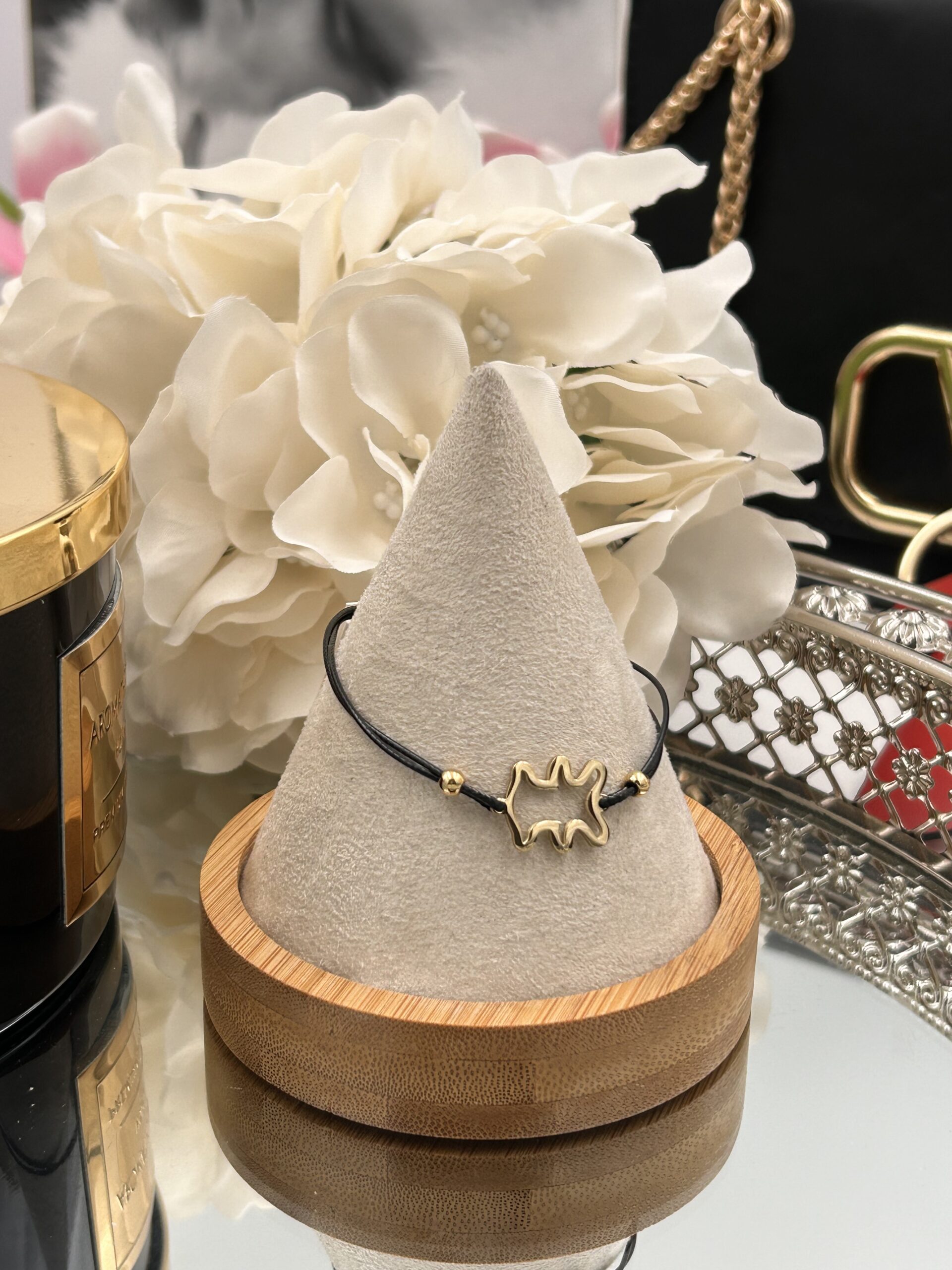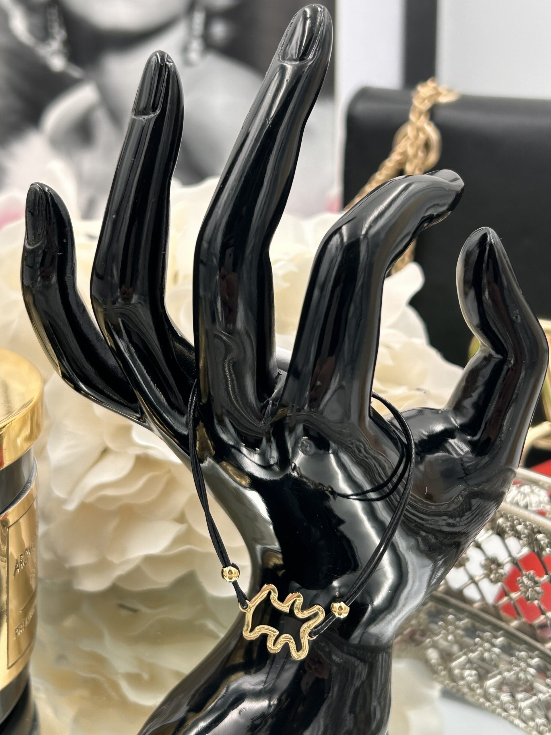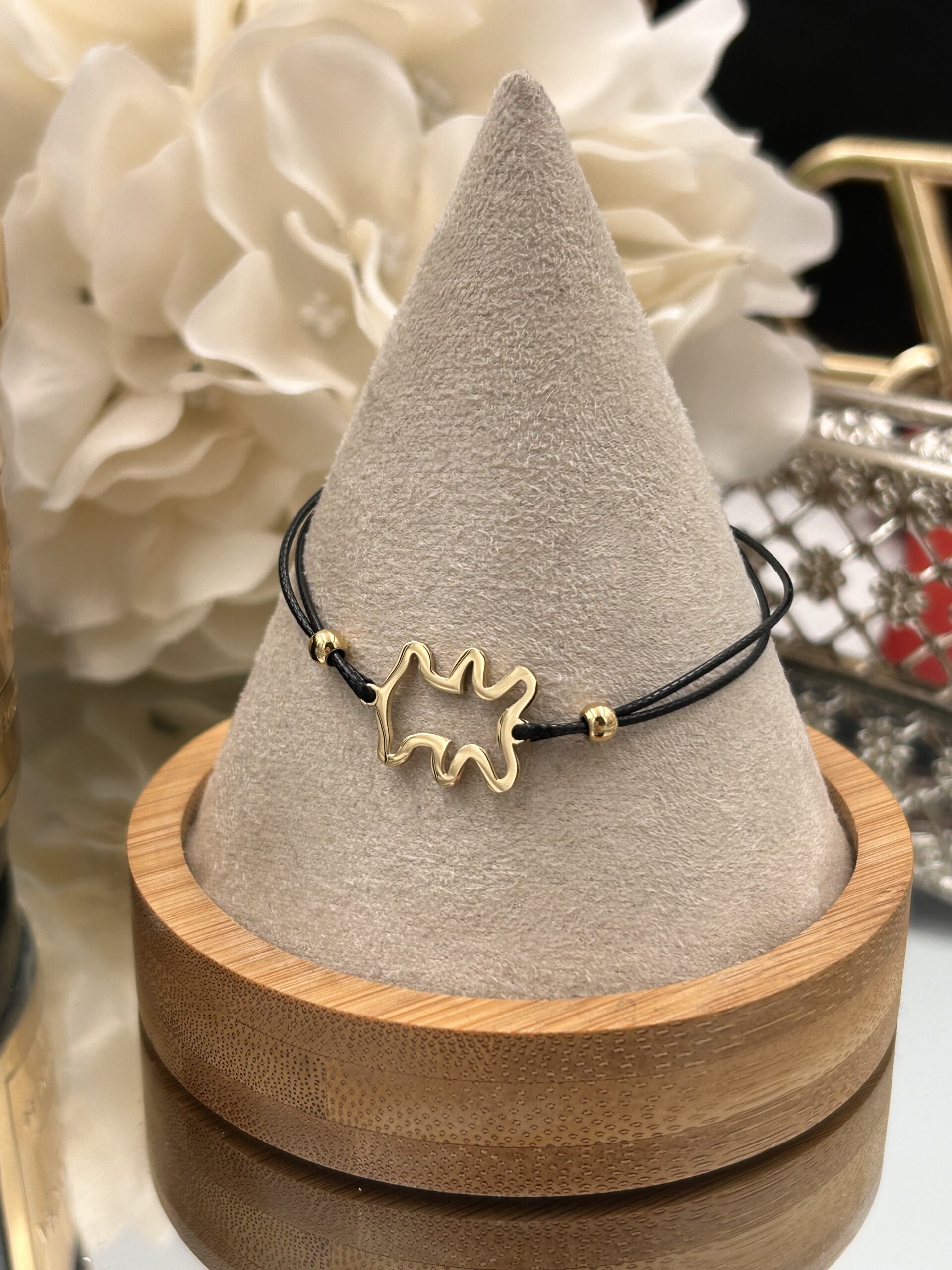 Bransoletka misiek czarny sznurek stal 316L
