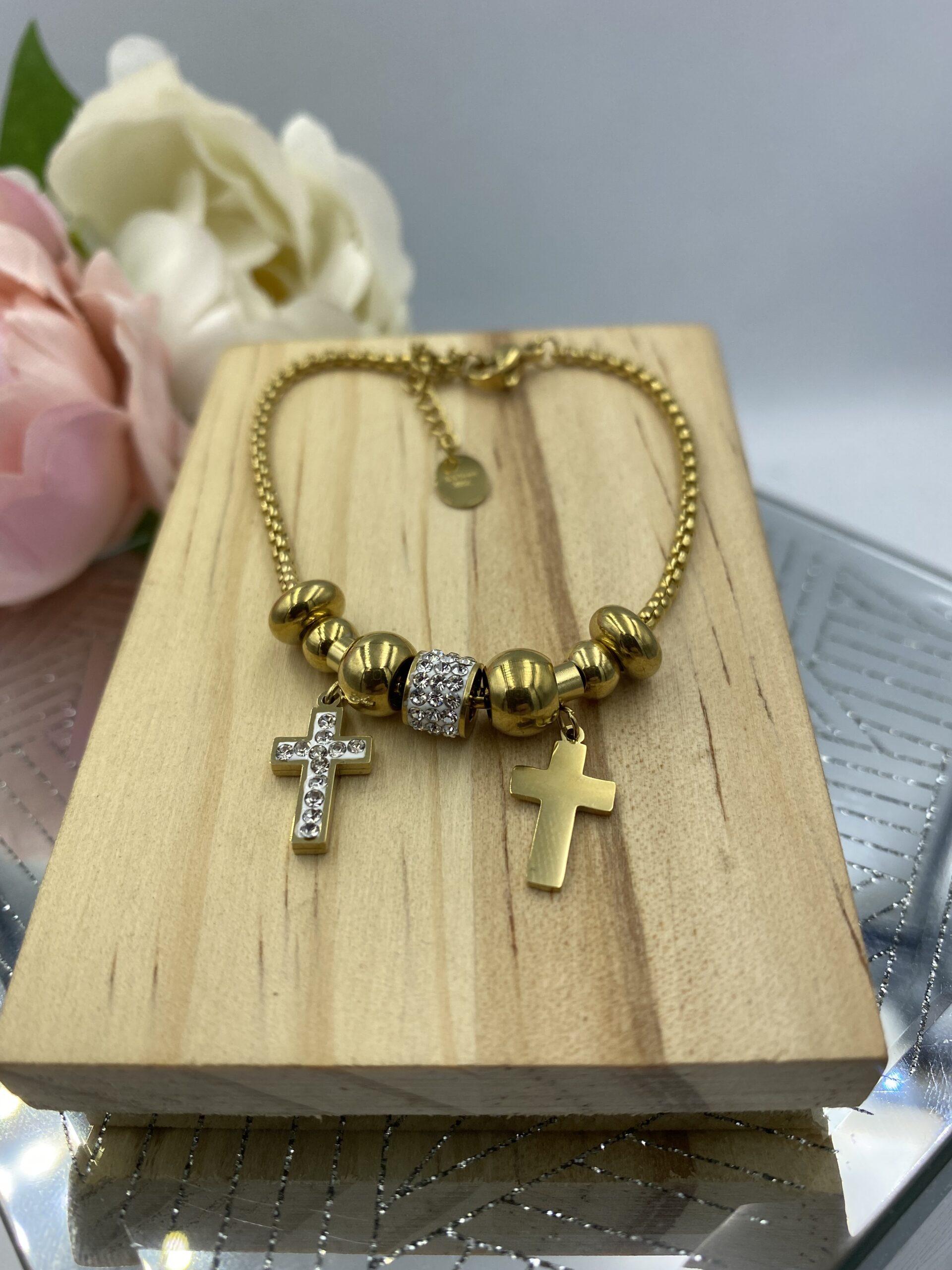 Bransoletka KRZYŻYKI wysadzane cyrkoniami. Kolor złoty.