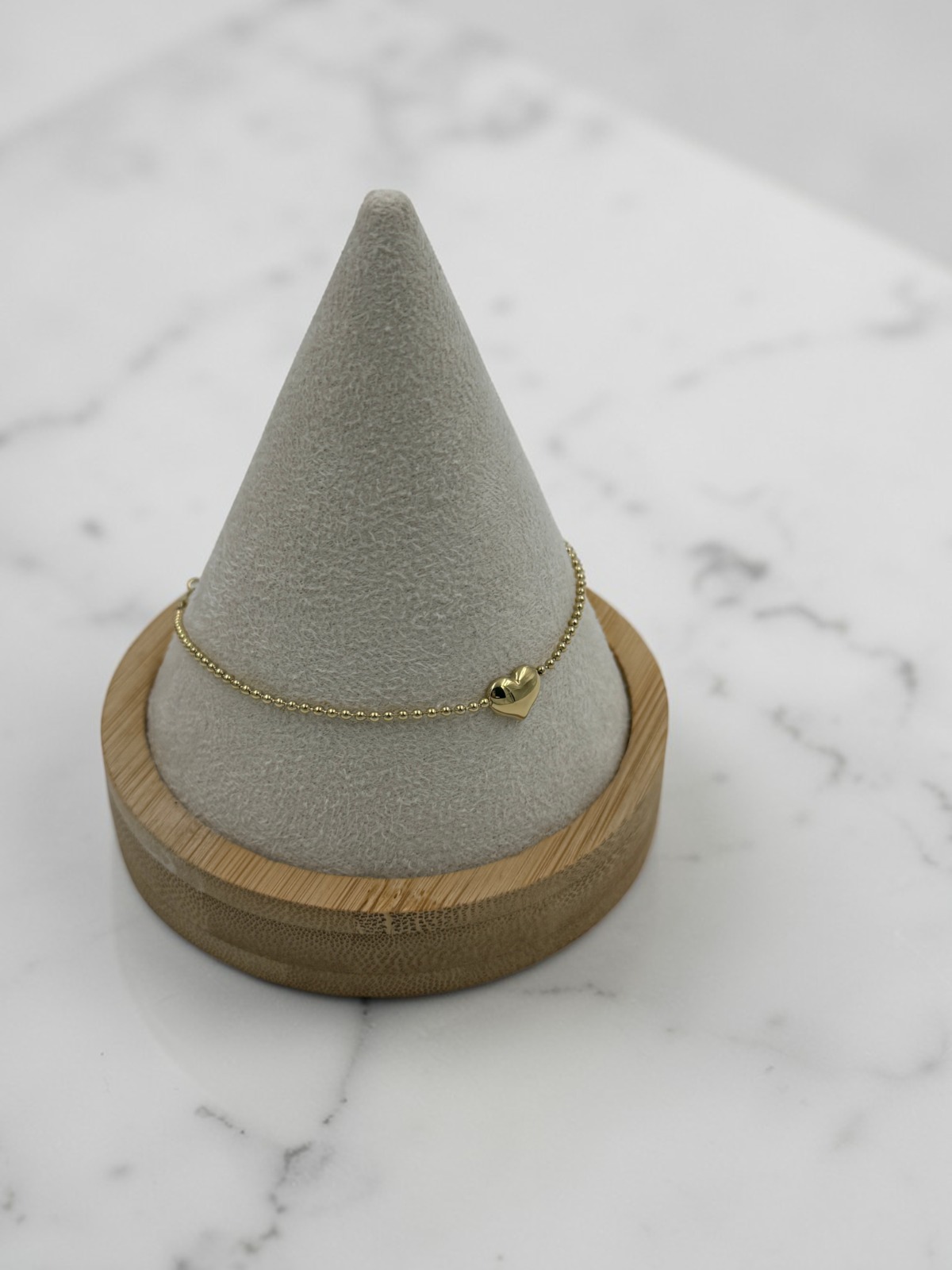 Bransoletka, piękna celebrytka, delikatna z kuleczek – serce. Kolor złoty.