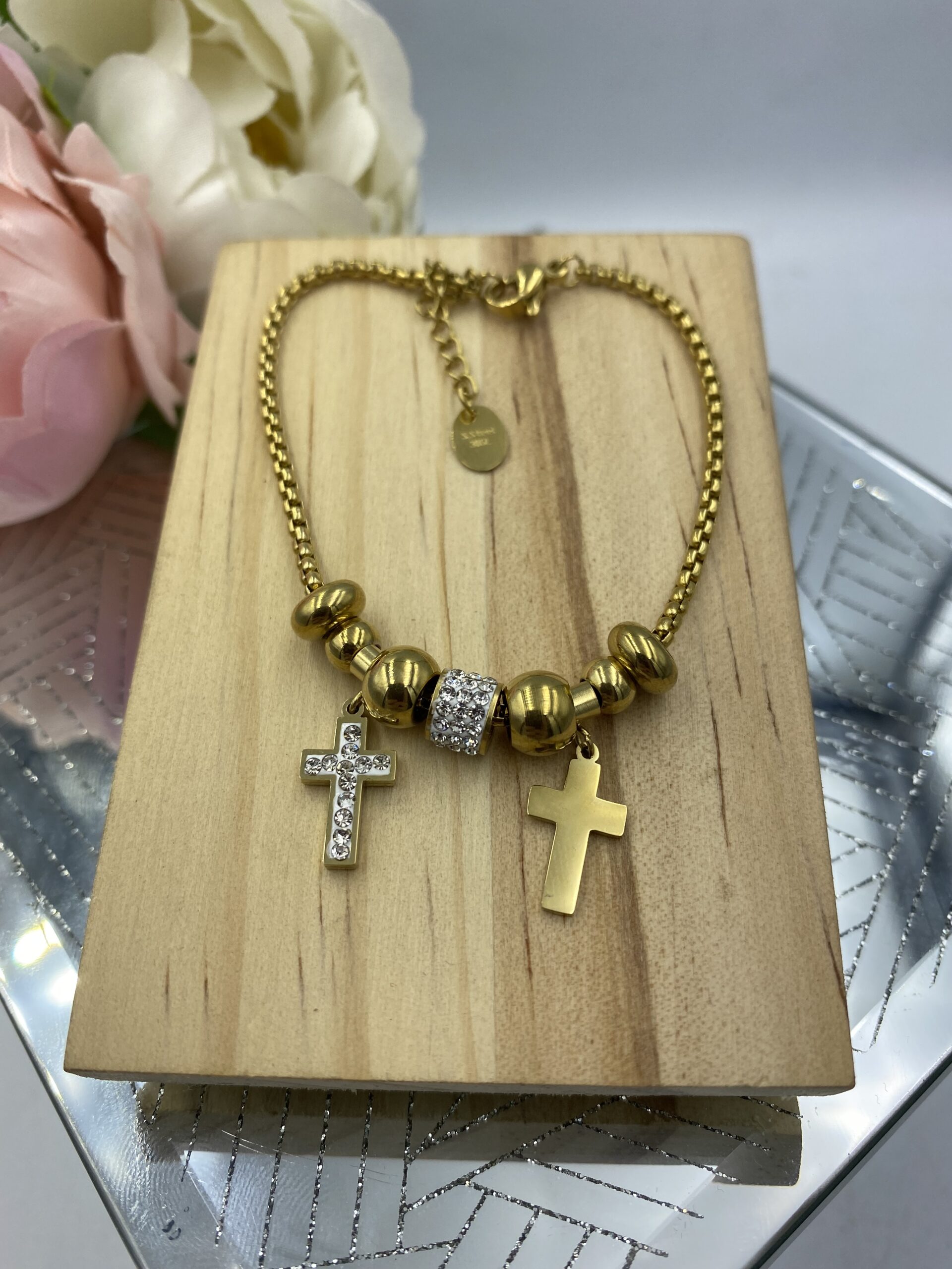 Bransoletka wężyk krzyżyk cyrkonie stal 316 złota