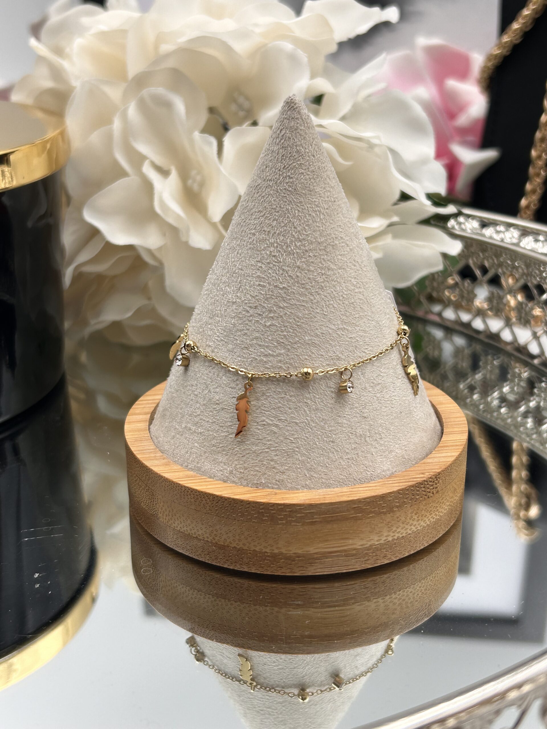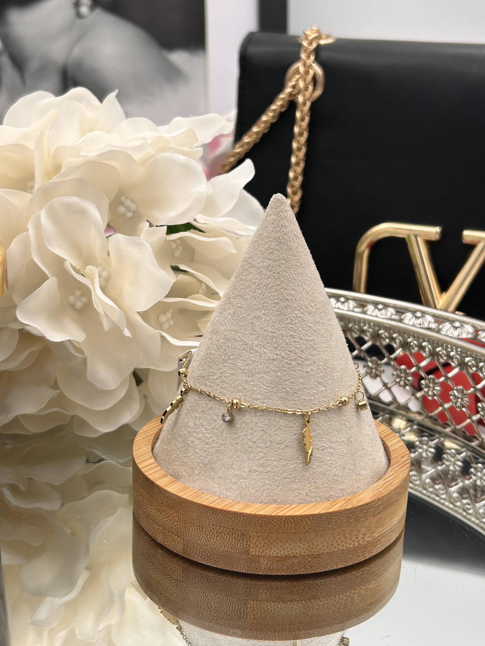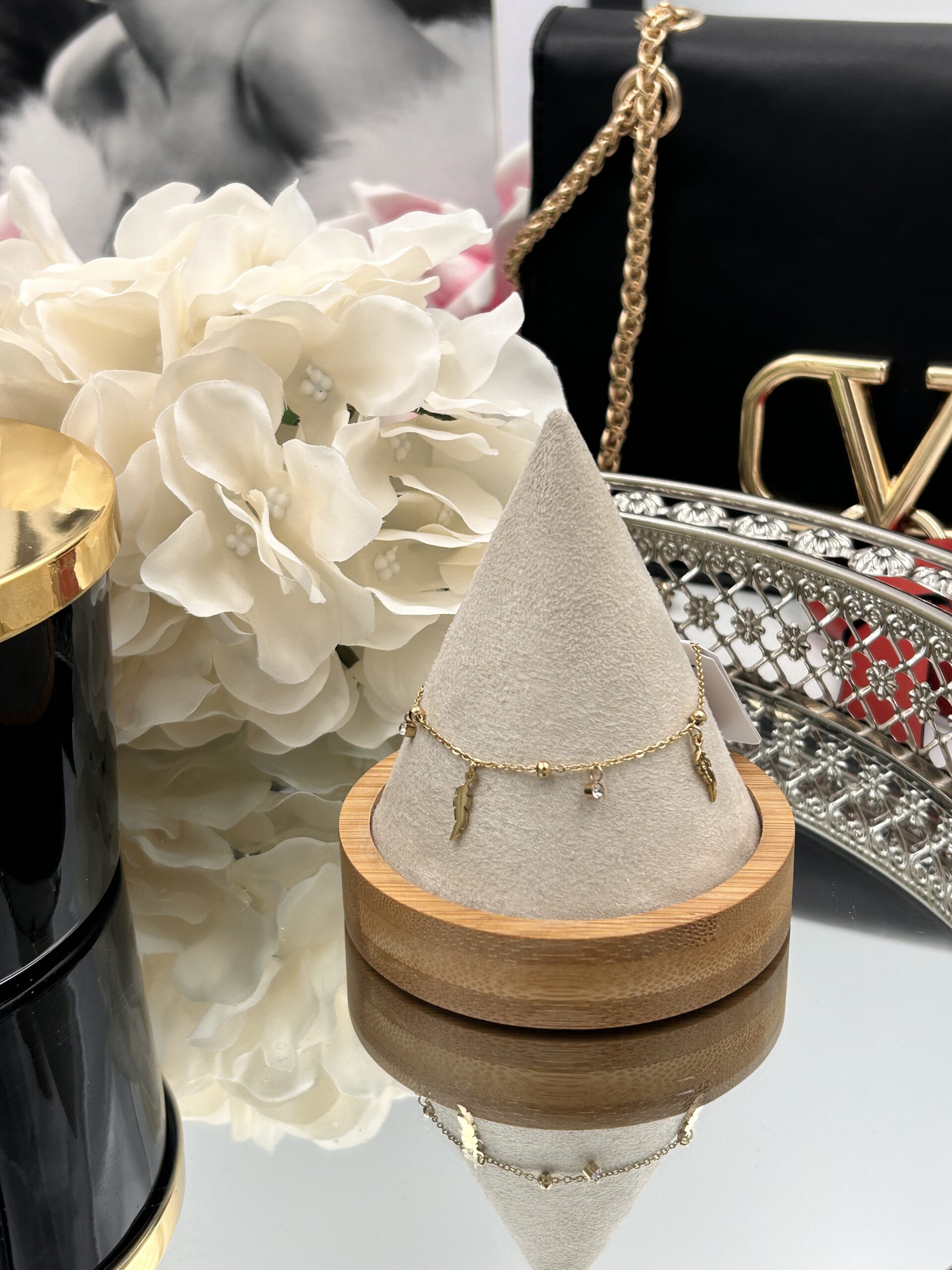 Piękna celebrytka z zawieszkami – piórka i cyrkonie.