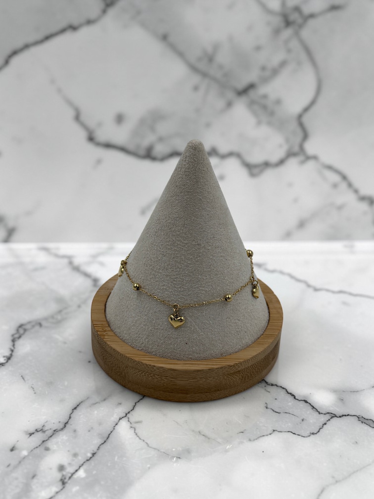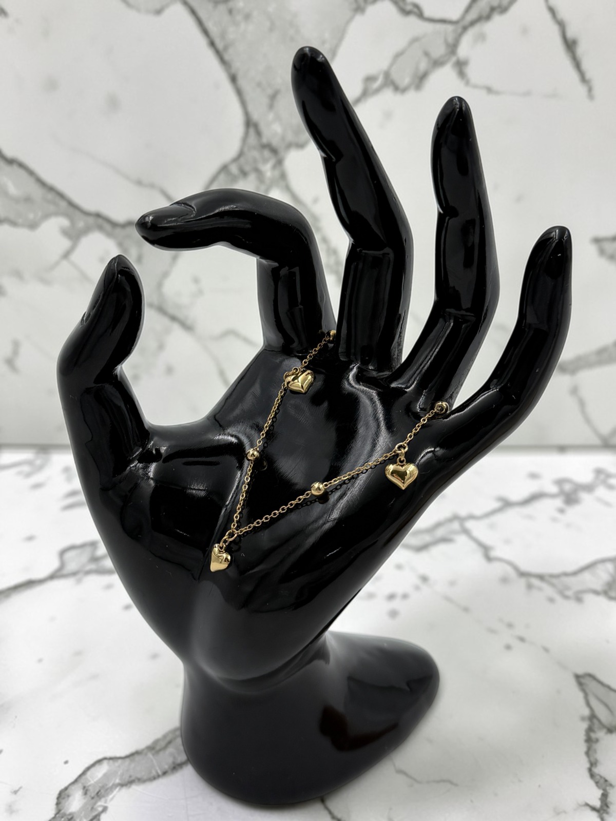 Bransoletka, piękna celebrytka, delikatny łańcuszek – serca, serduszka, kulki. Kolor złoty.