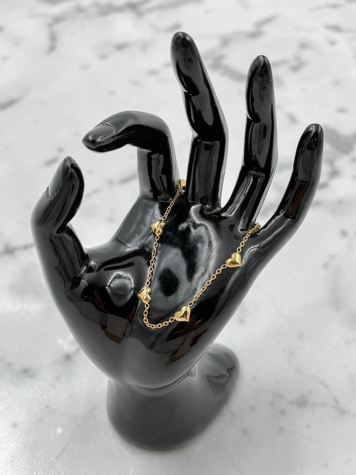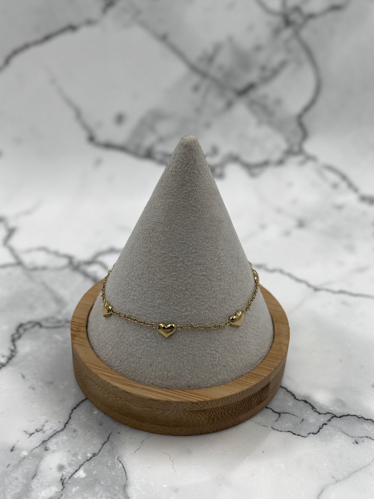 Bransoletka, piękna celebrytka, delikatny łańcuszek – serca, serduszka. Kolor złoty.