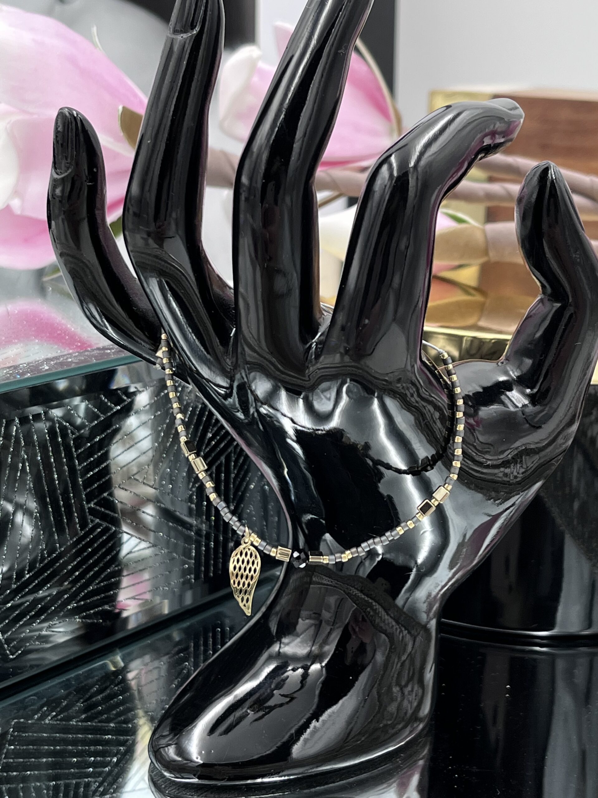 Celebrytka – cienki delikatny sznurek z koralikami i skrzydłem.