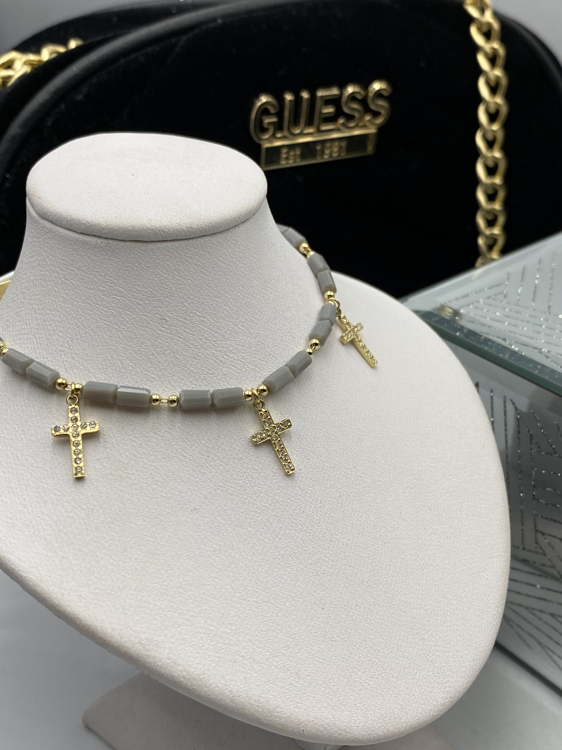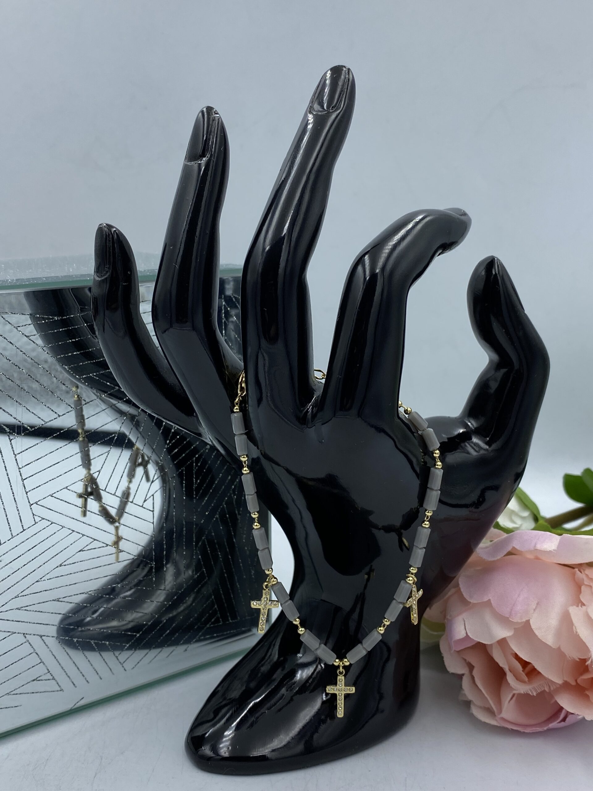 Bransoletka szare kamyki krzyż krzyżyki stal 316L złota