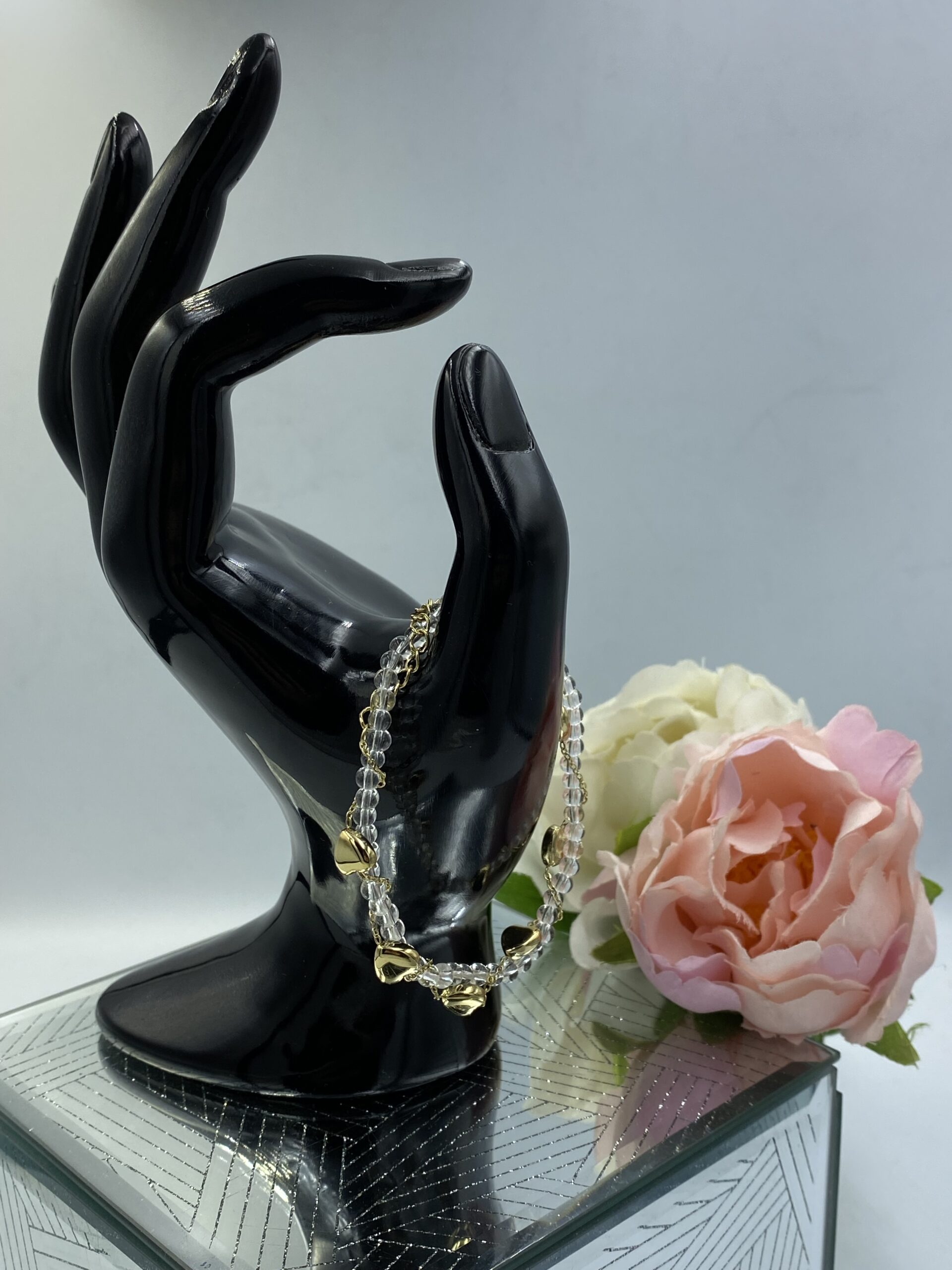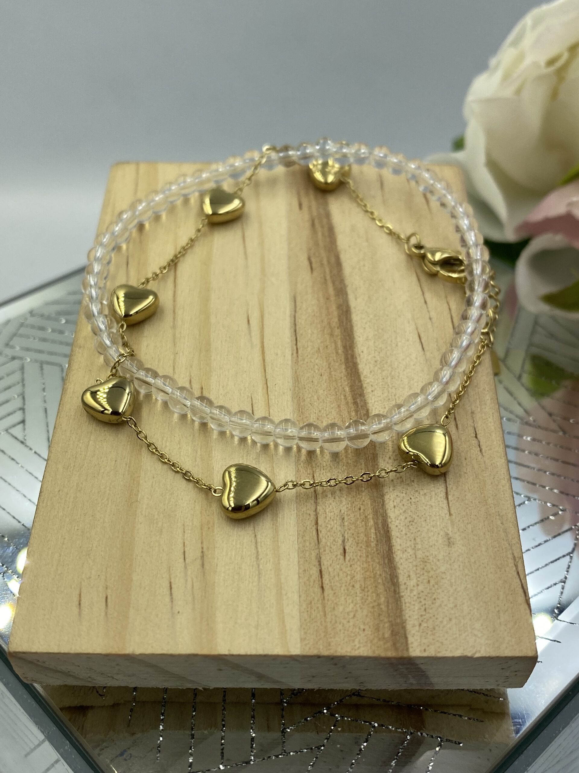 Celebrytka – łańcuszek z sercami, bransoletka z transparentnymi koralikami.