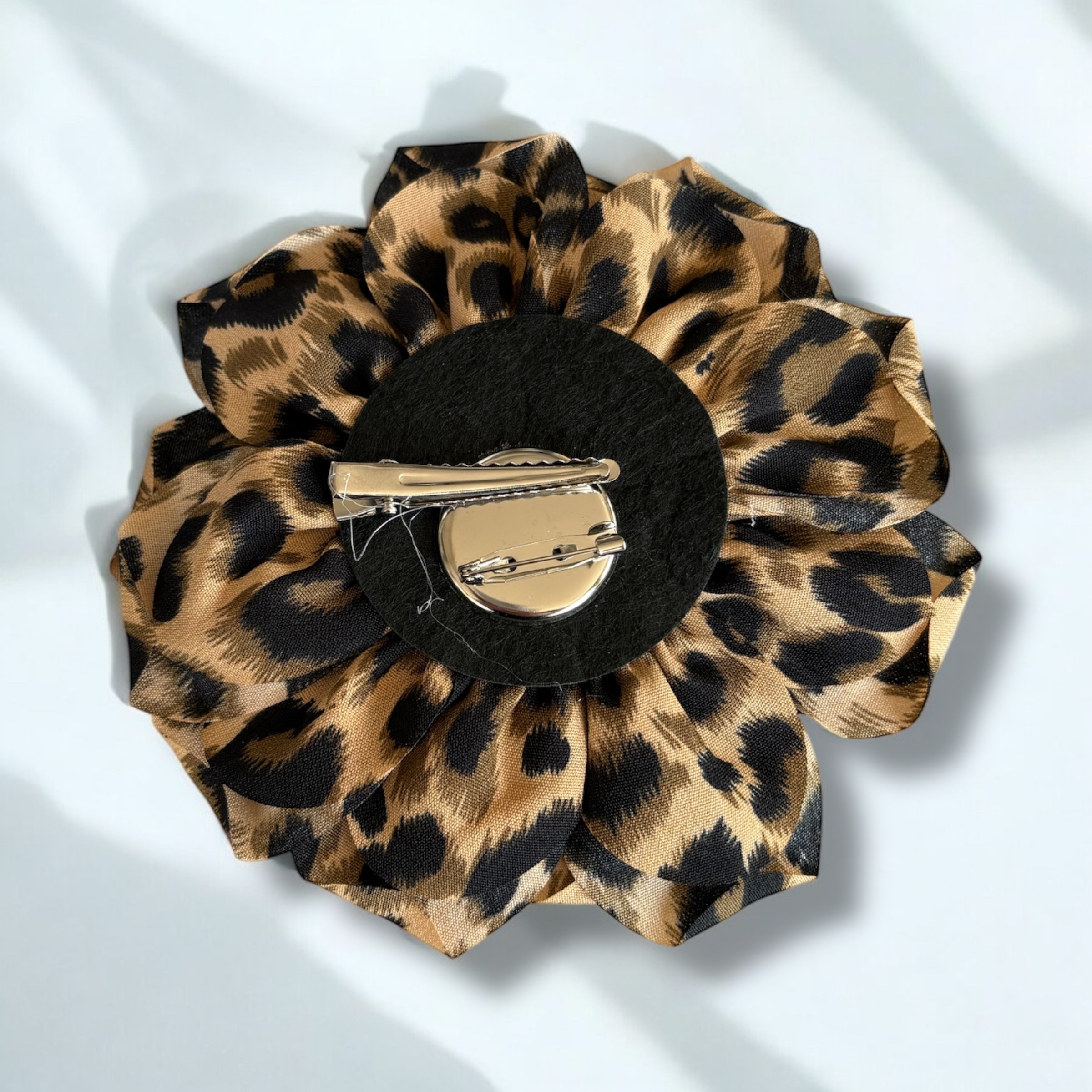 BROSZKA przypinka agrafka wsuwka duży kwiat kwiatek róża panterka 14 cm