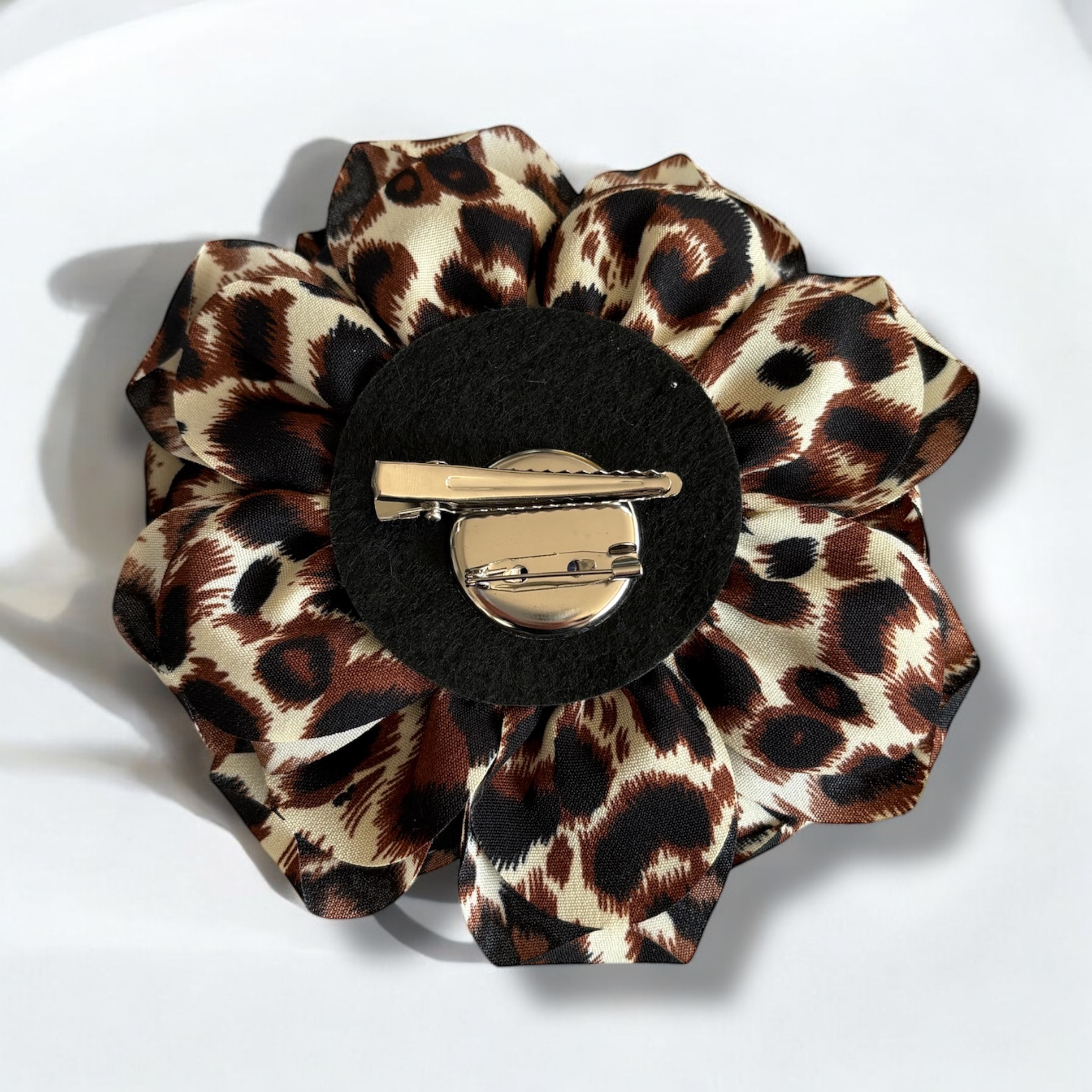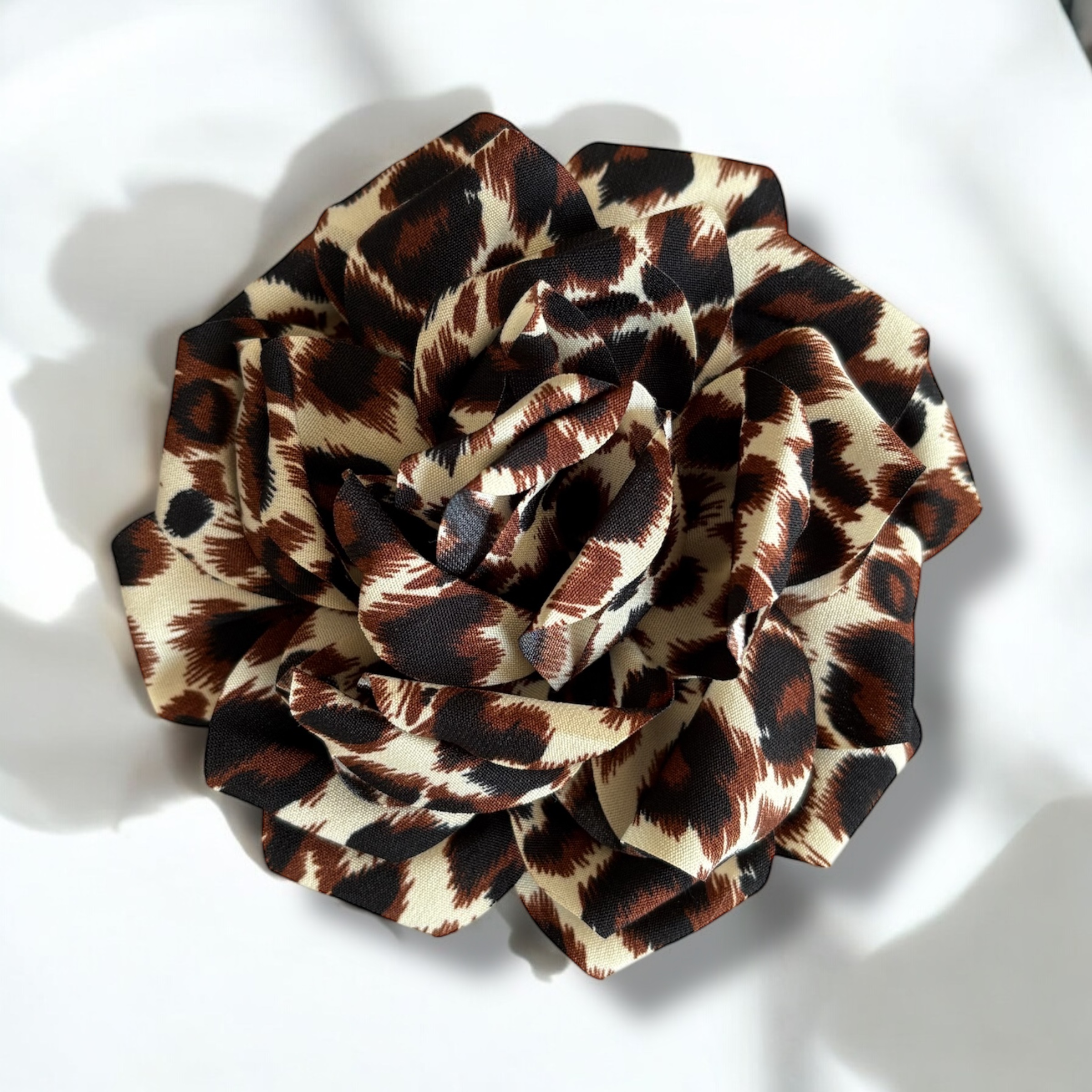 BROSZKA przypinka agrafka wsuwka duży kwiat kwiatek róża panterka 14 cm