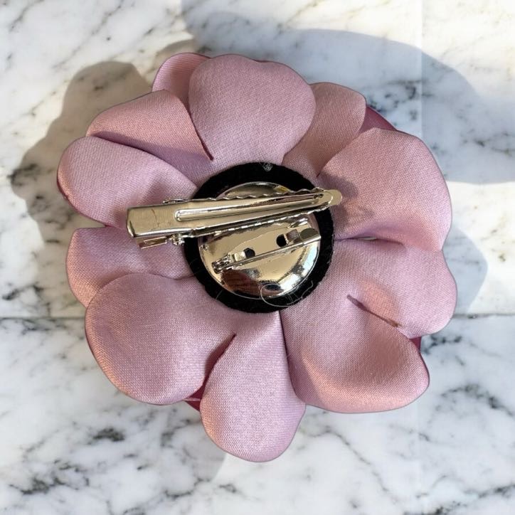 Różyczka w kolorze fioletowym, agrafka i wsuwka w kolorze srebrnym.
