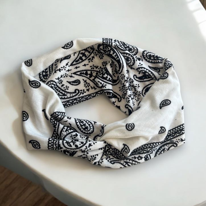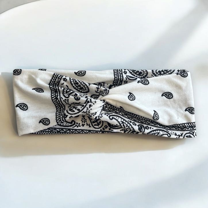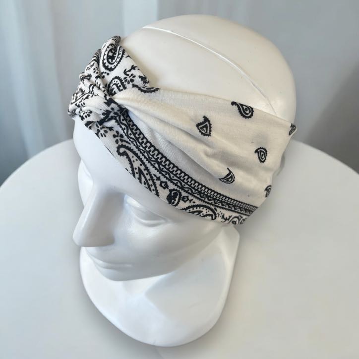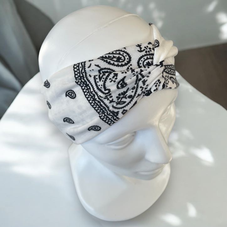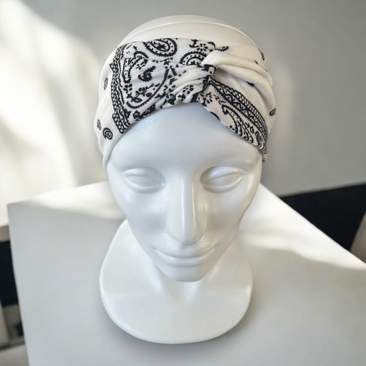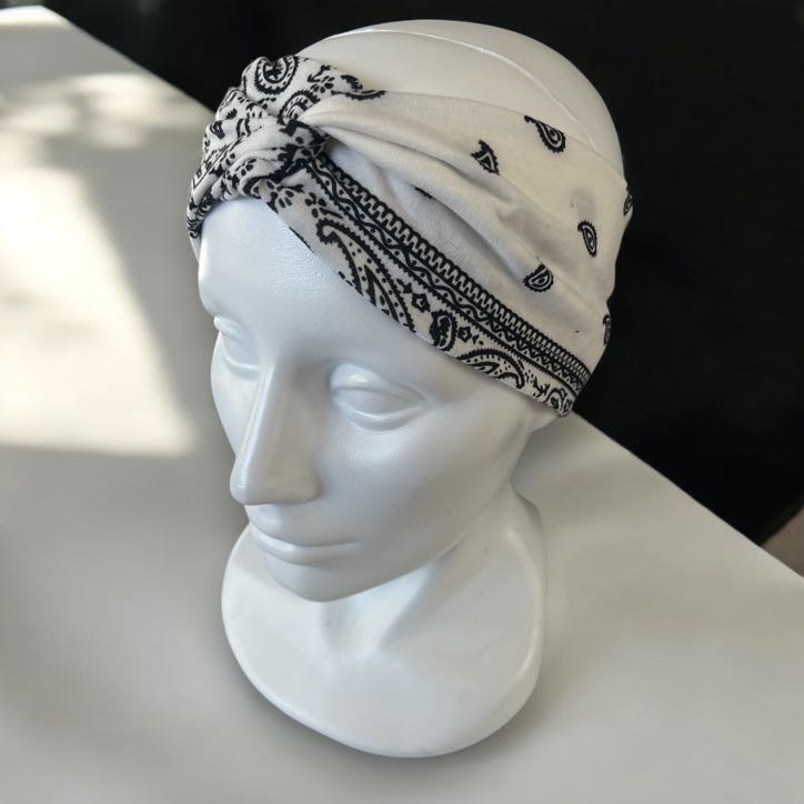 Damska opaska materiałowa bandana turban supeł biała wzorek