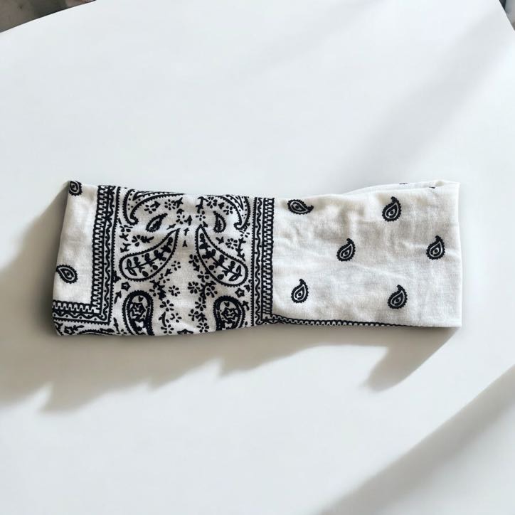 Nauszna opaska materiałowa w kolorze białym– bandanka.