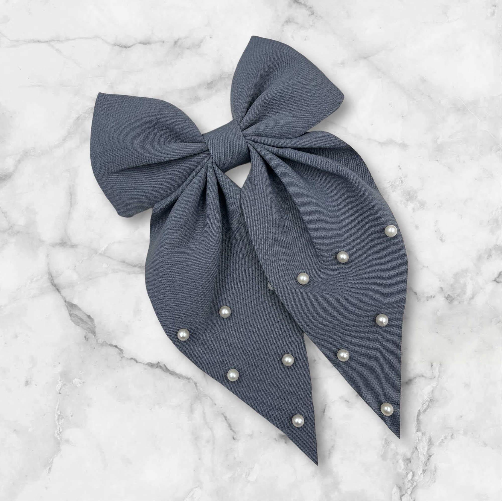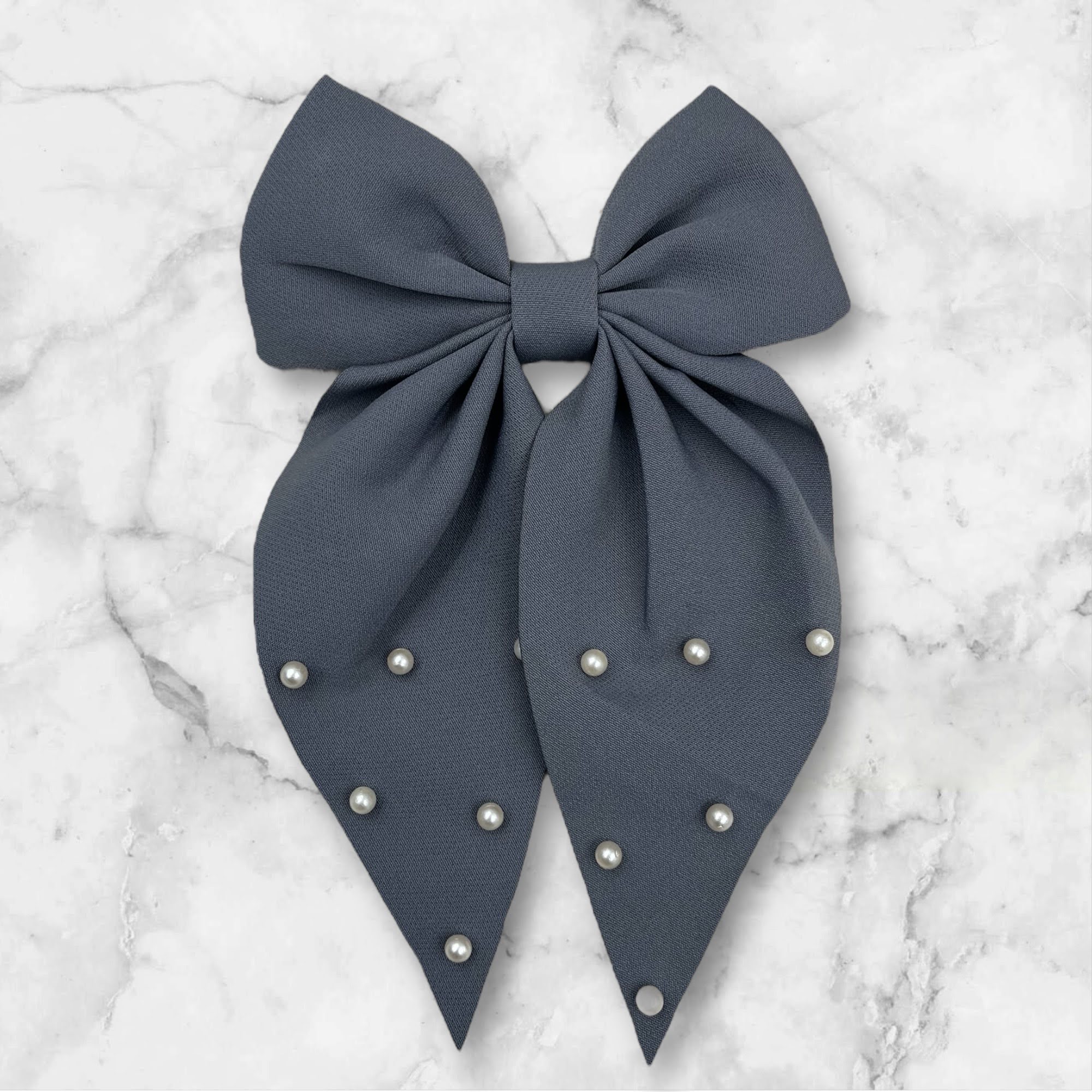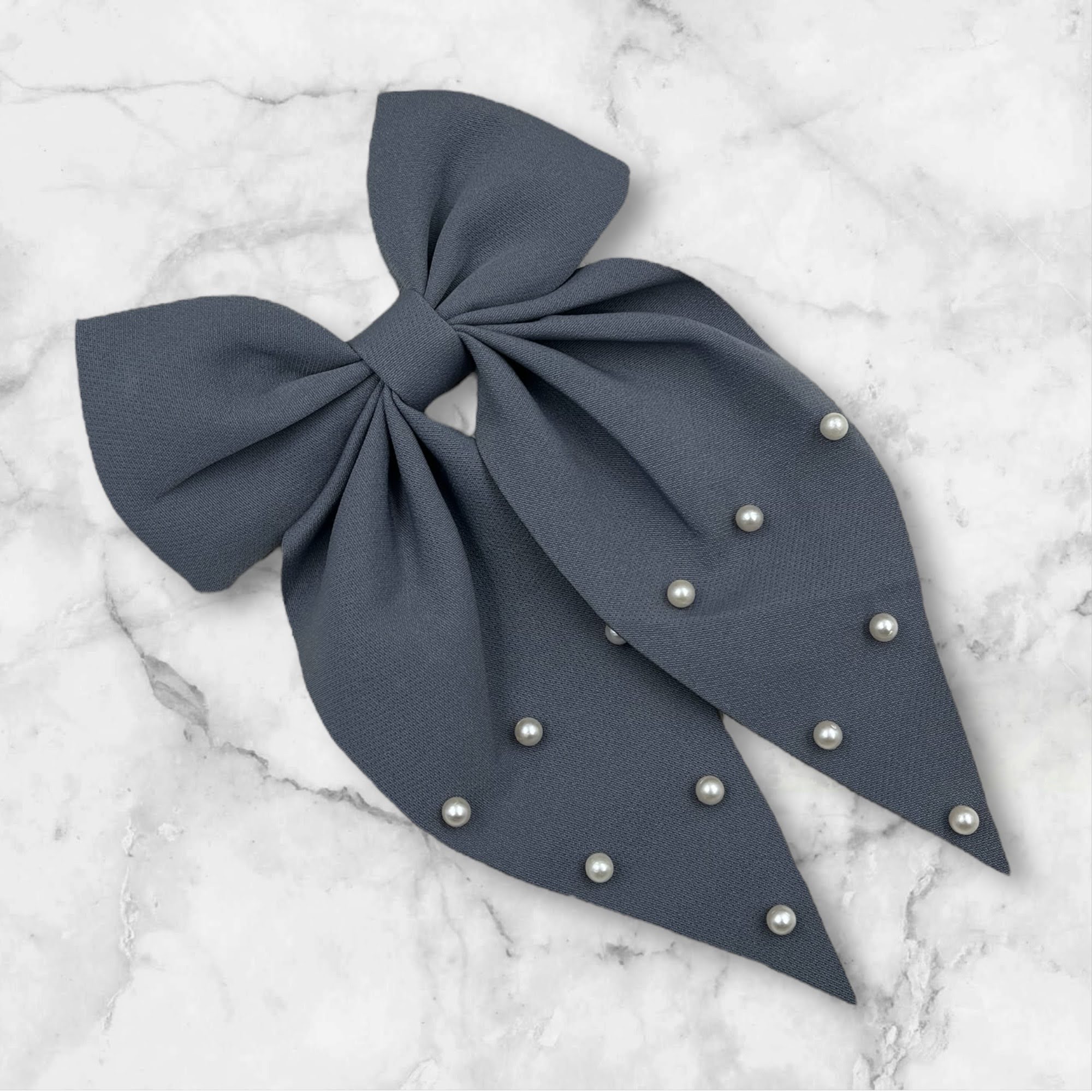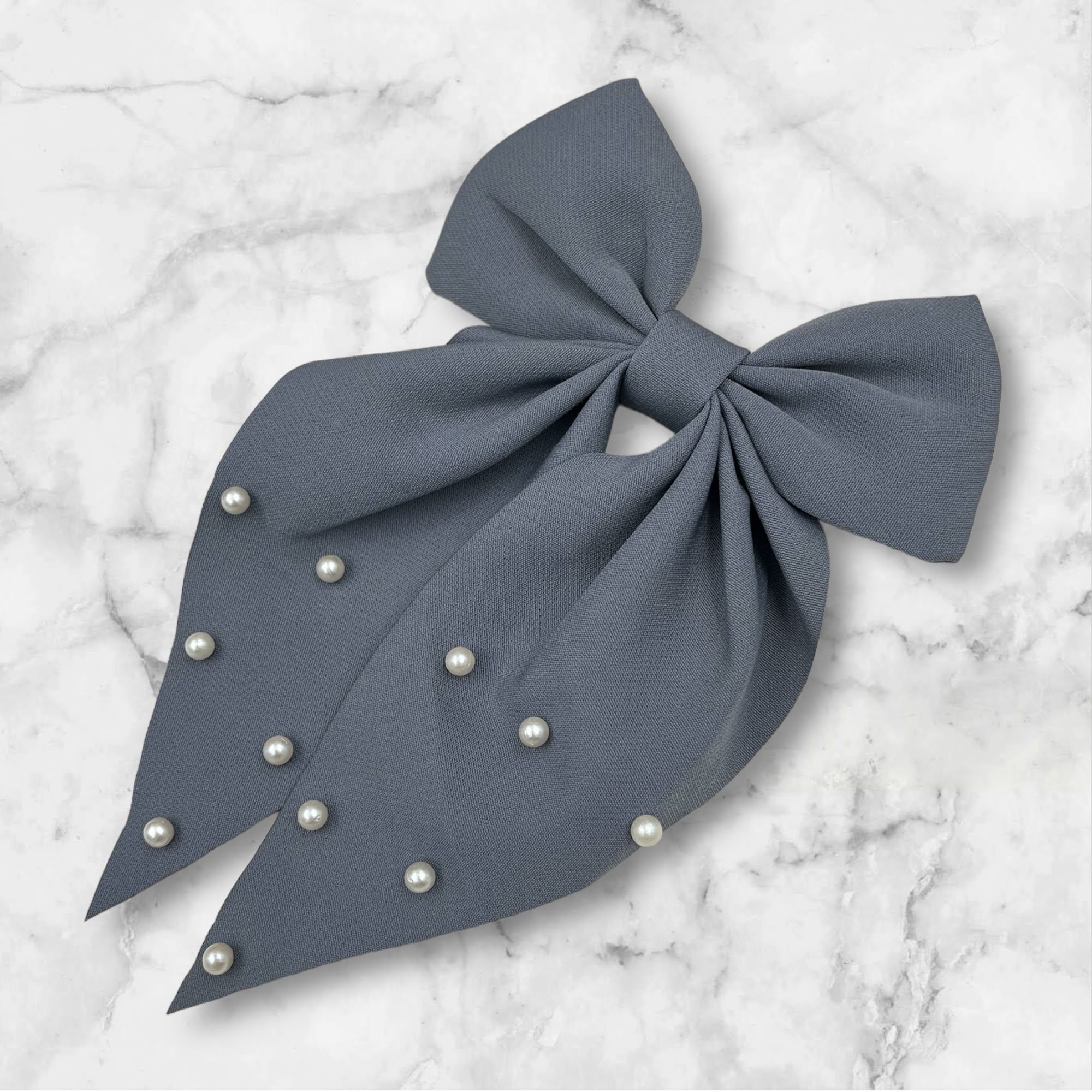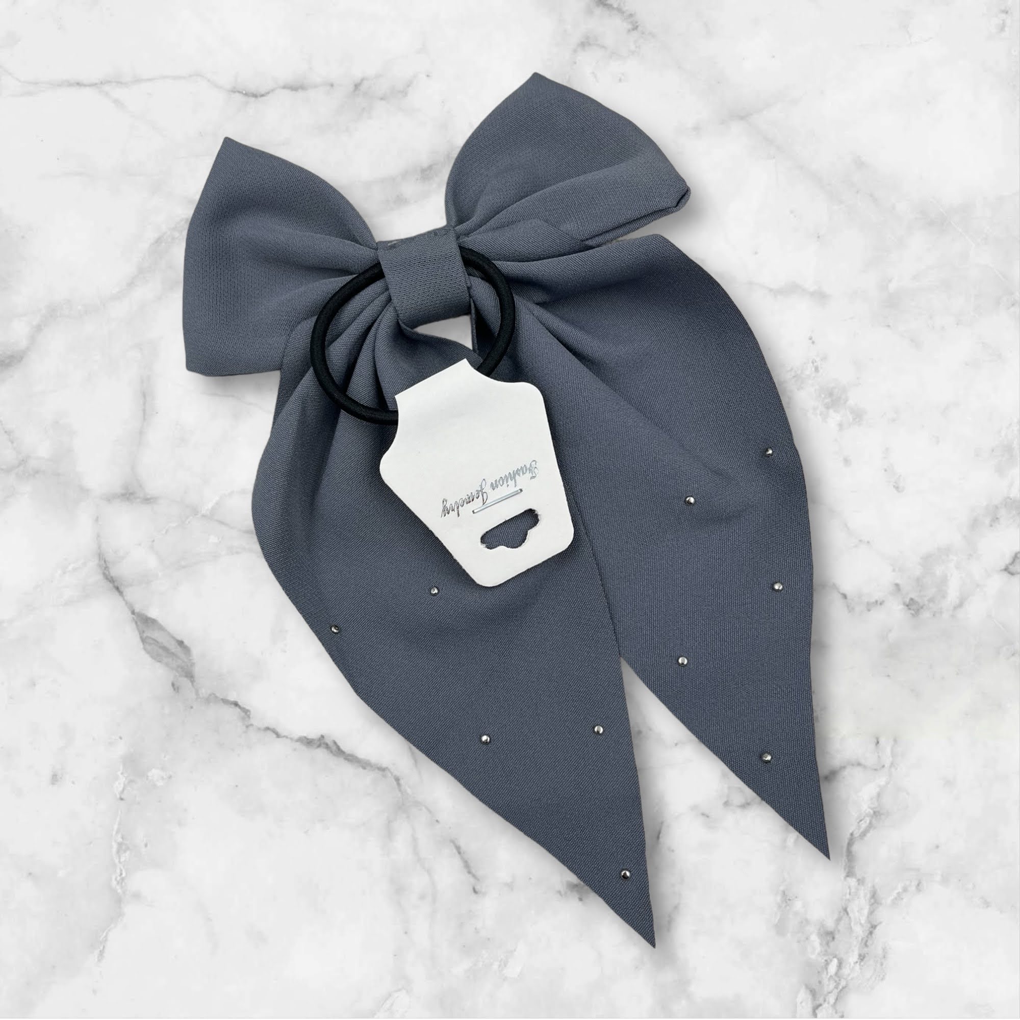Gumka do włosów z dużą kokardą w kolorze szarym z koralikami.