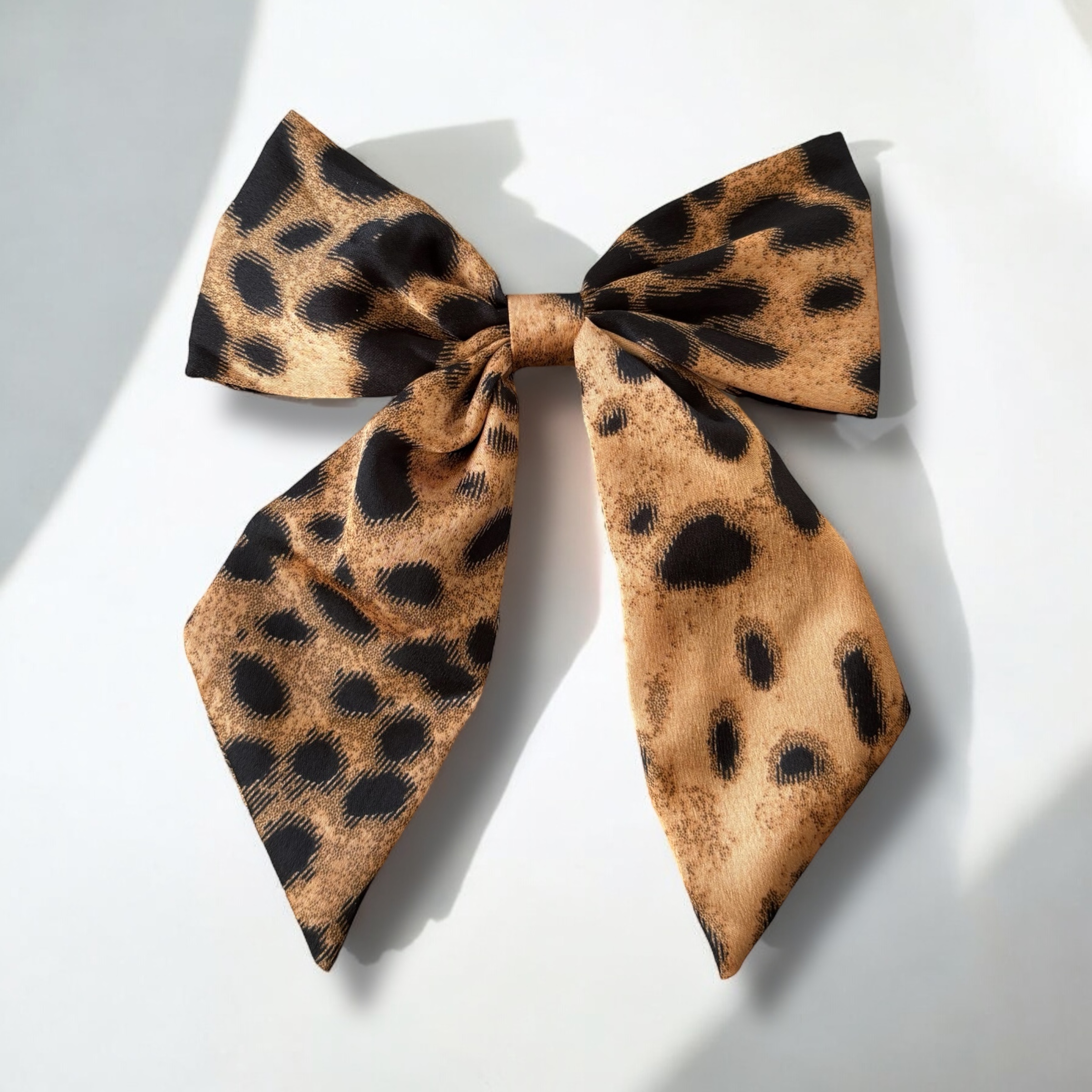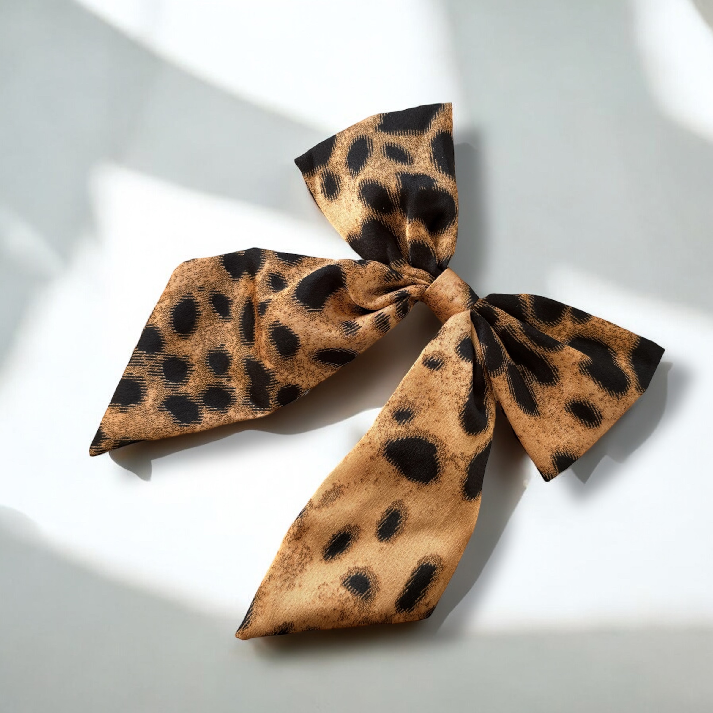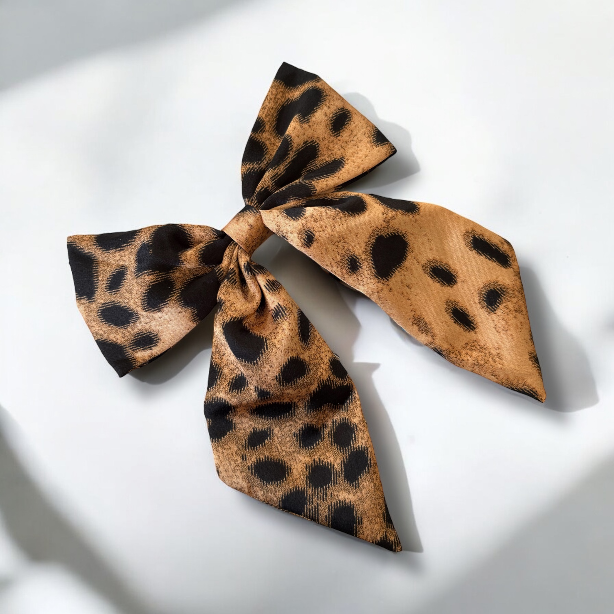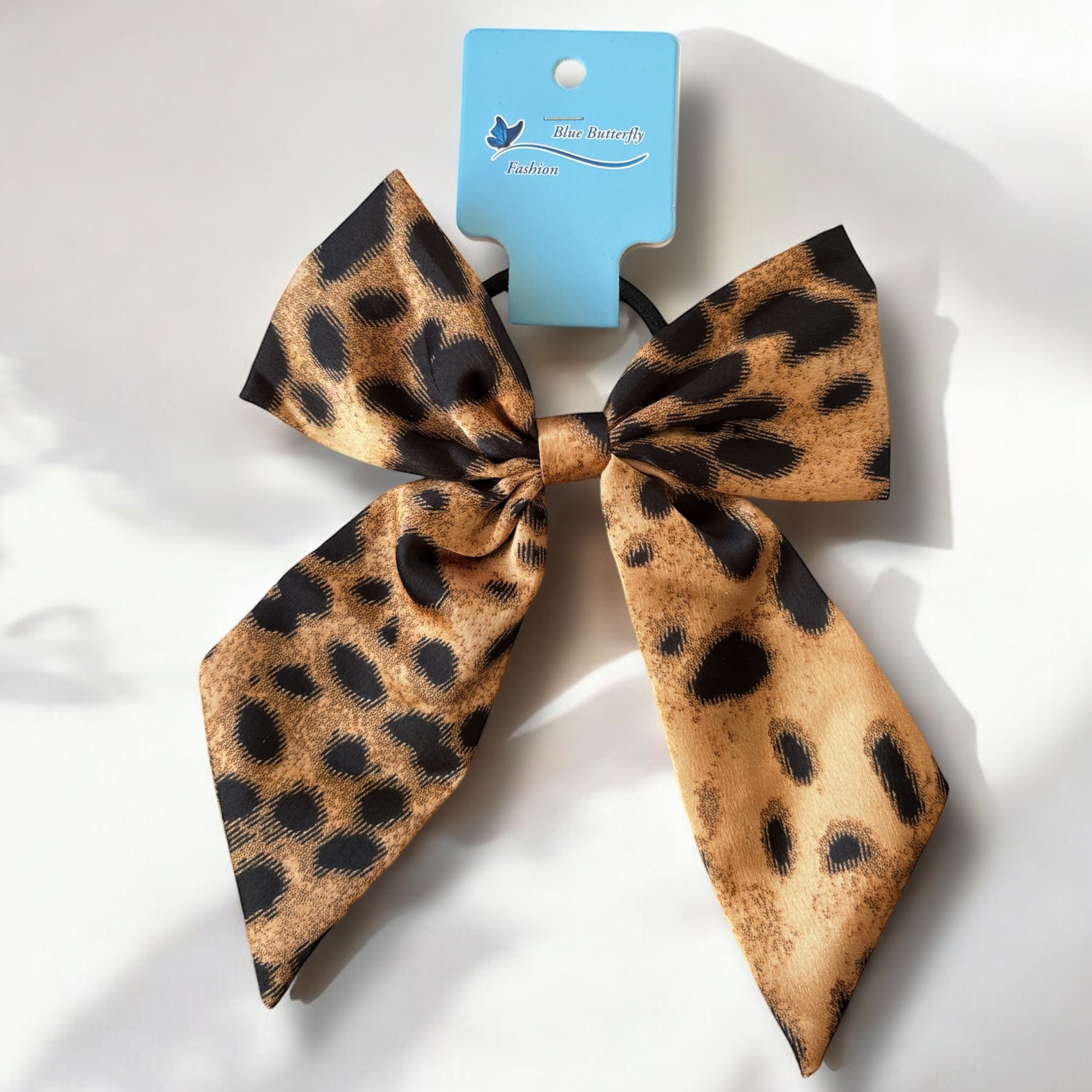 Gumka do włosów KOKARDKA w kolorze beżowo-brązowym z motywem w panterkę.