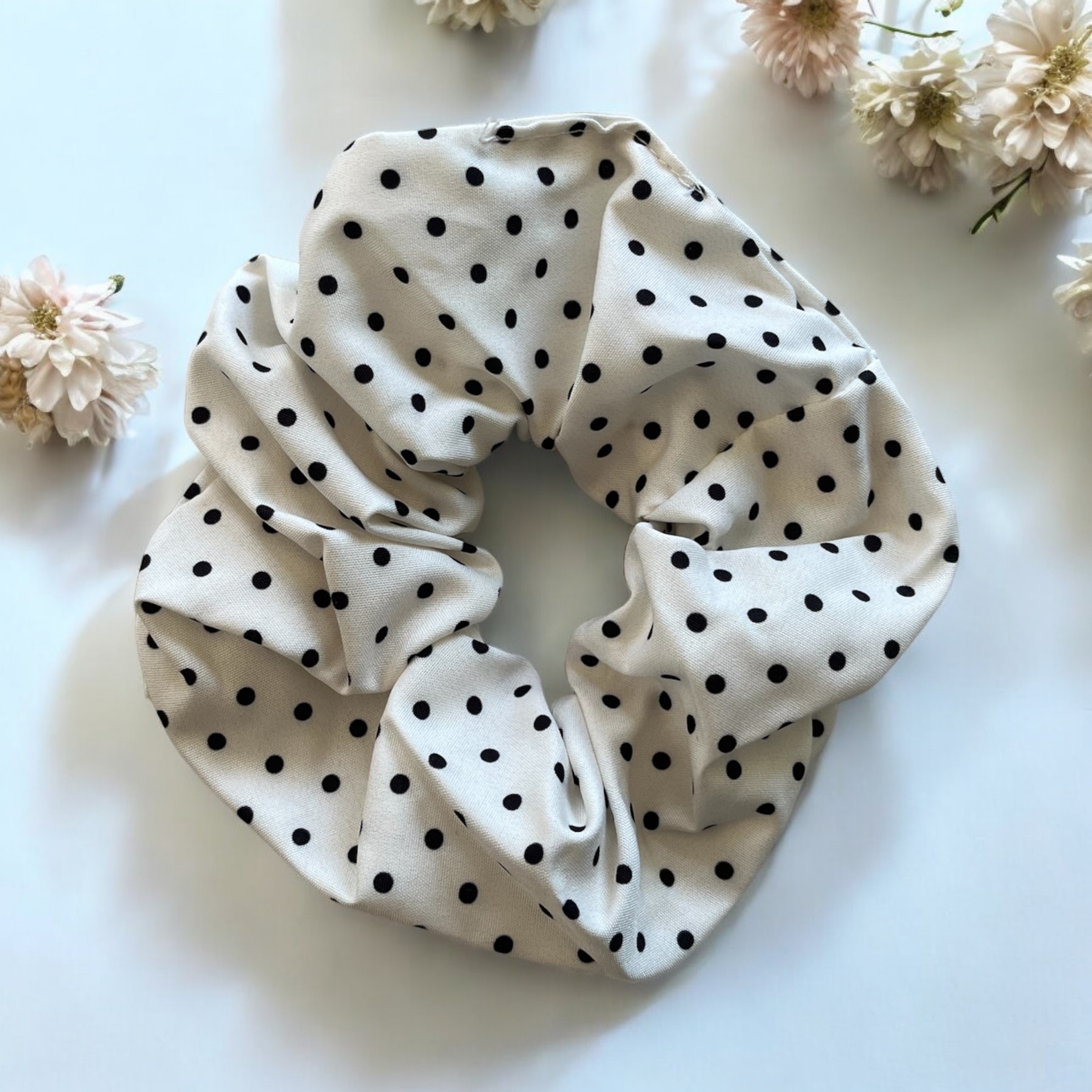 Gumka do włosów SCRUNCHIE biała czarne kropki
