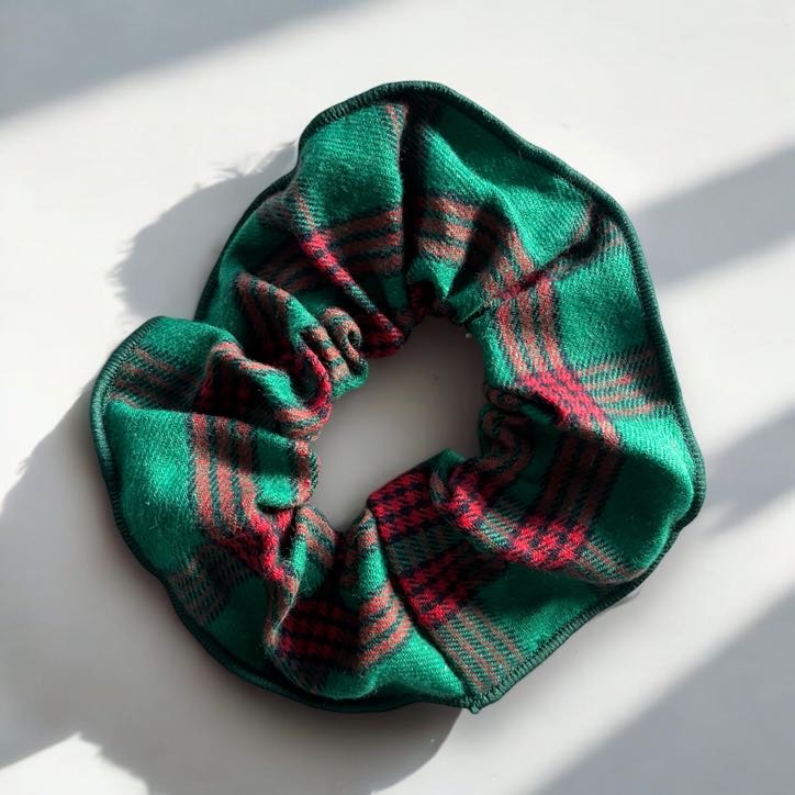 Gumka do włosów scrunchie flanelowa w kolorze zielonym.