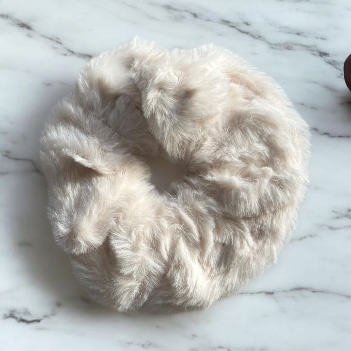 Gumka do włosów SCRUNCHIE frotka puszysta misiowa kremowa ecru perły
