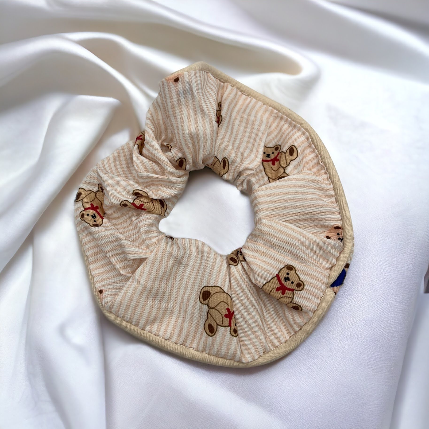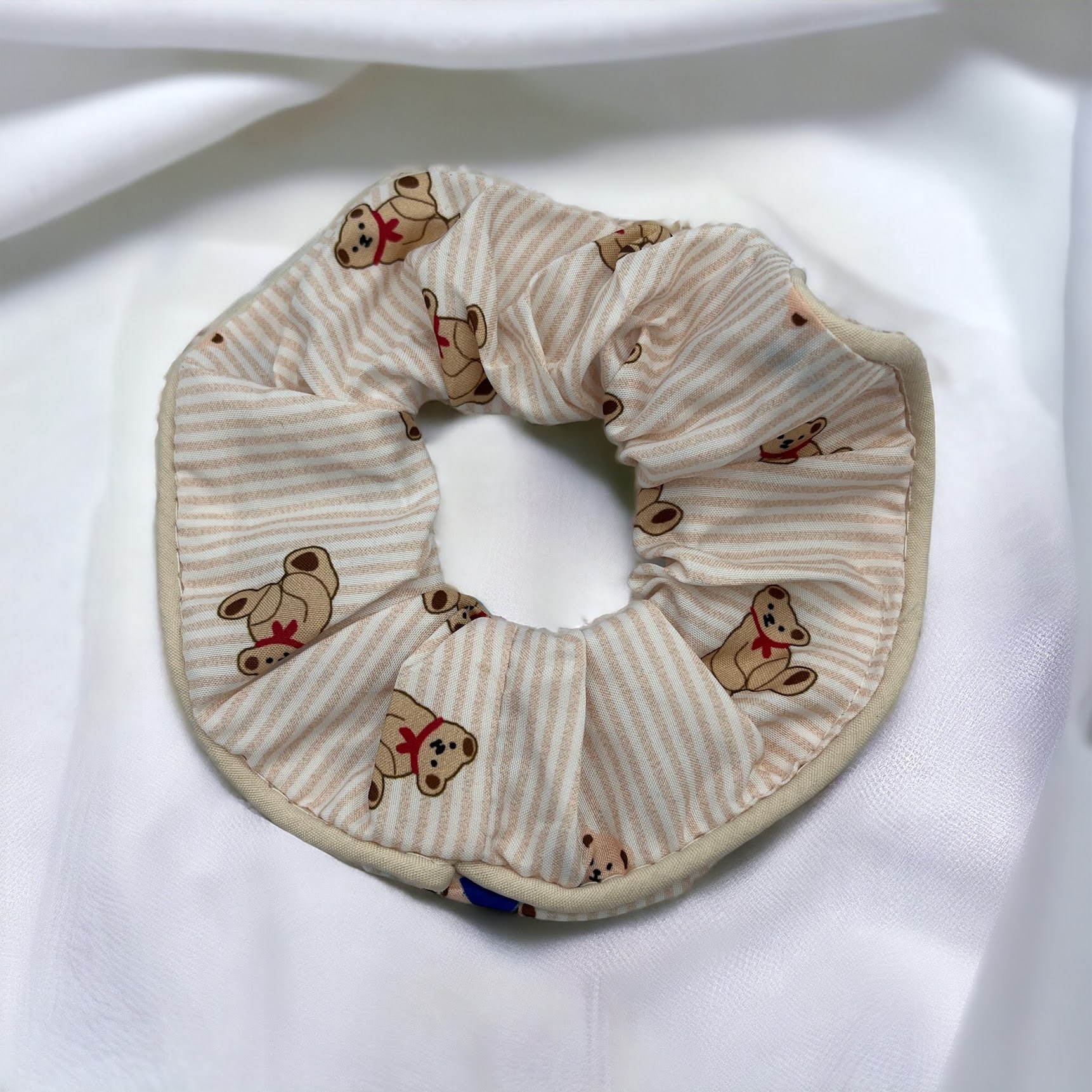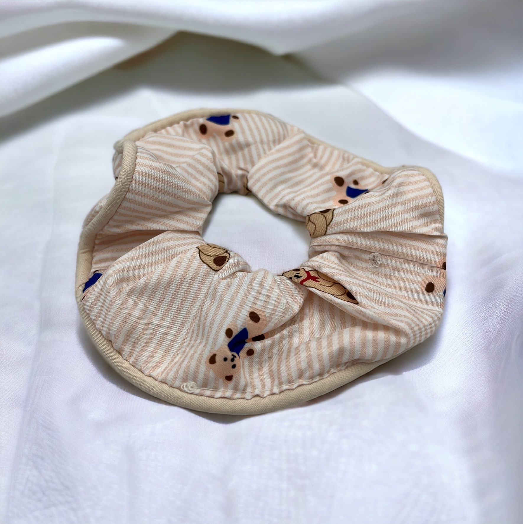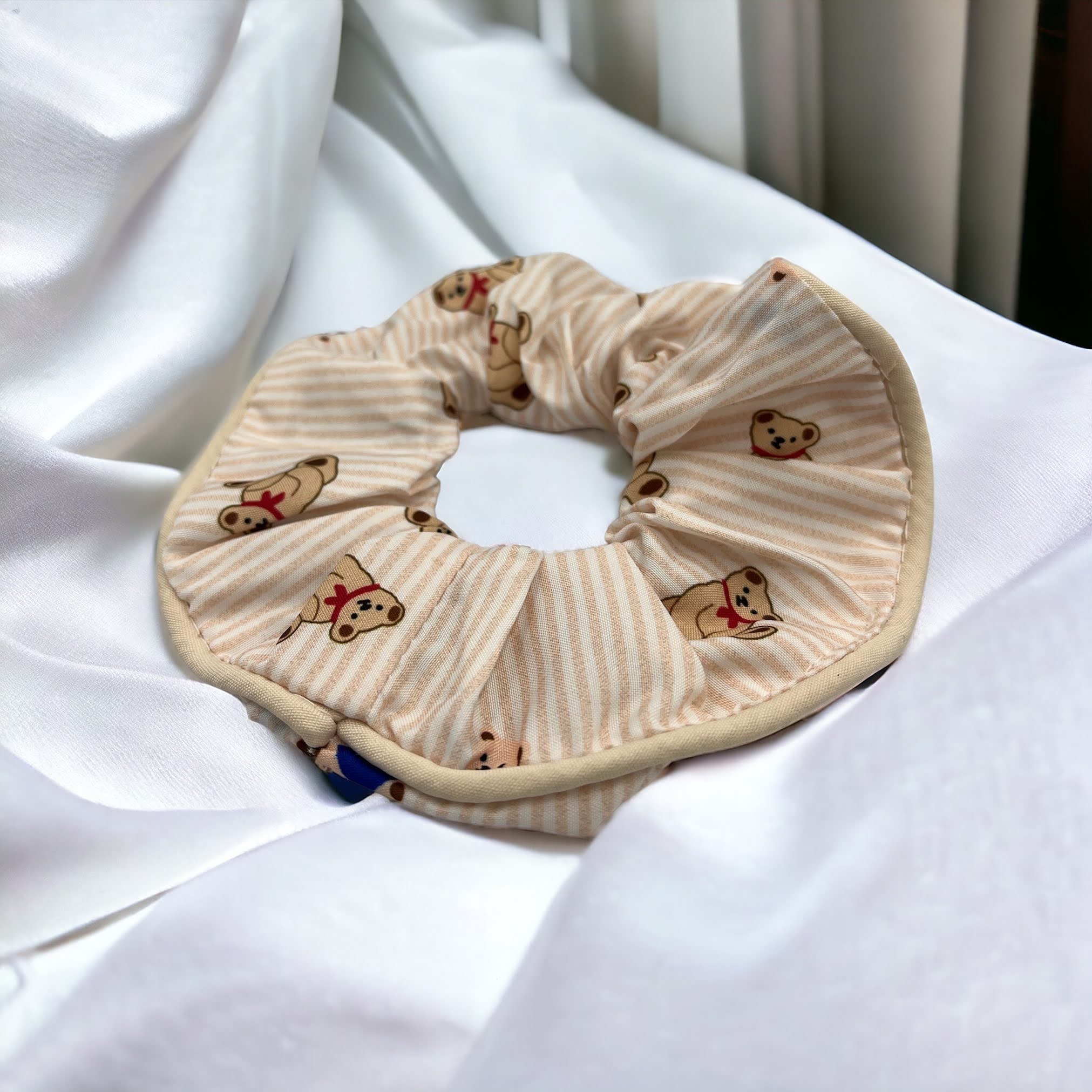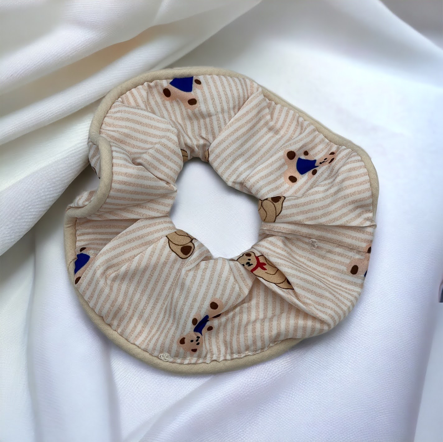 Gumka do włosów SCRUNCHIE frotka tkanina miś misie paski jasny róż