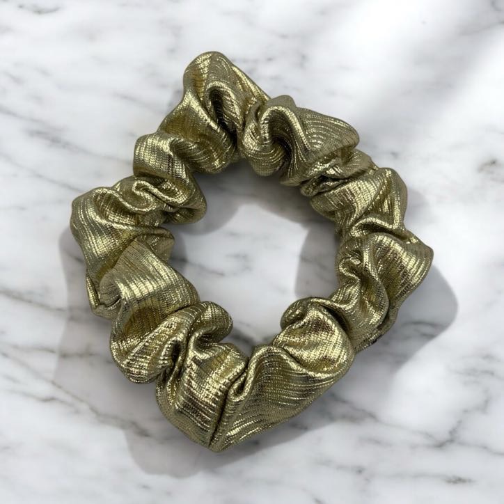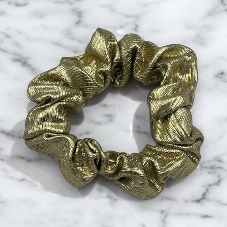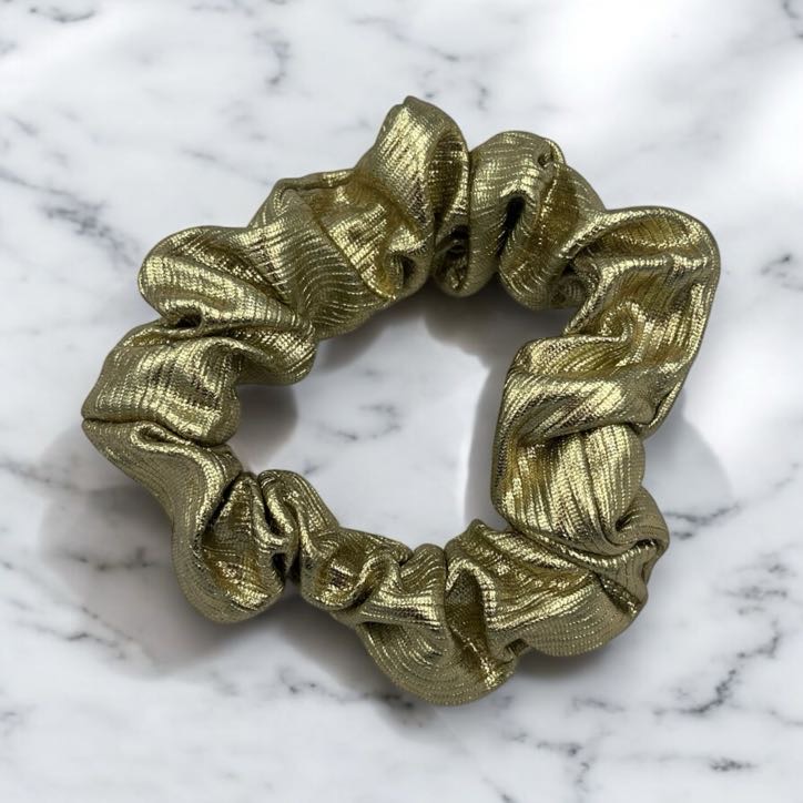 Gumka do włosów typu scrunchie w kolorze złotym. Błyszcząca, wykonana z grubszego materiału.