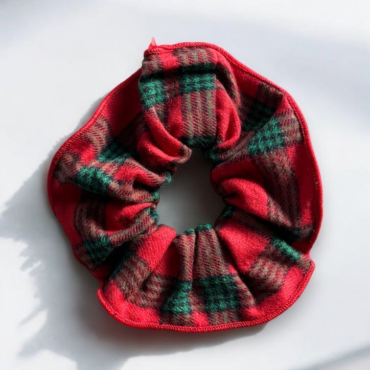 Gumka do włosów SCRUNCHIE frotka flanelowa czerwona zielona kratka