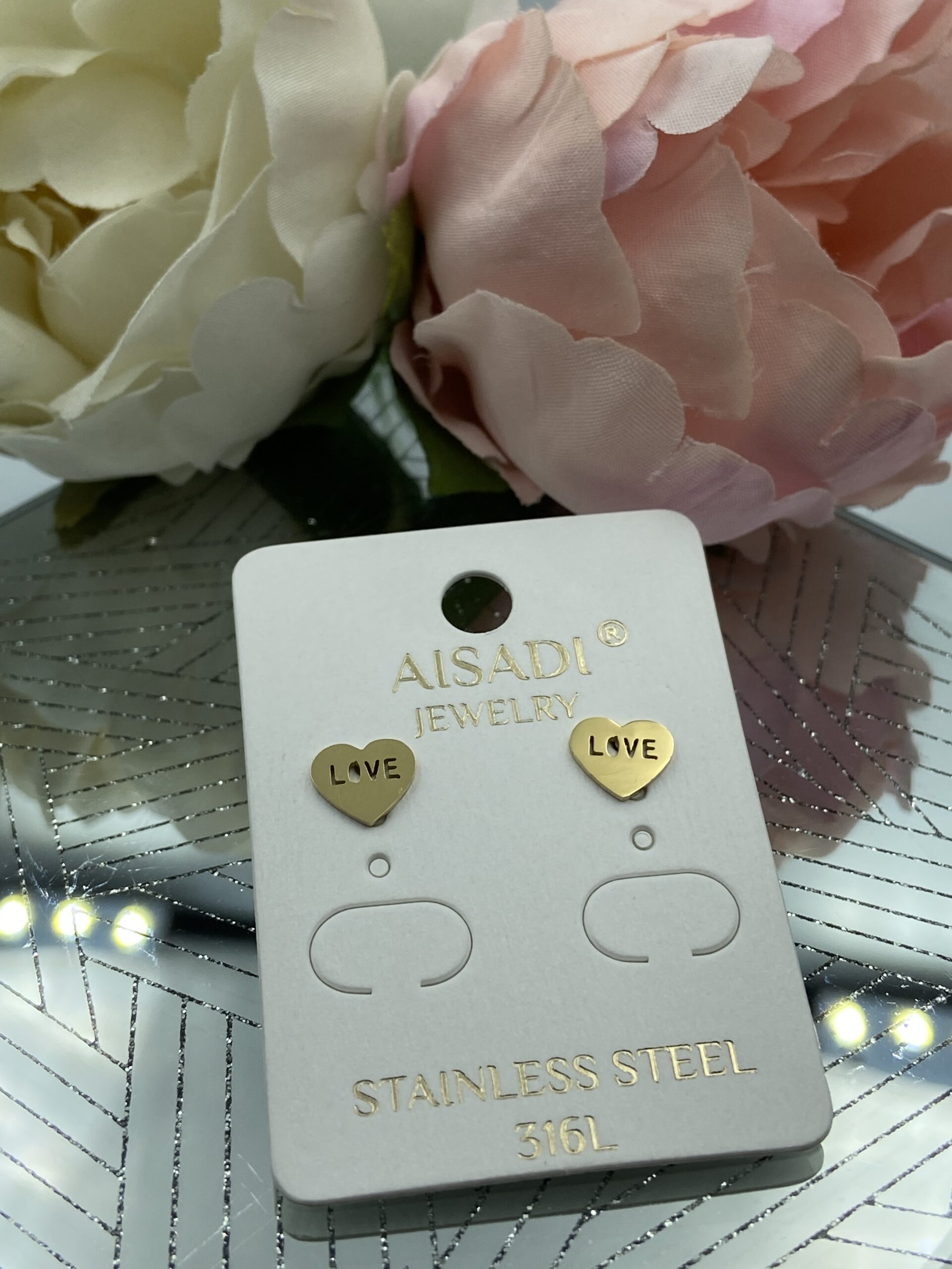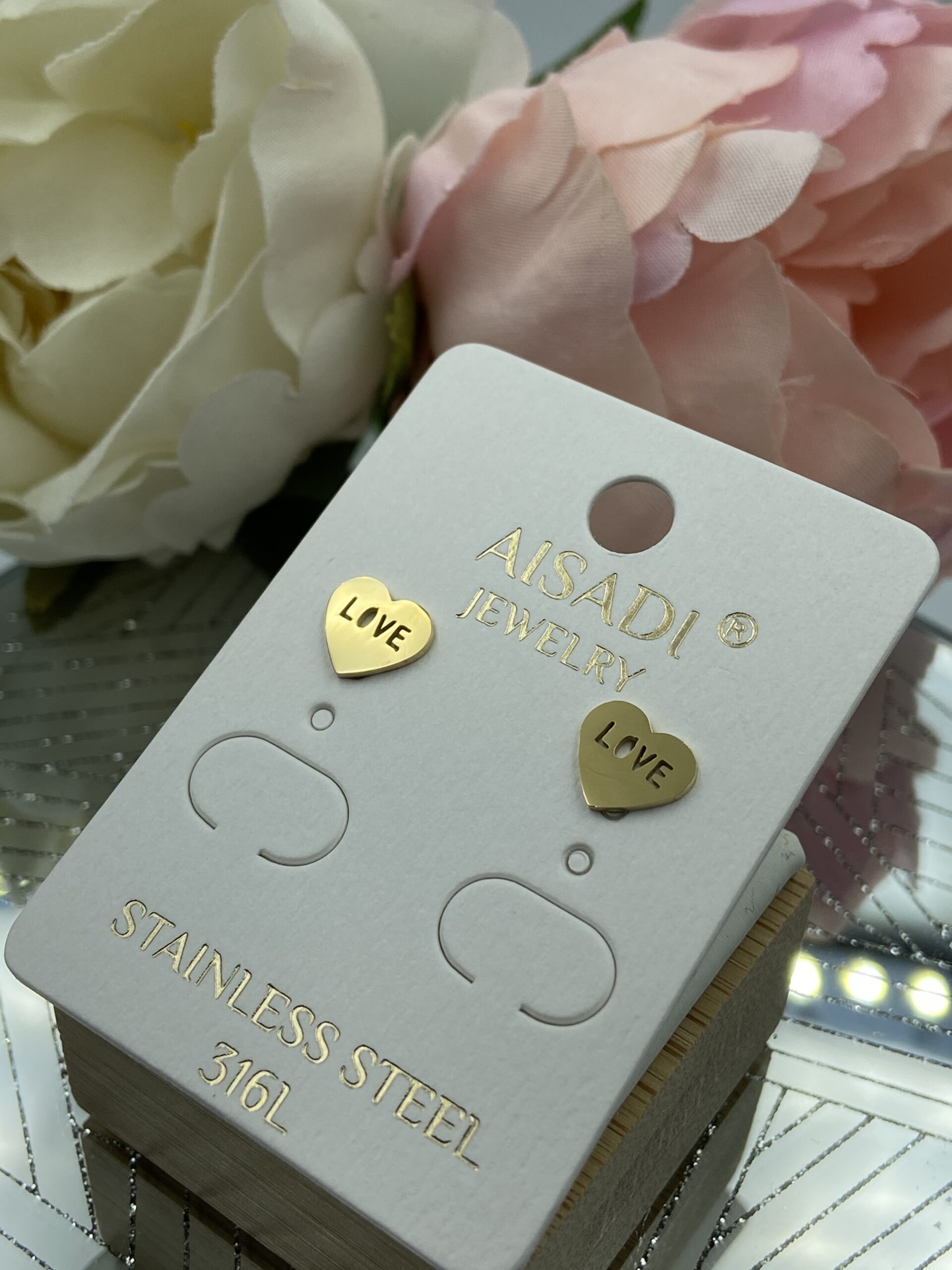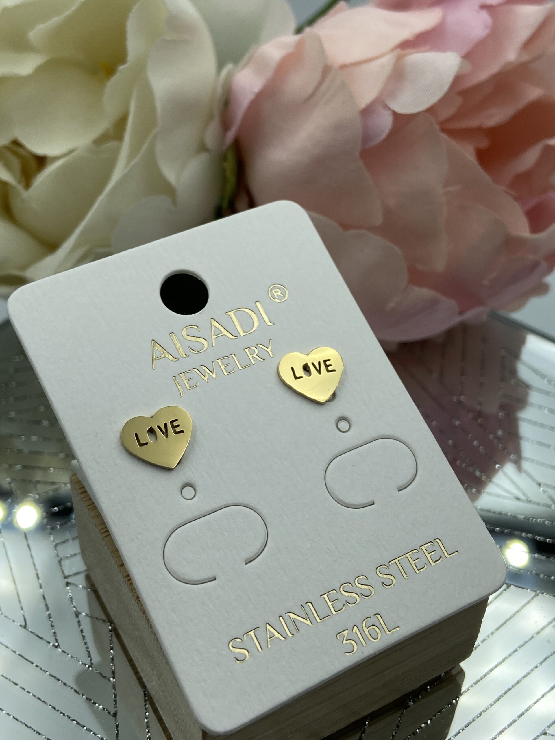 Piękne kolczyki, serce z napisem LOVE. Kolor złoty.