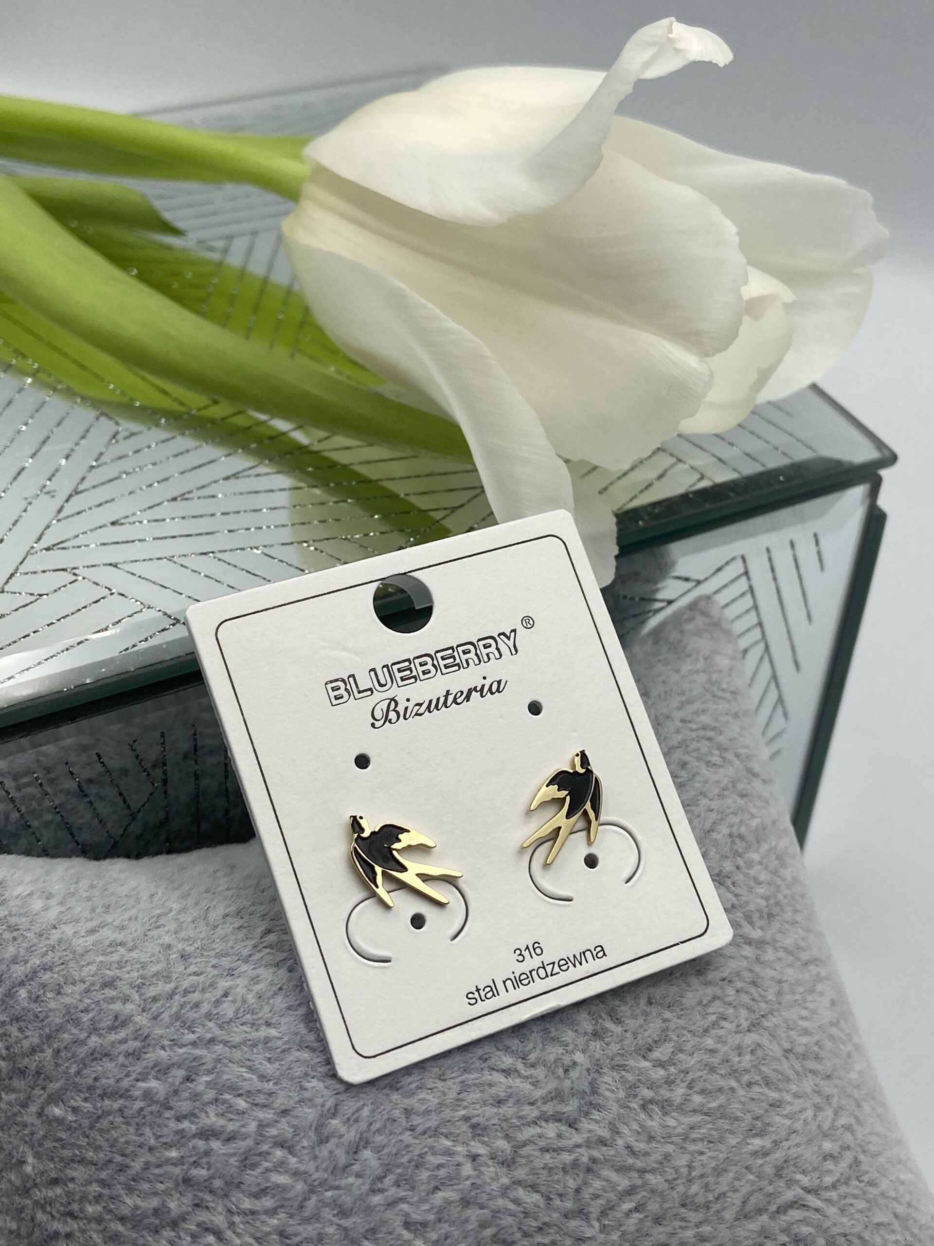 Kolczyki czarna jaskółka stal 316L złote