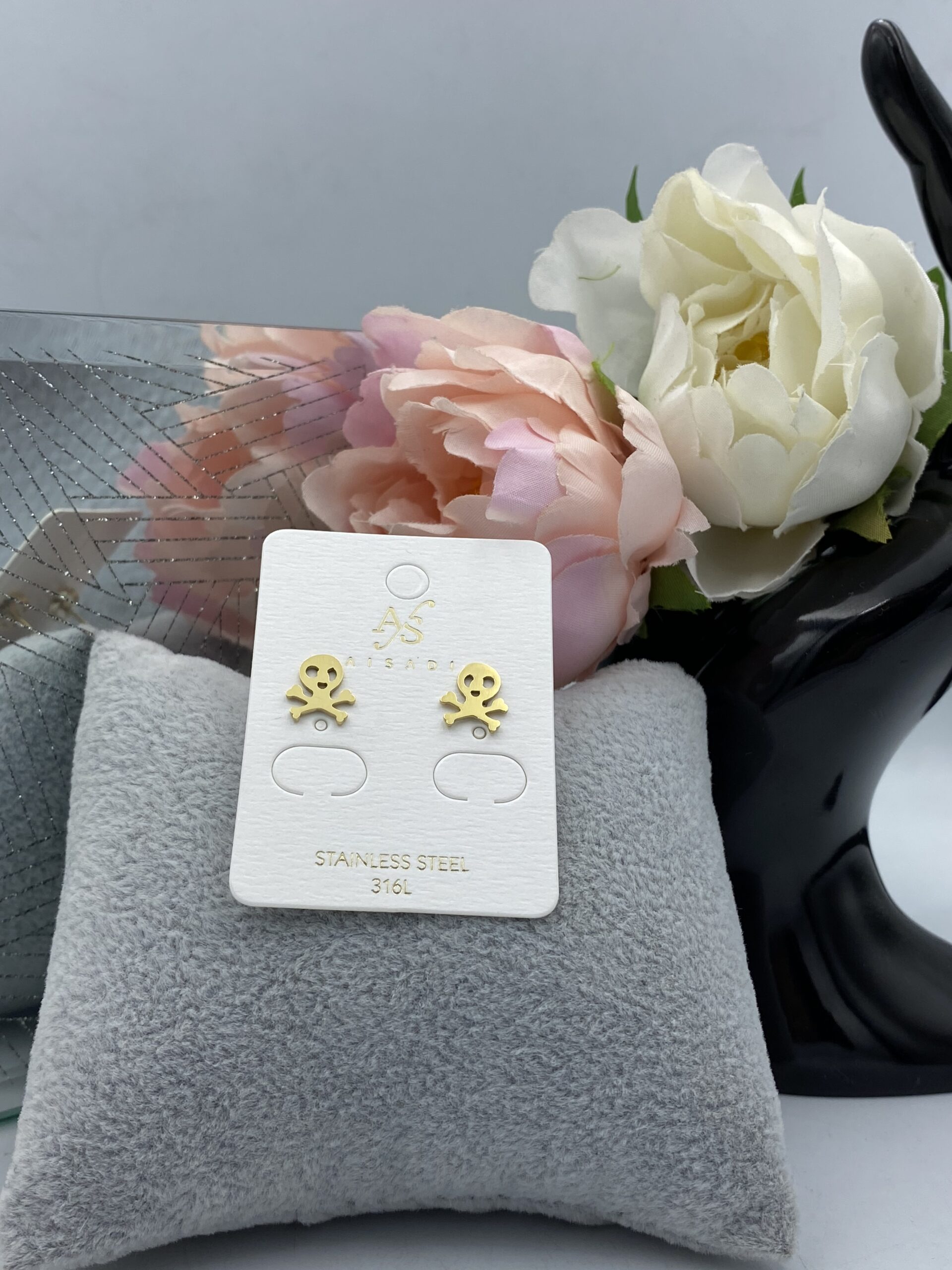 Kolczyki czaszka czacha stal 316L złote