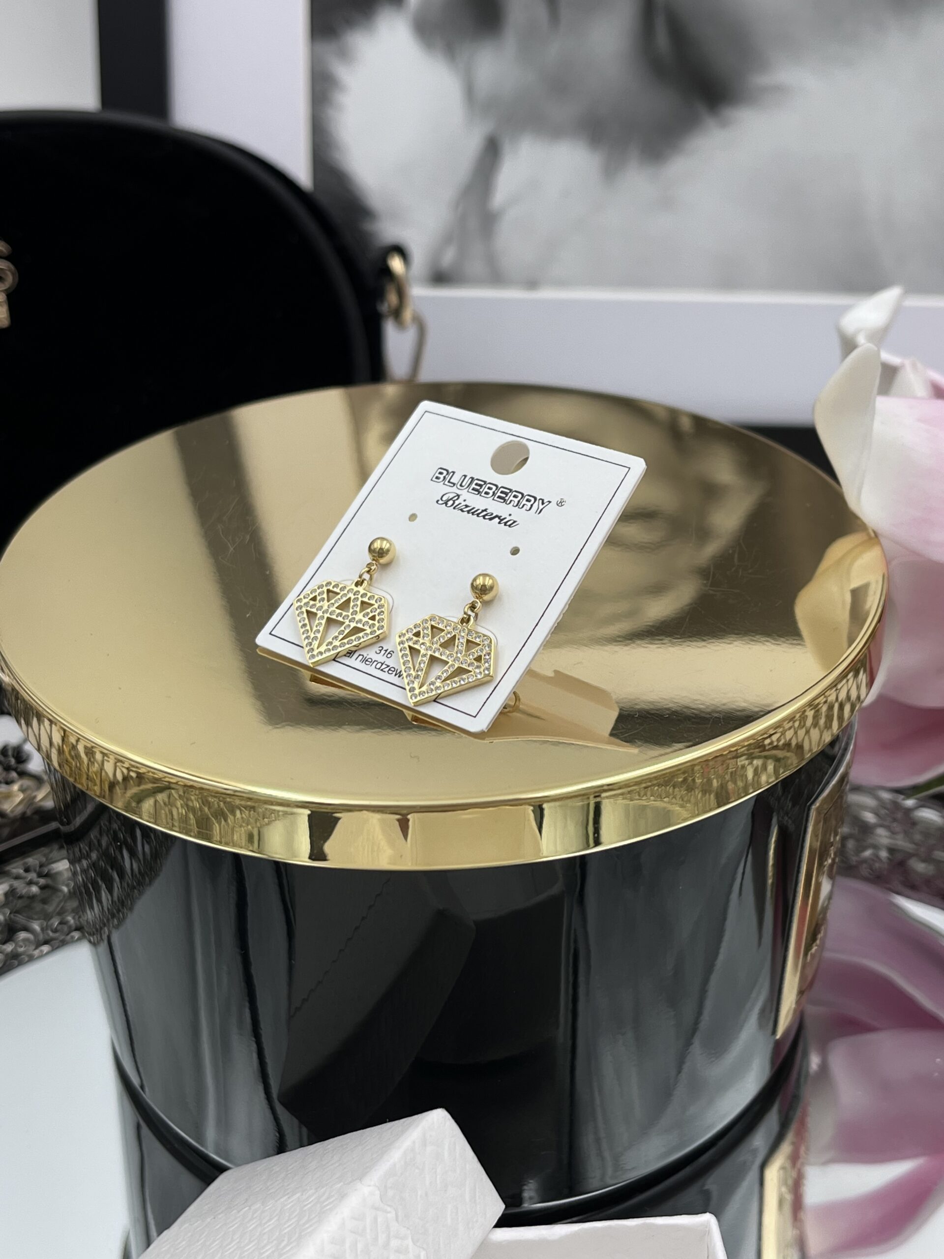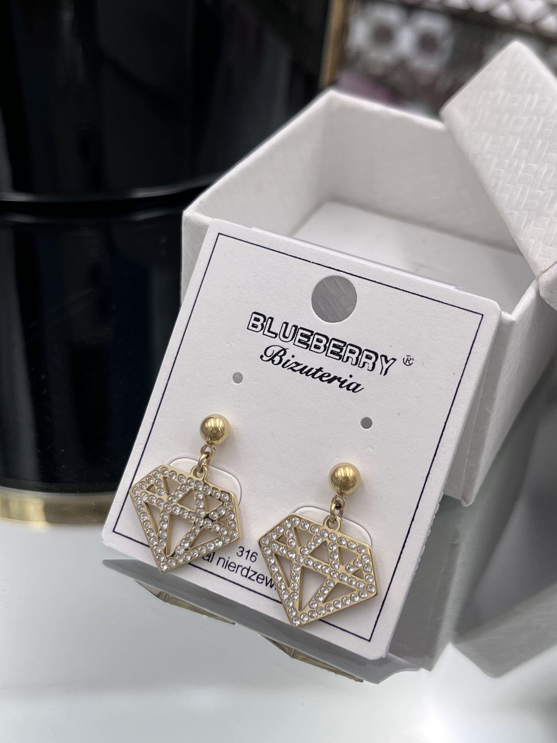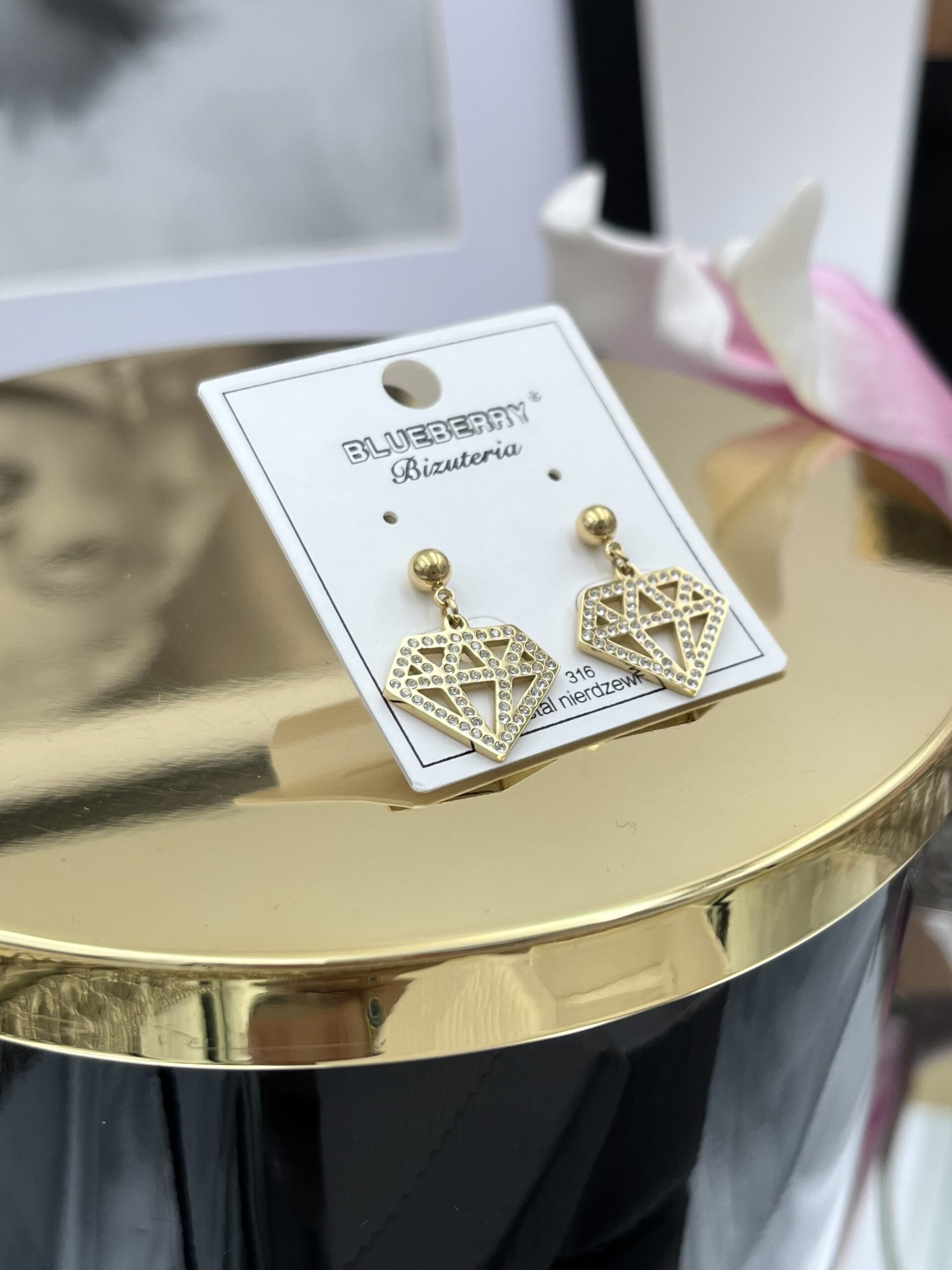 Kolczyki diamenty cyrkonie złote 316L