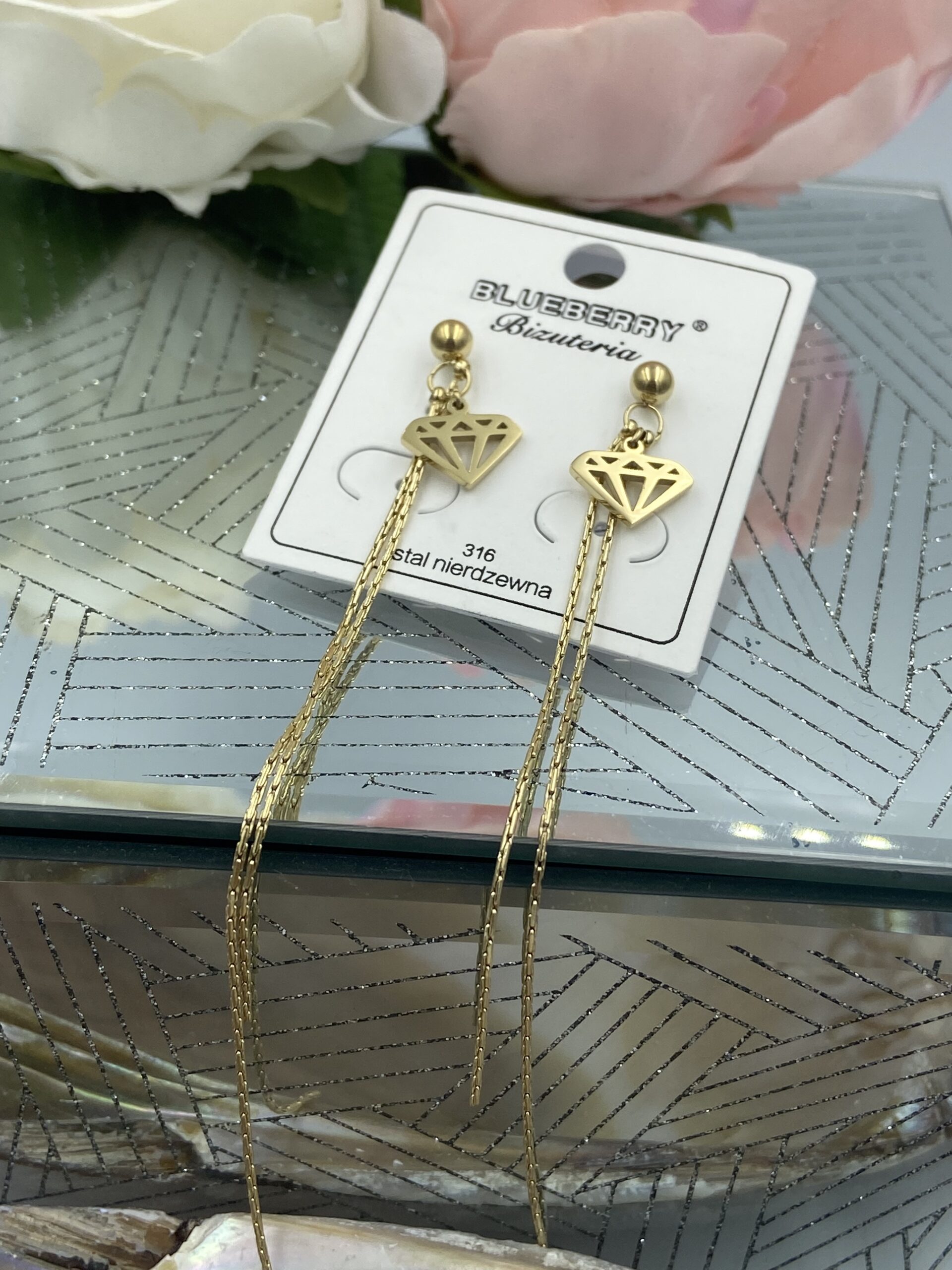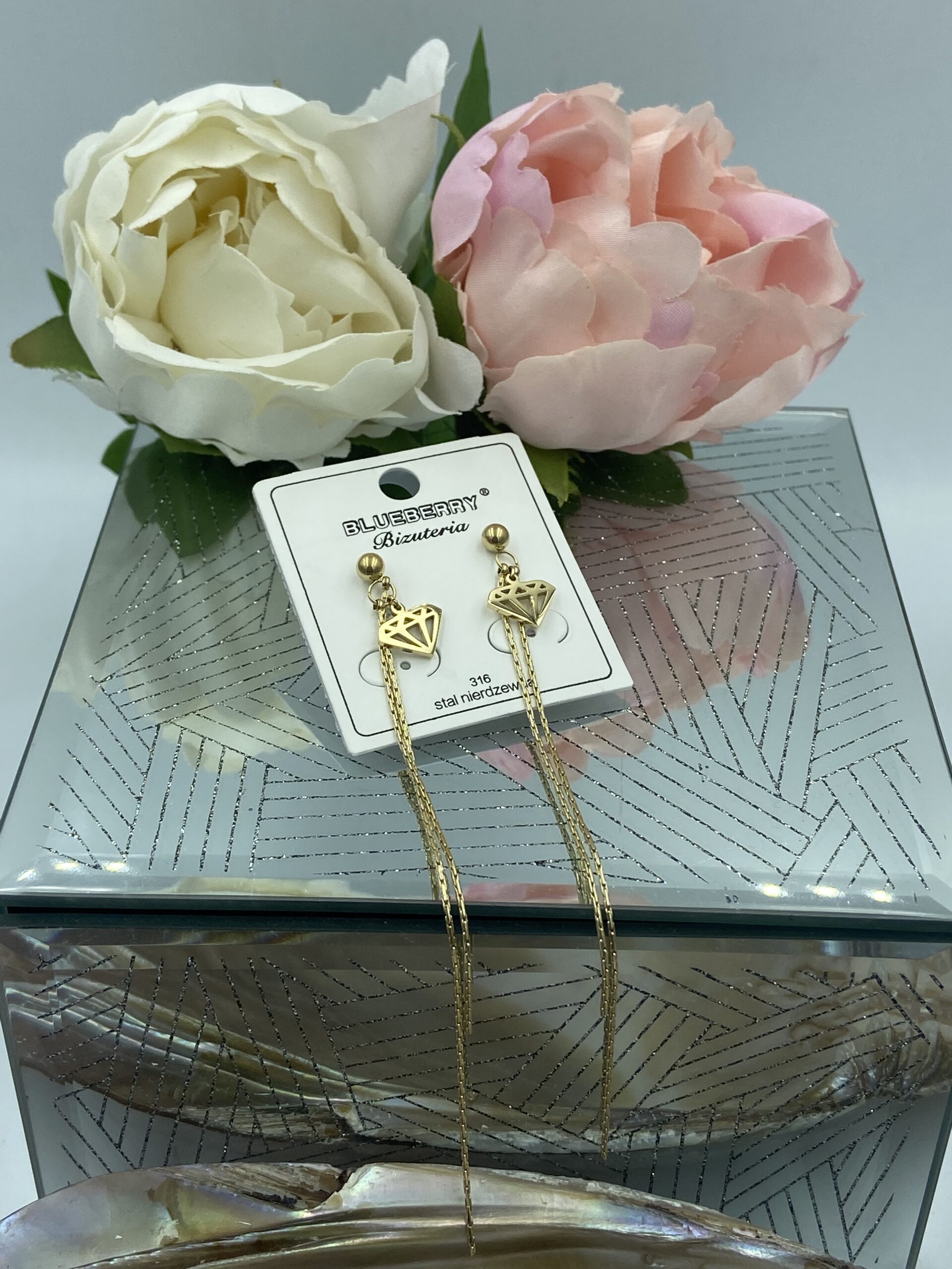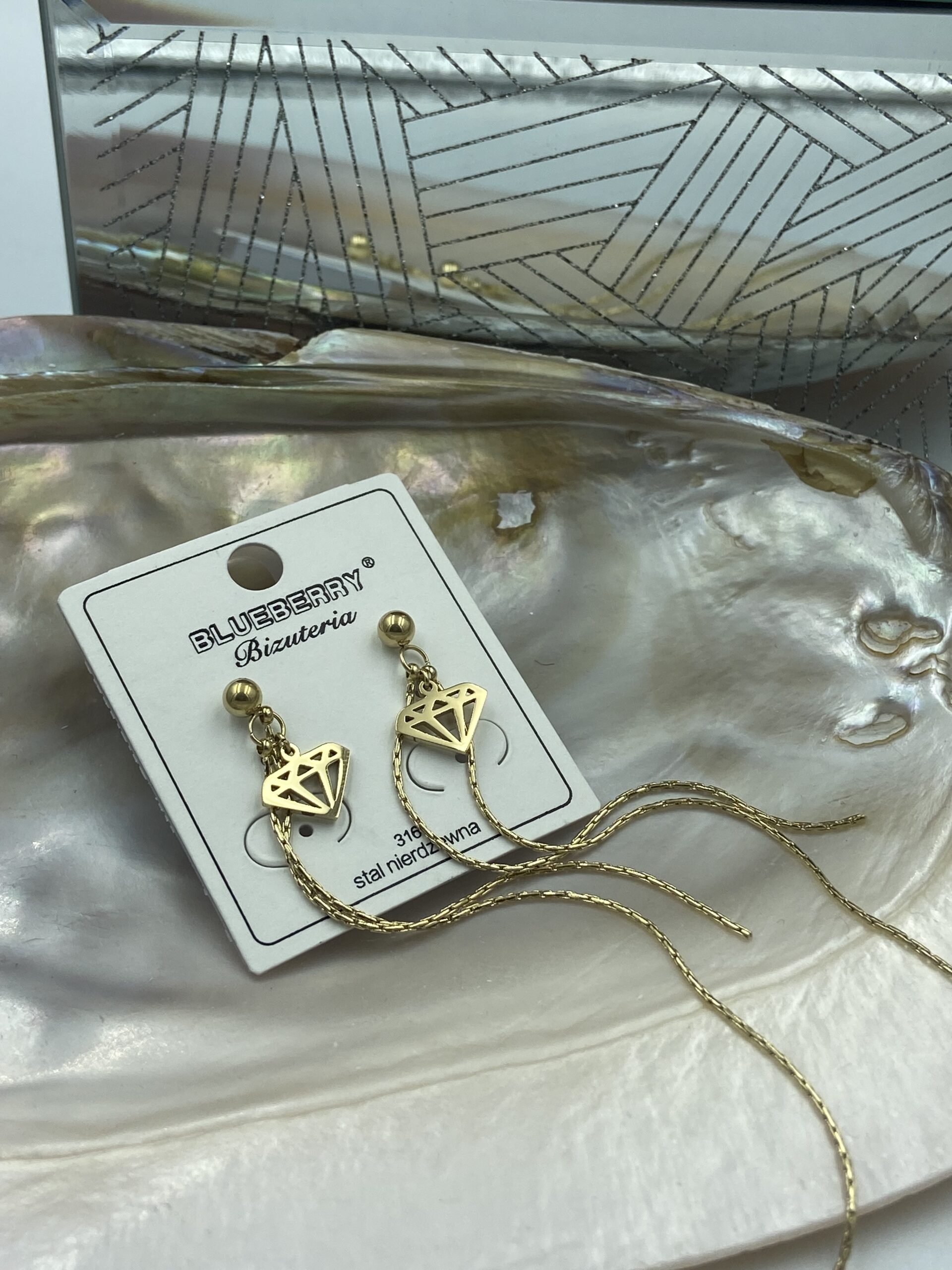 Wiszące kolczyki – diament na wężykach. Kolor złoty.