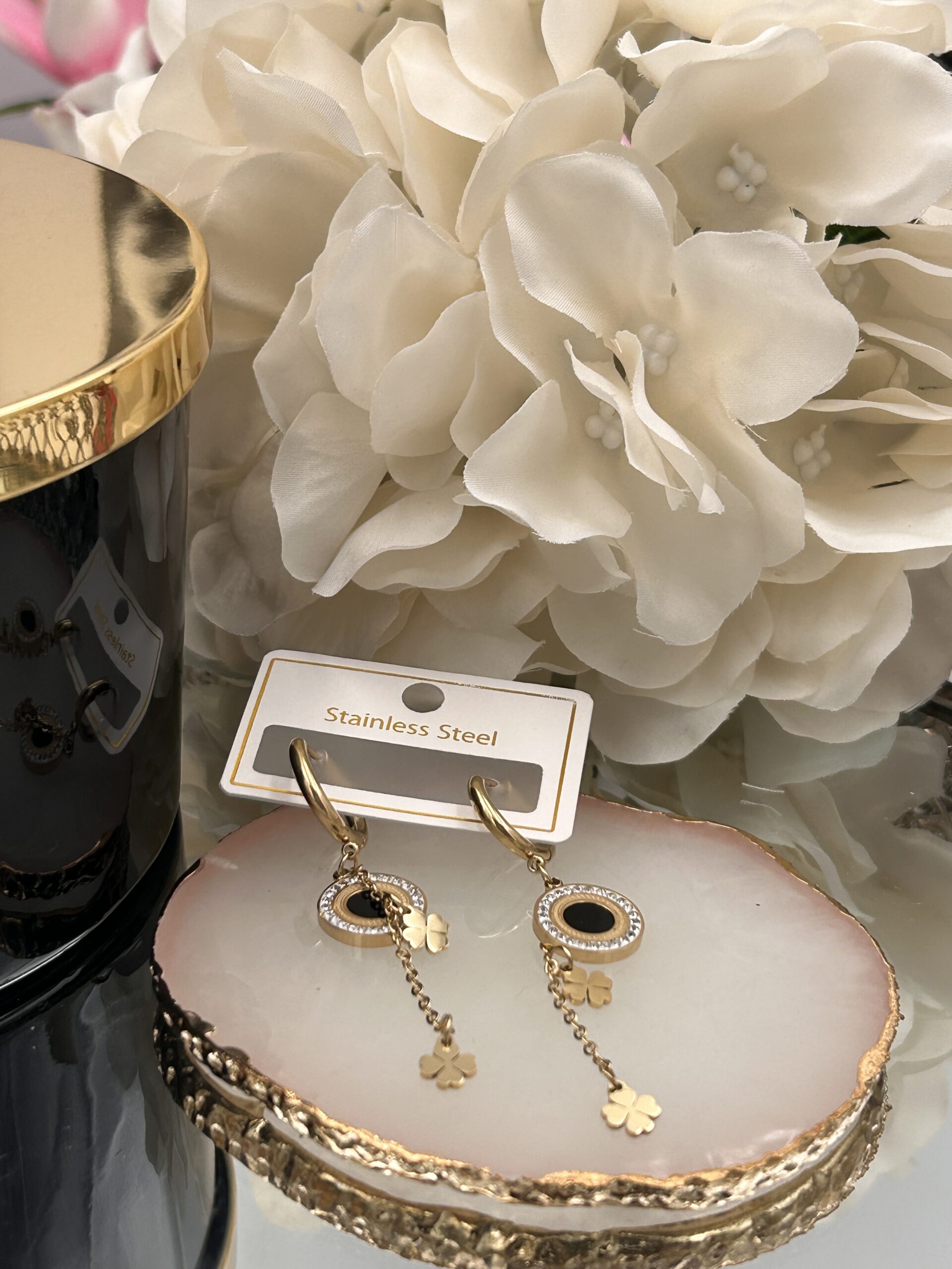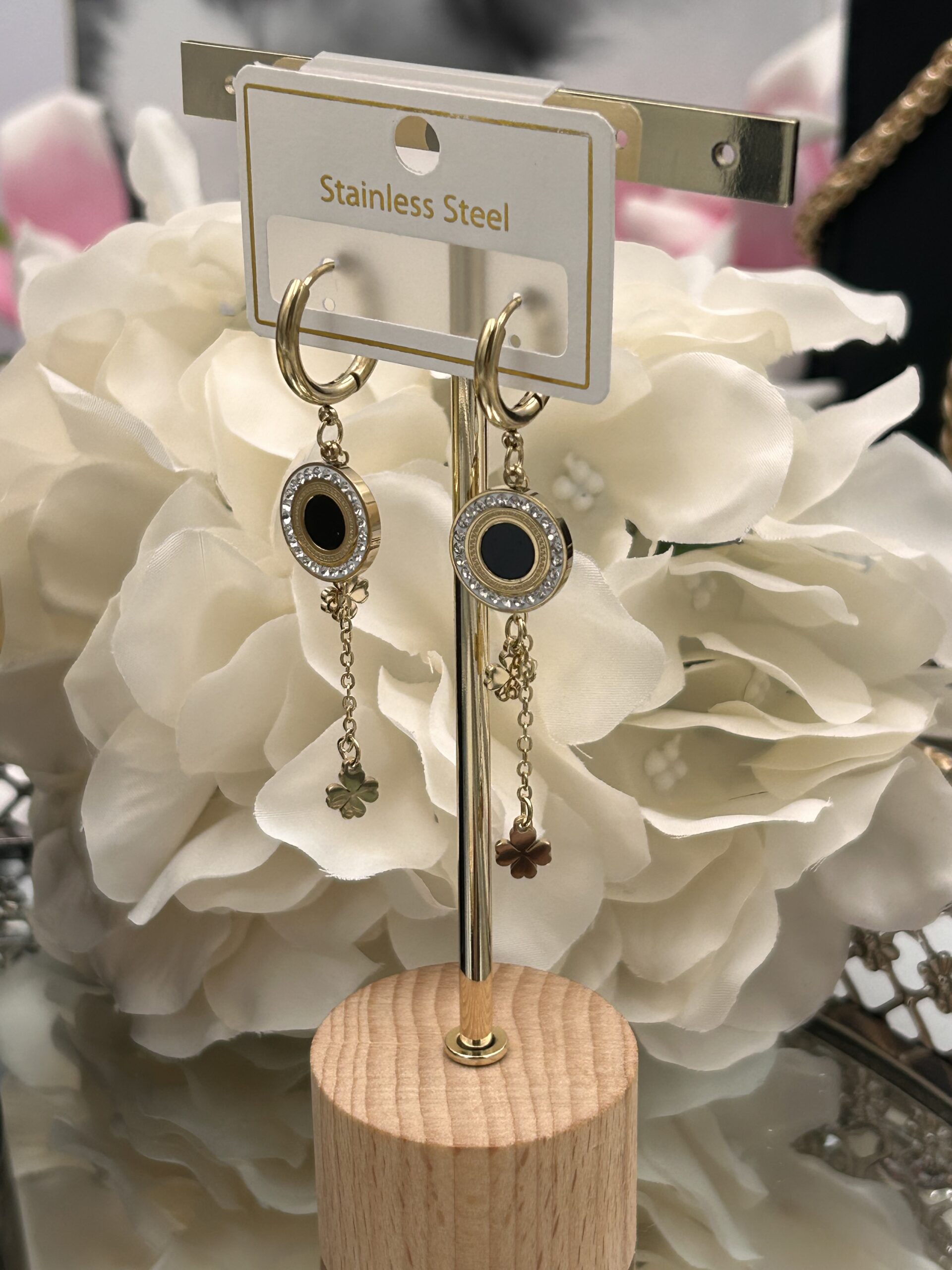 Kolczyki greckie kółka koniczynka cyrkonie łańcuszki złote stal 316L