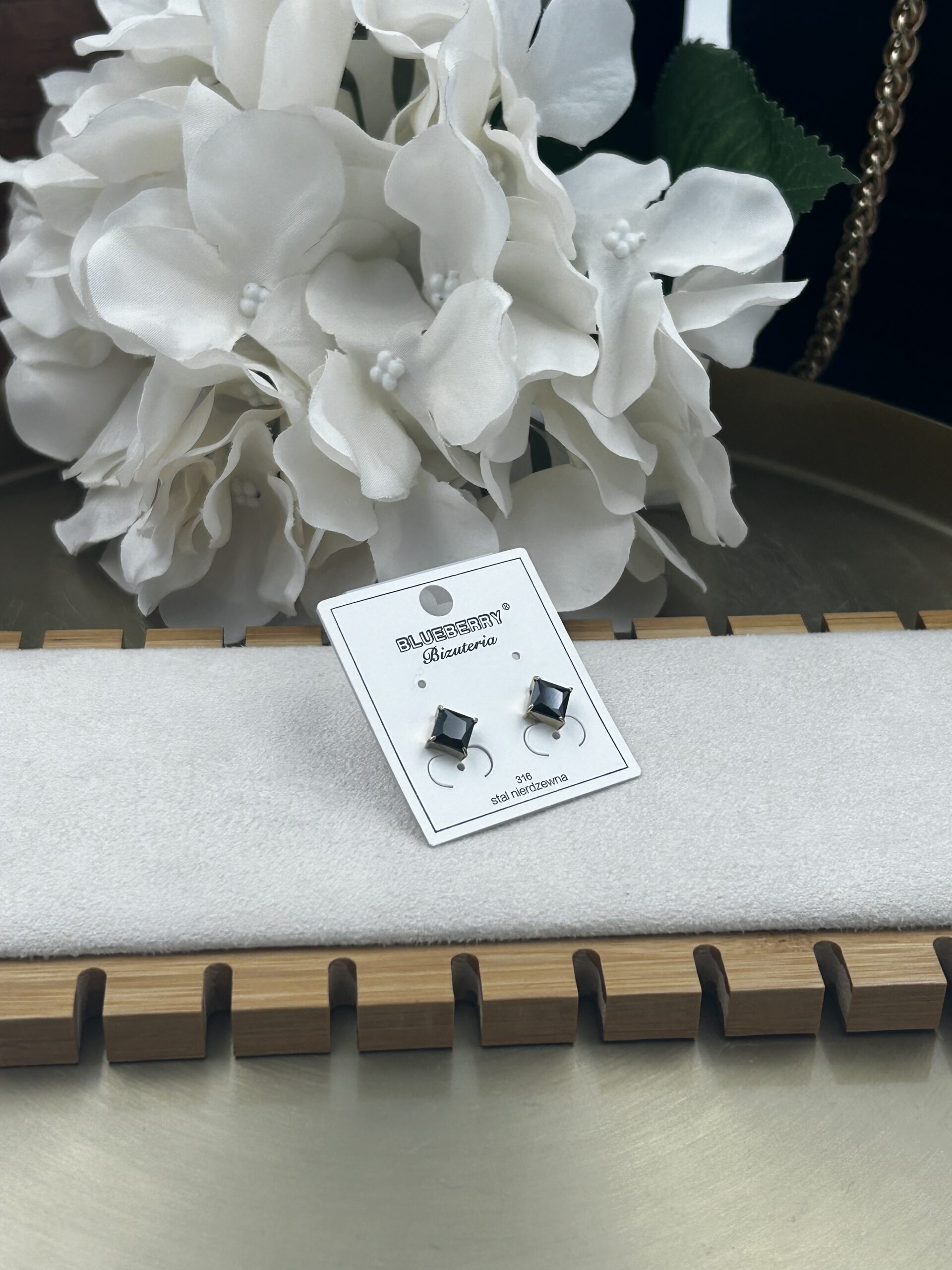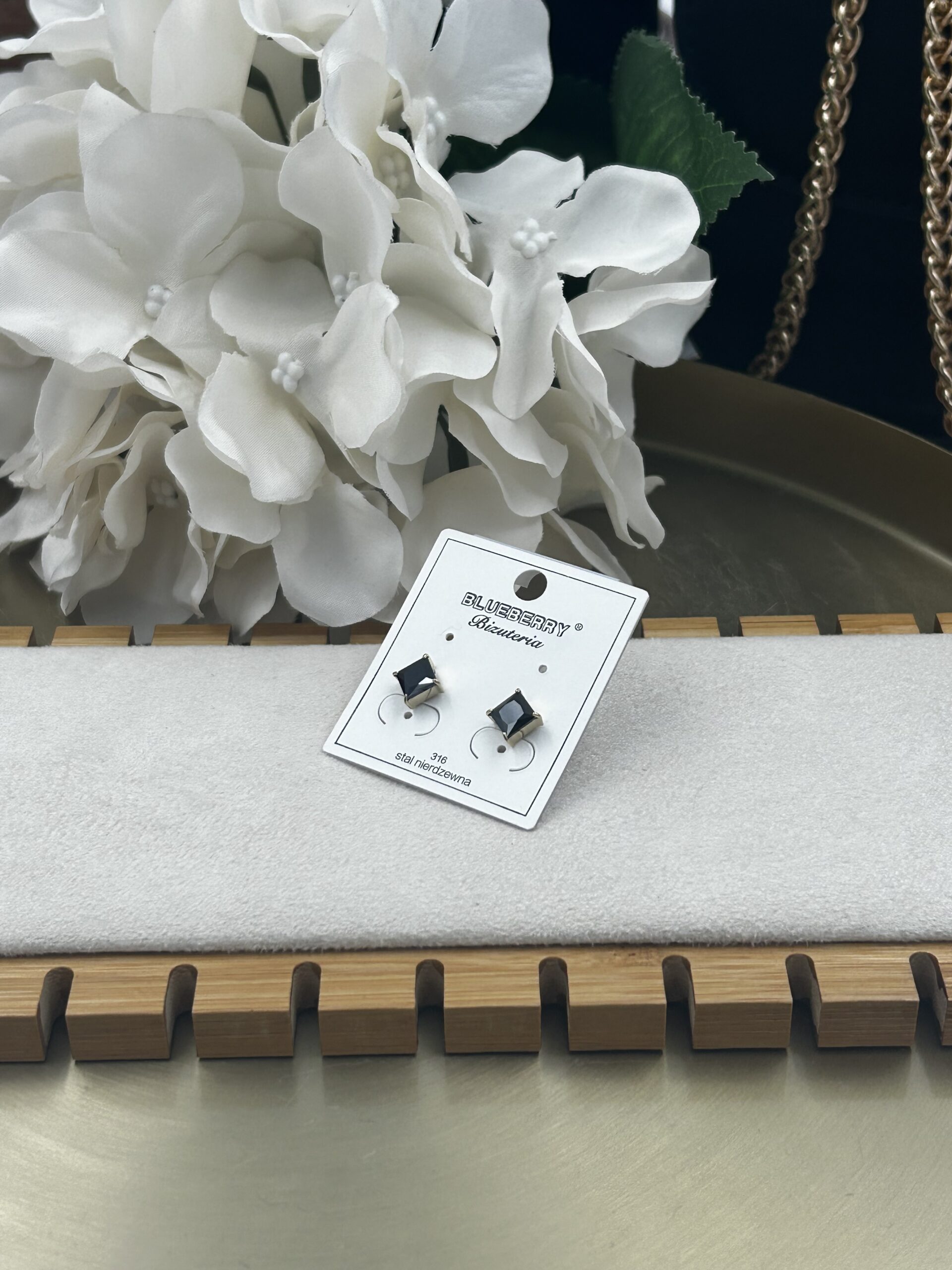 Kolczyki CZARNE KAMYKI kwadraty. Kolor złoty.