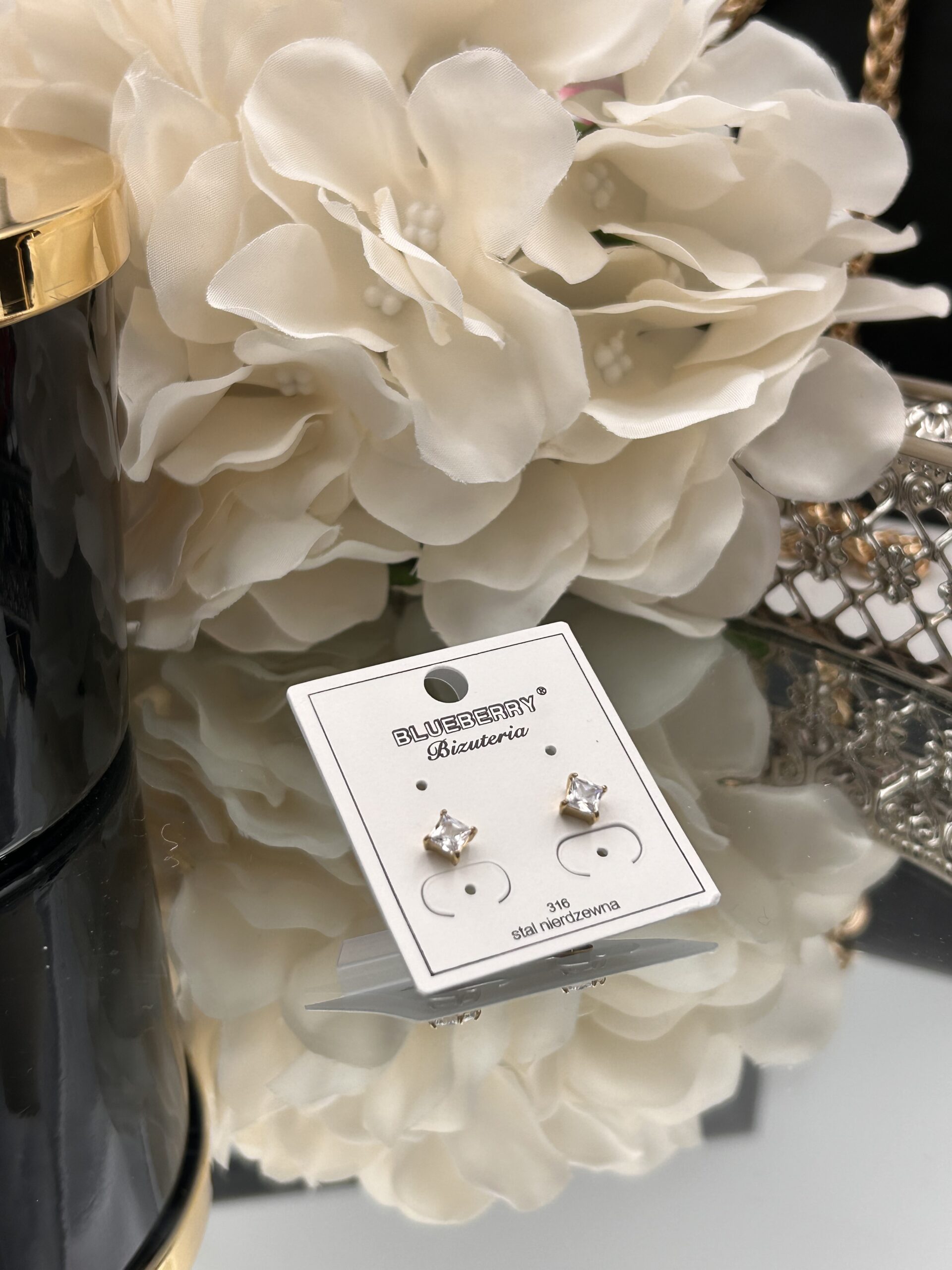 Kolczyki klasyczne kamień cyrkonia stal 316L złote