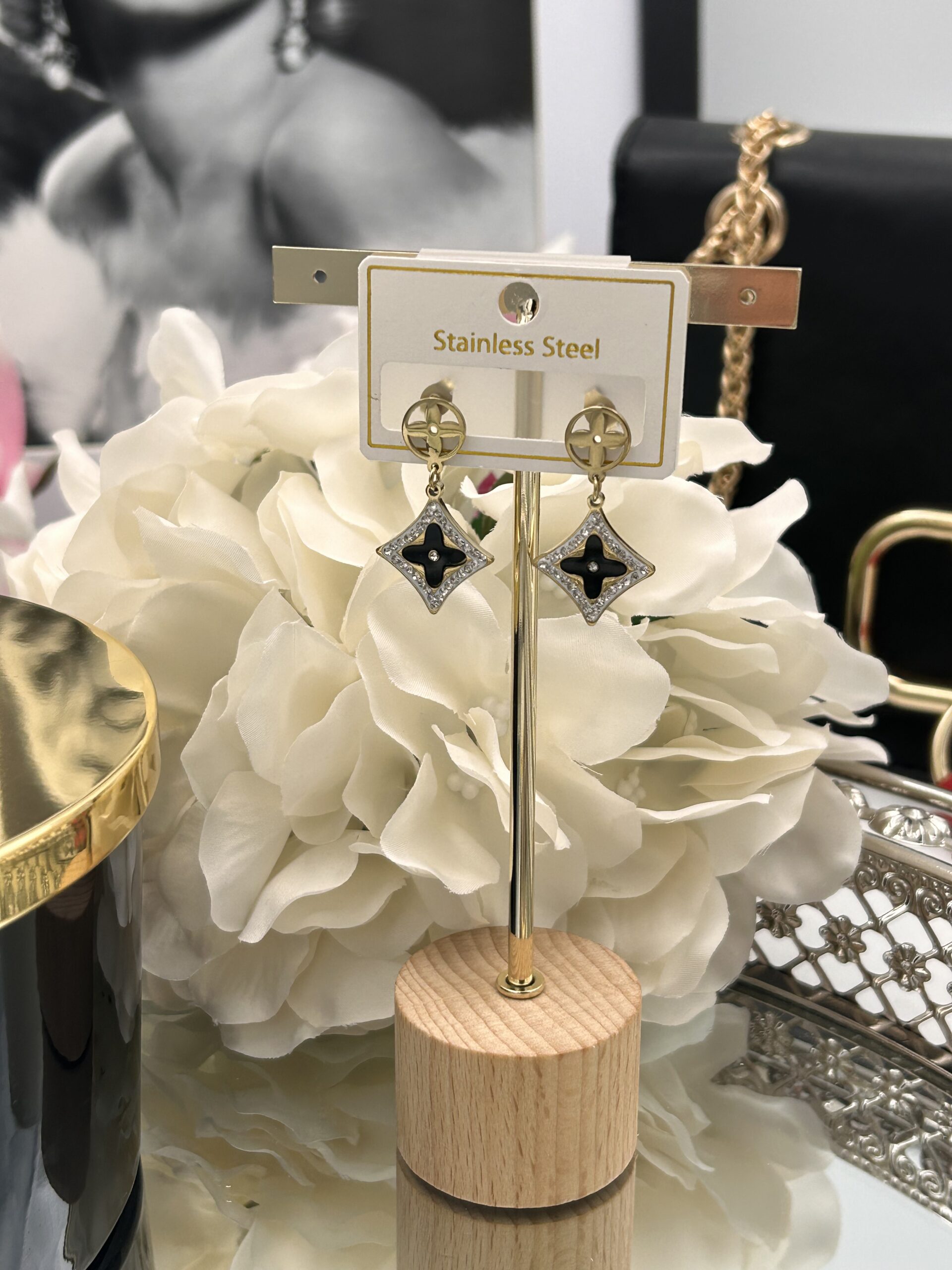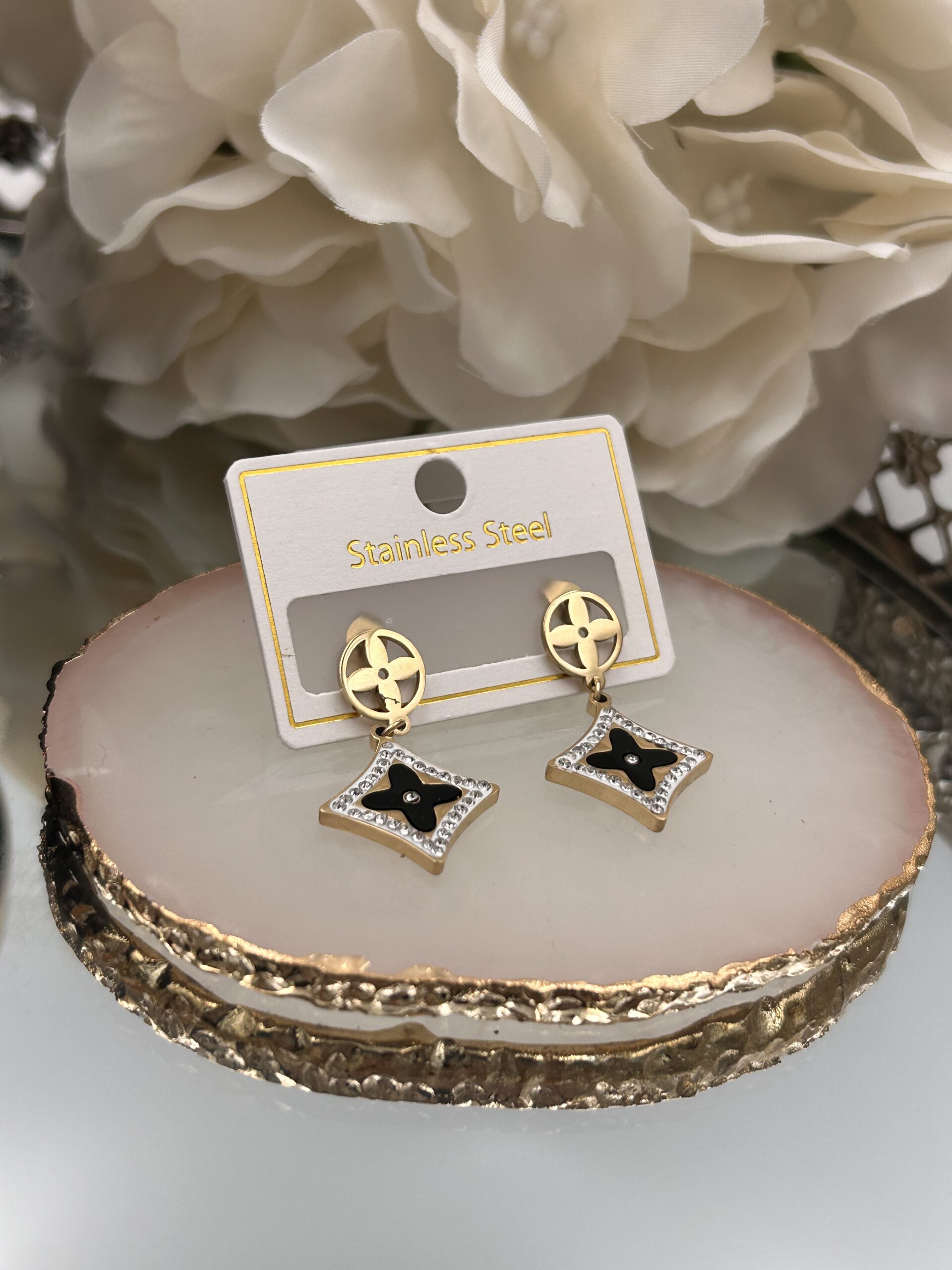 Kolczyki kółka koniczynka karo cyrkonie złote stal 316L