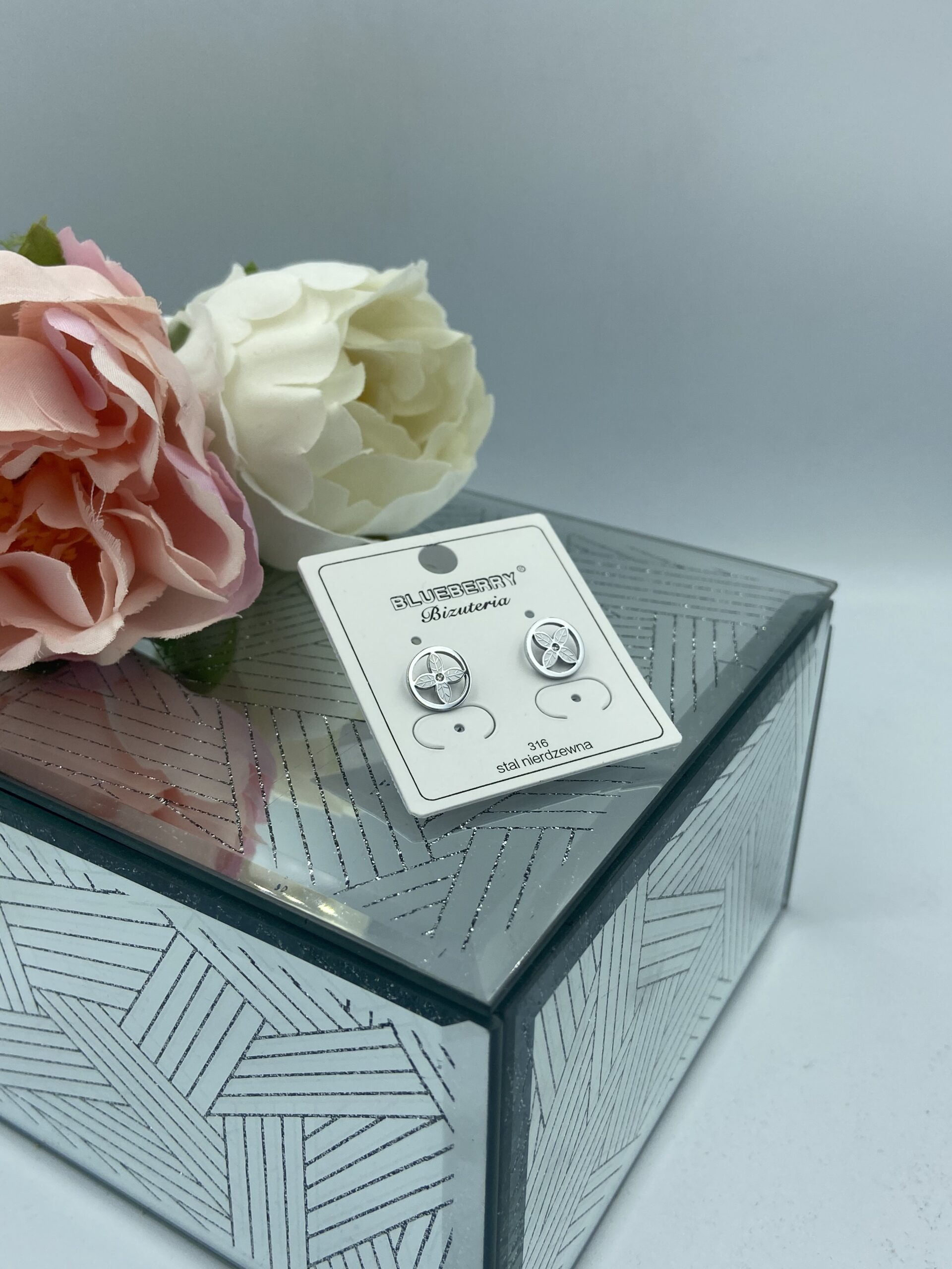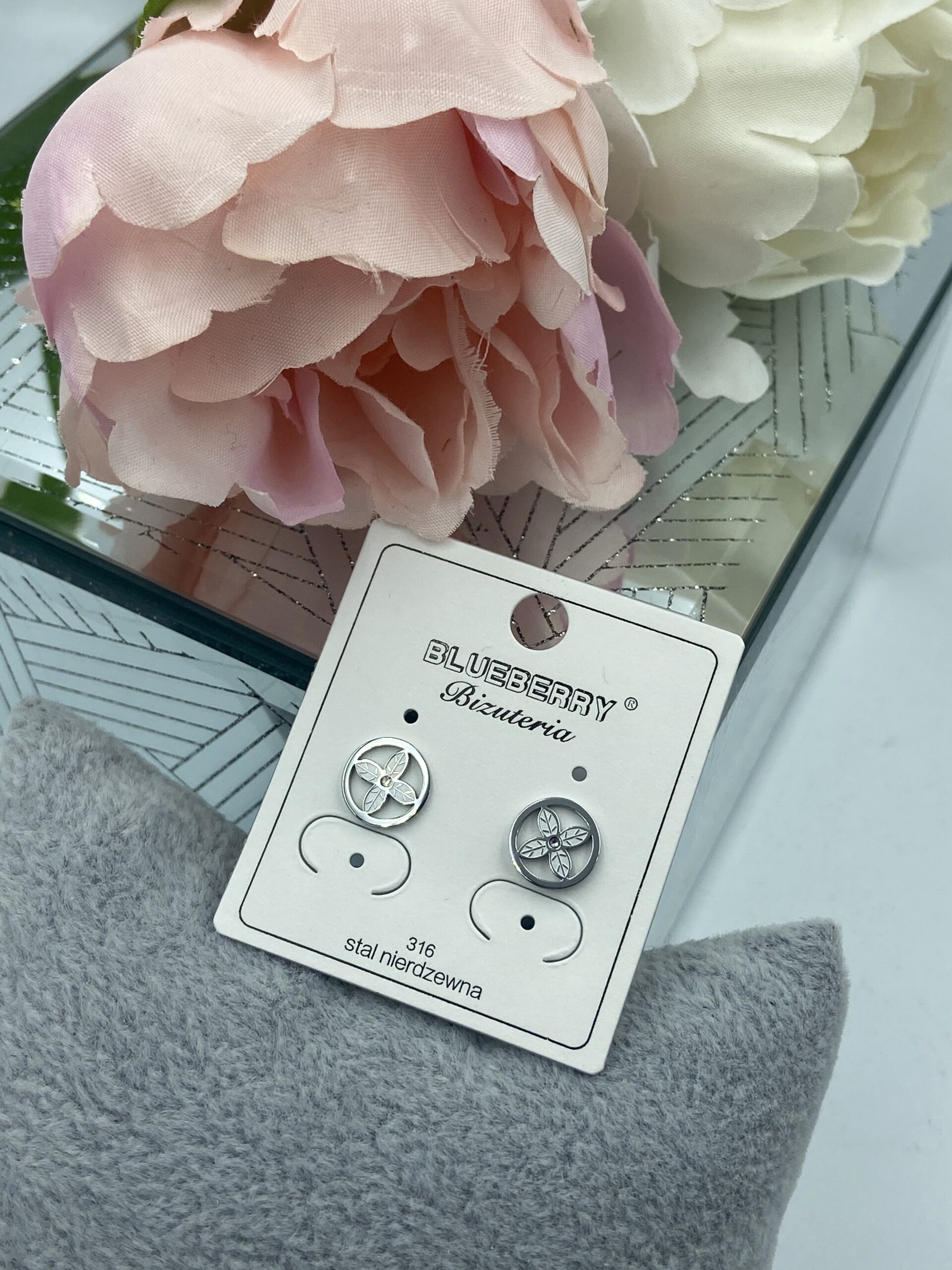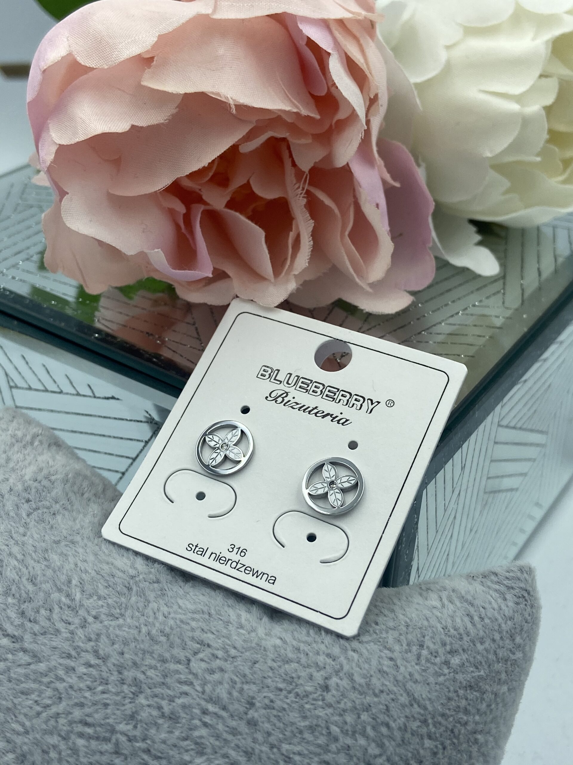 Kolczyki kółka kwiatek cyrkonia stal 316L