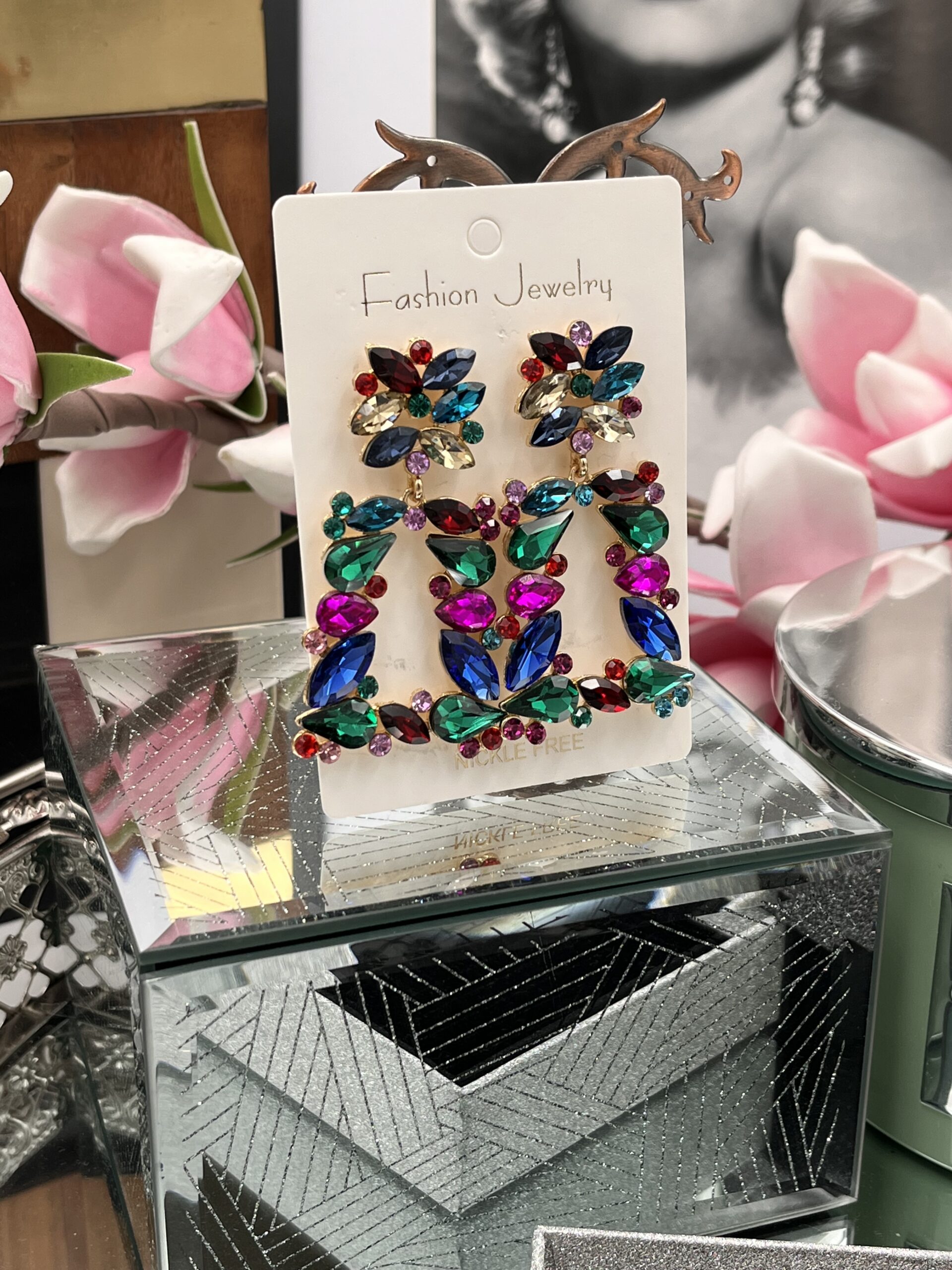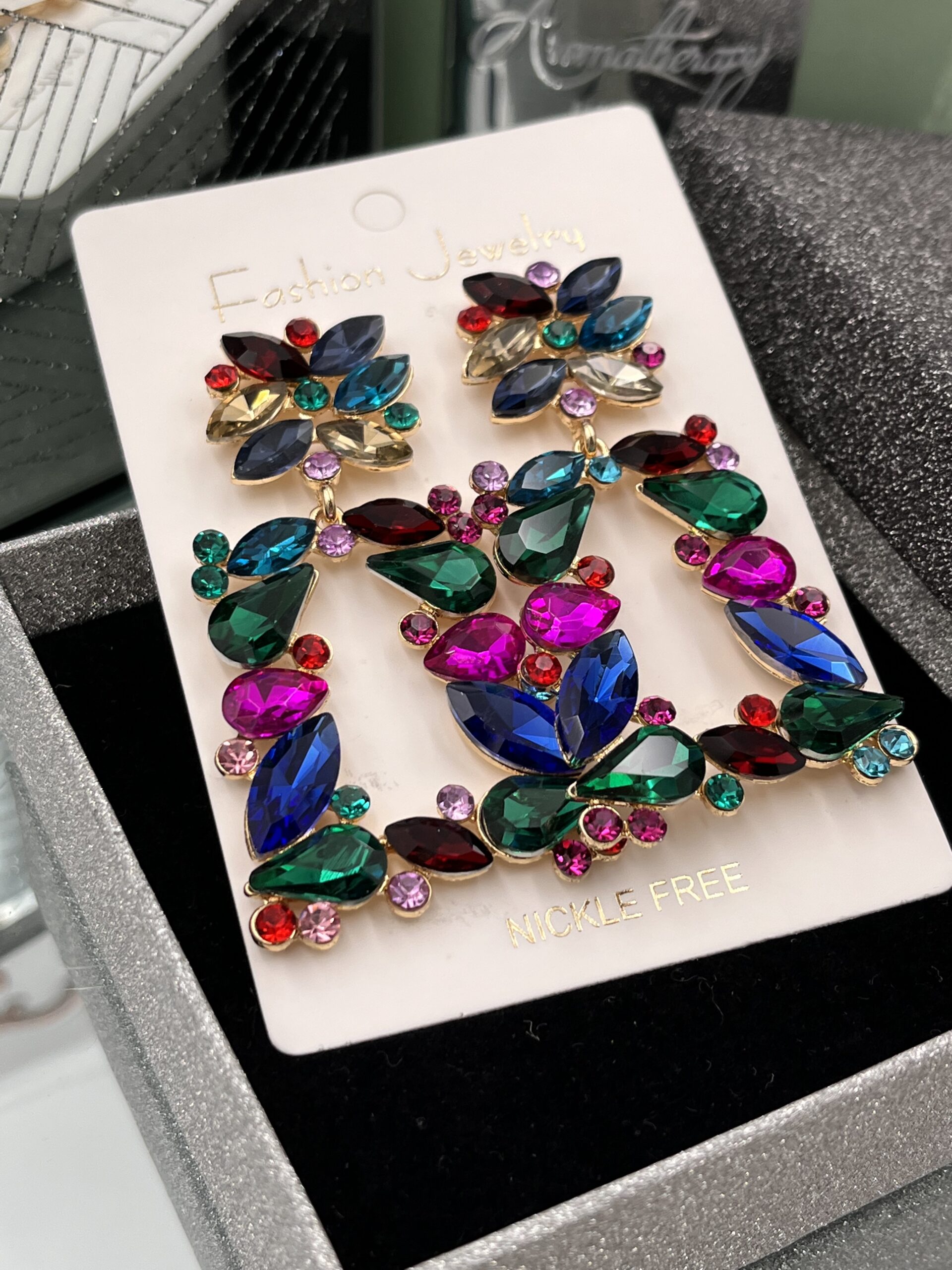 Kolczyki kryształki szkło kolorowe kamienie