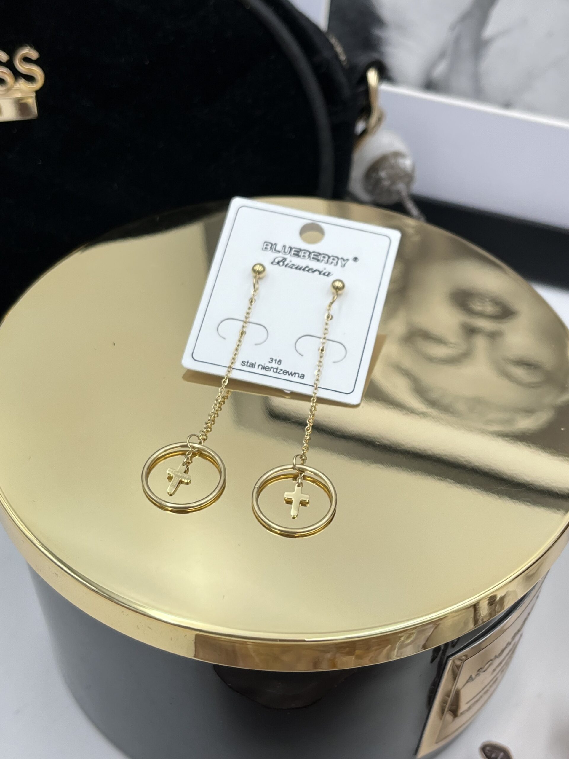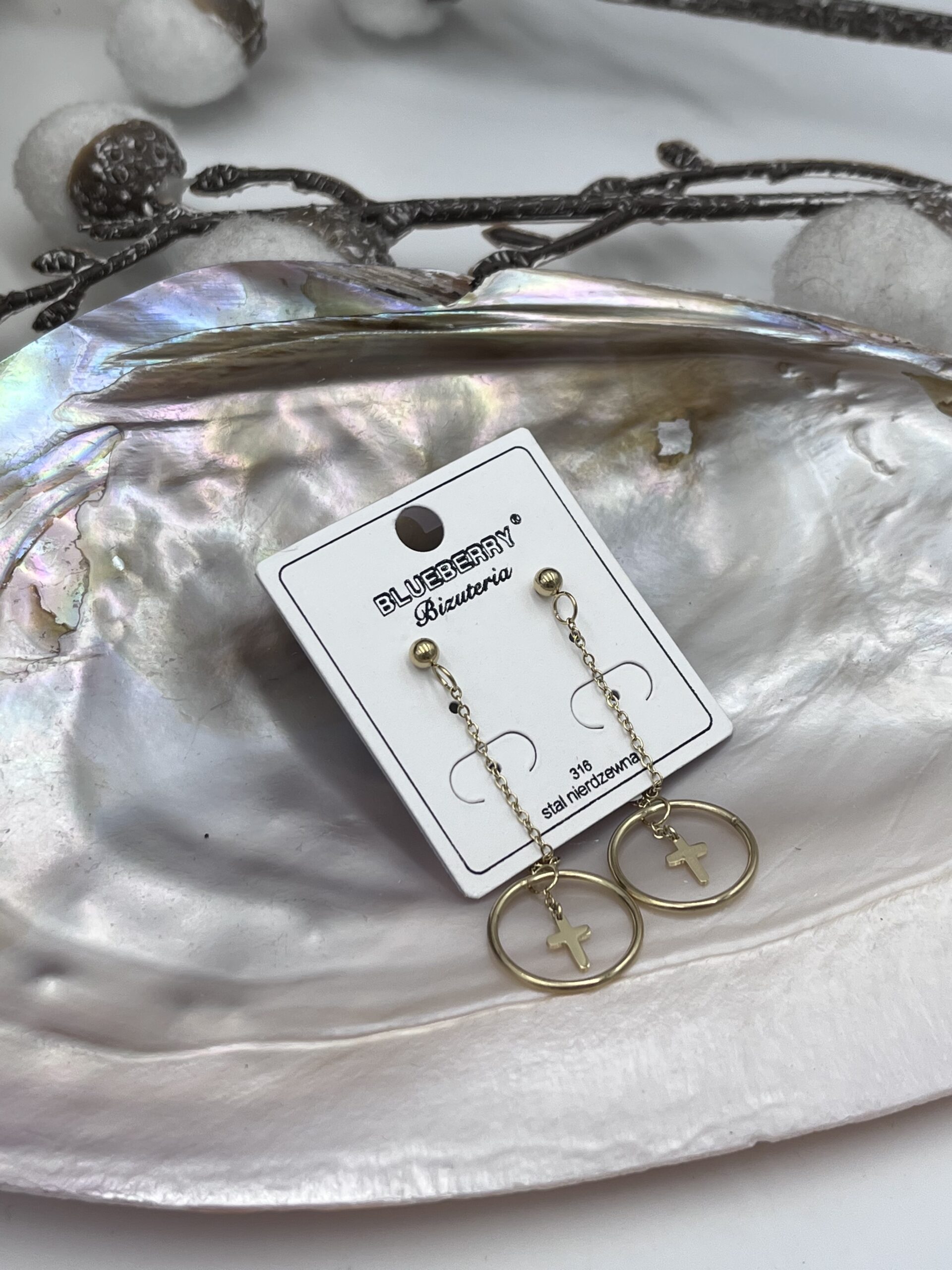 Kolczyki kółka krzyżyki stal 316L złote