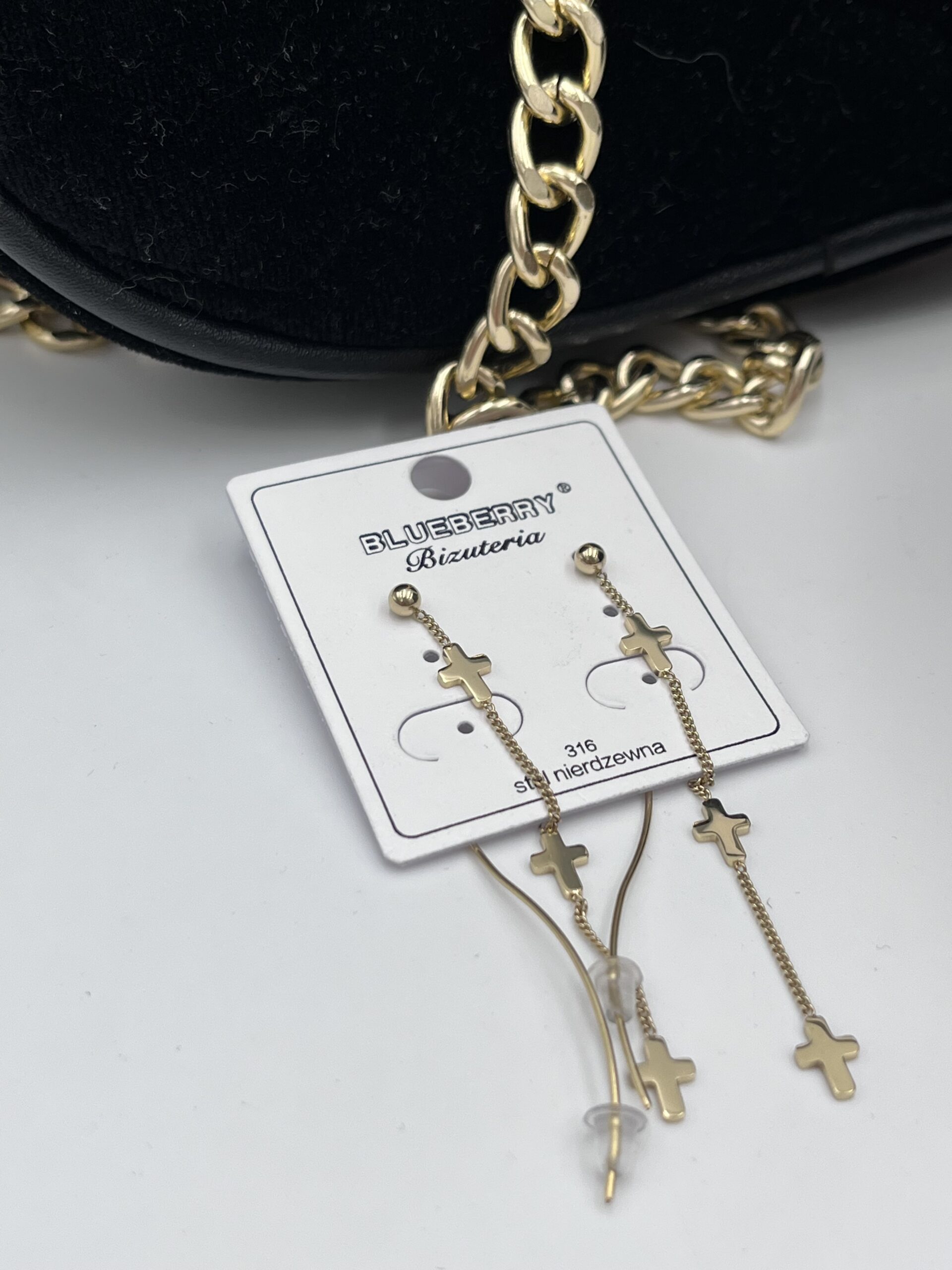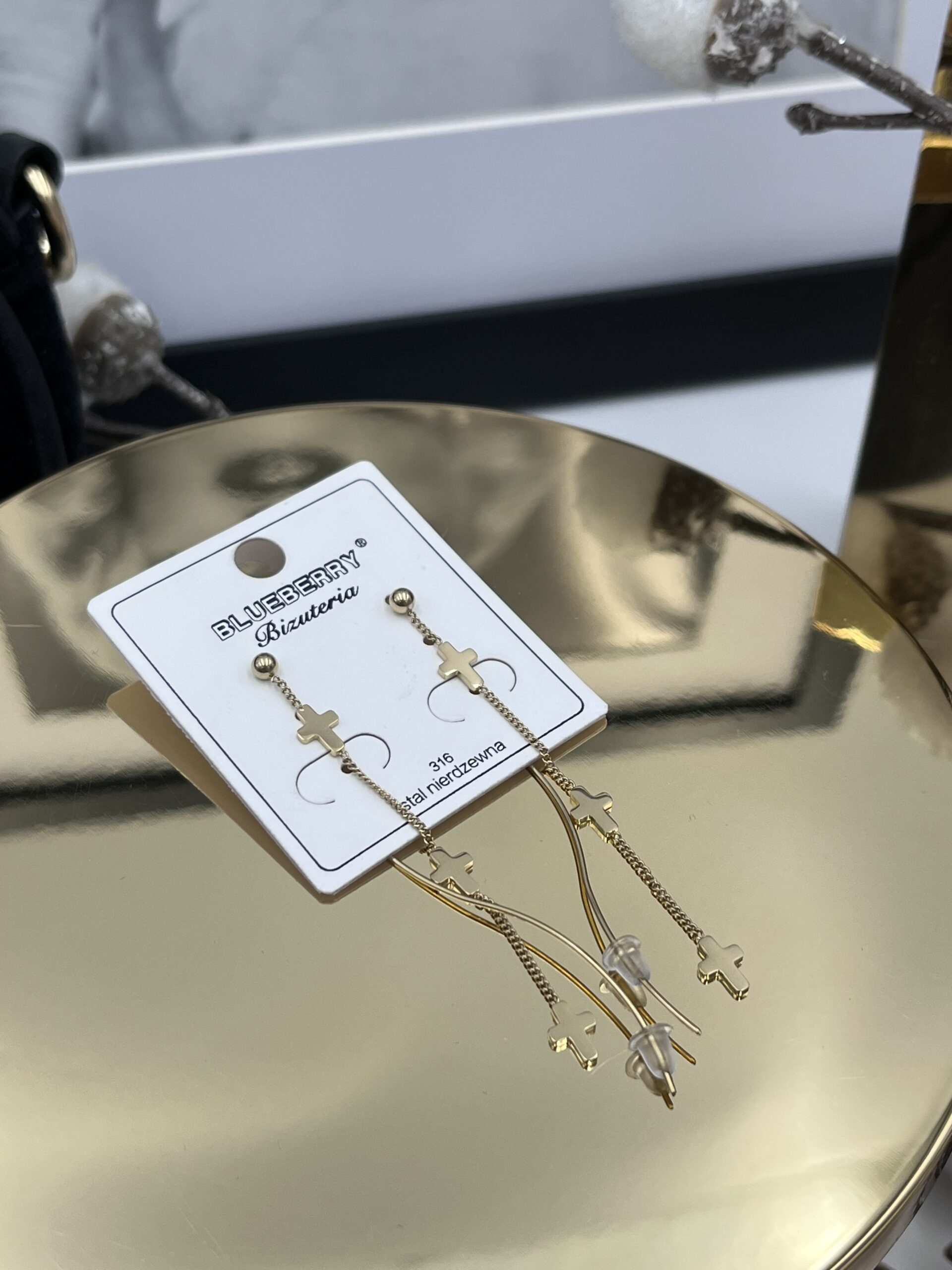 Kolczyki krzyże krzyżyki stal 316L złote