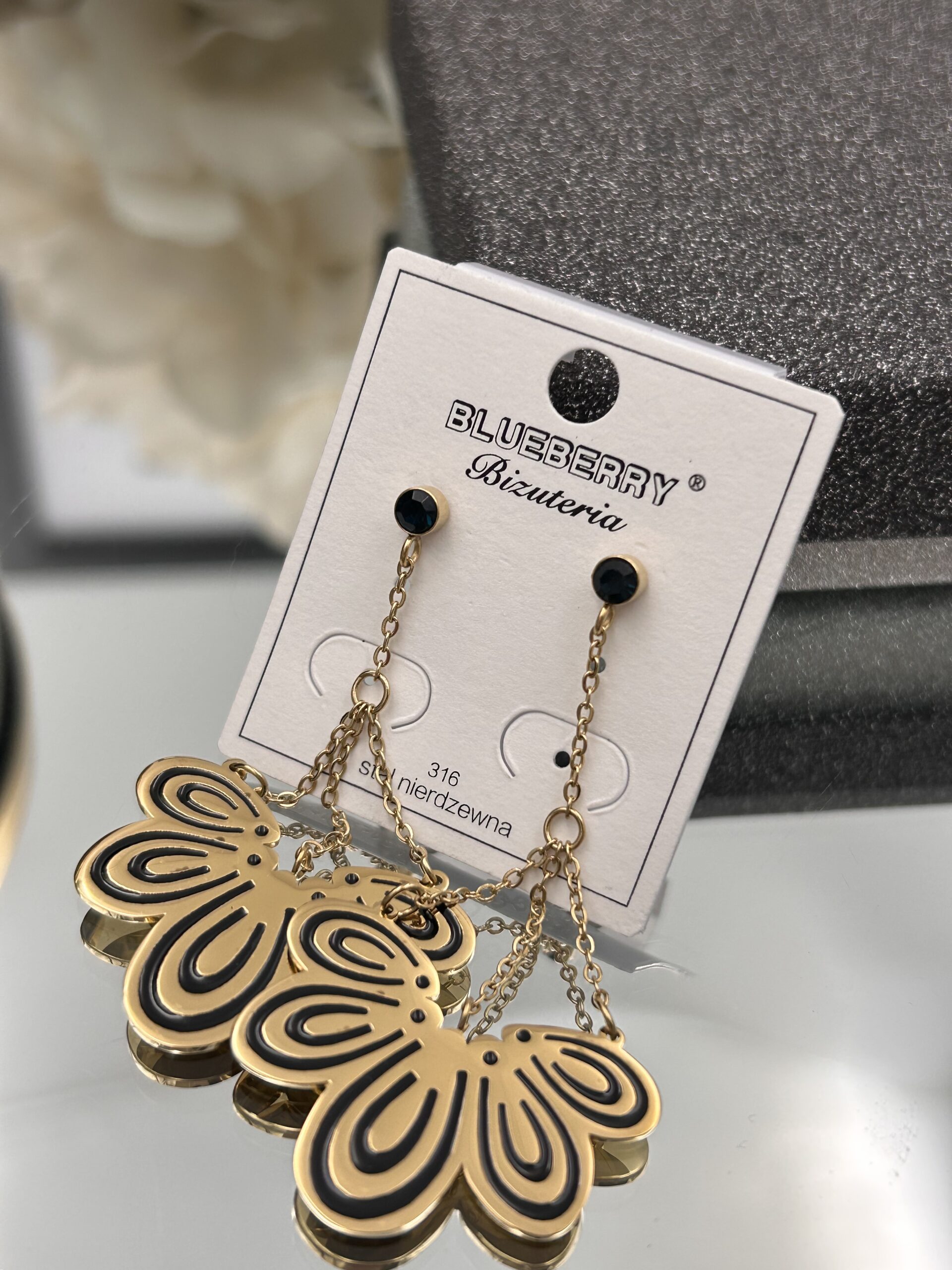 Kolczyki kwiat czarna cyrkonia stal 316L