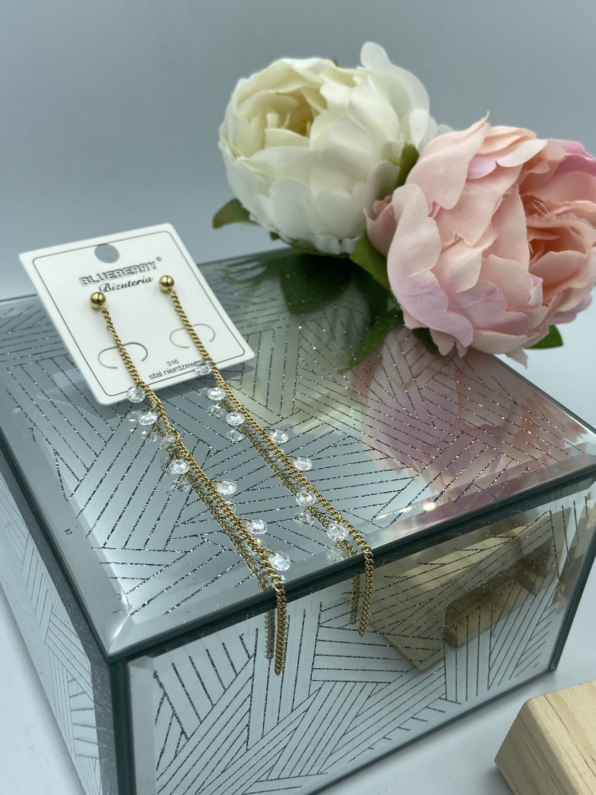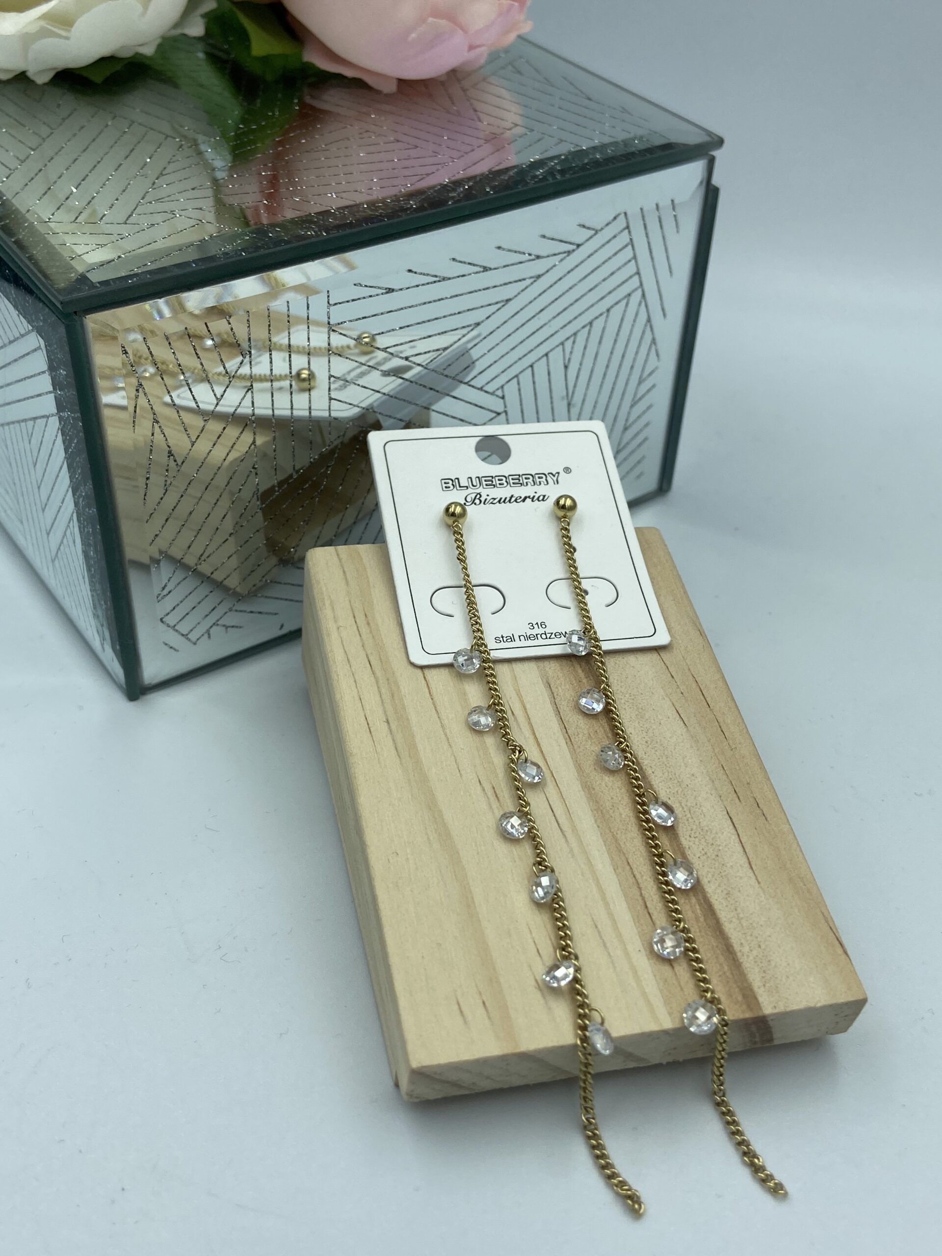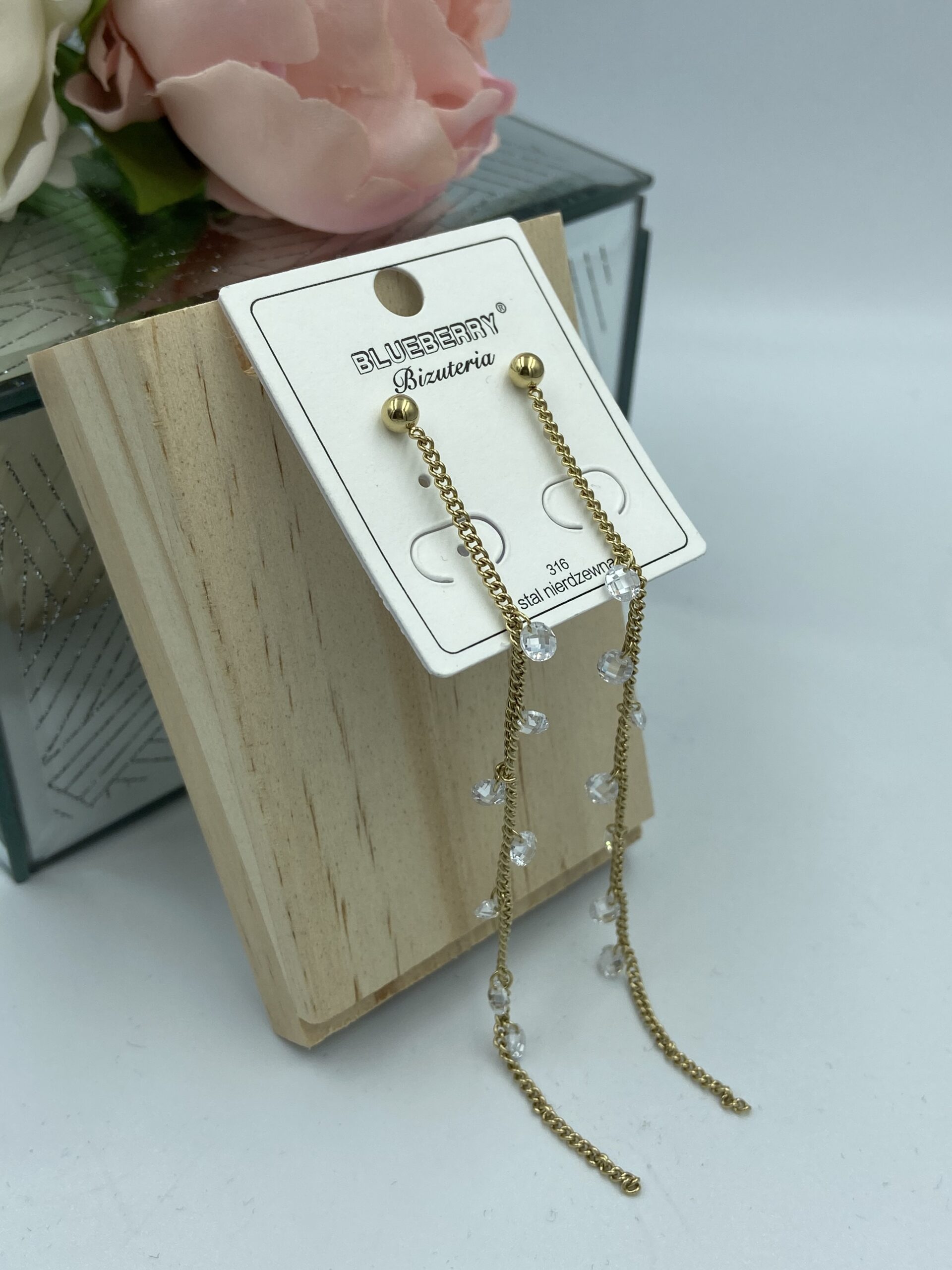 Kolczyki łańcuszek kamyki 316L złote