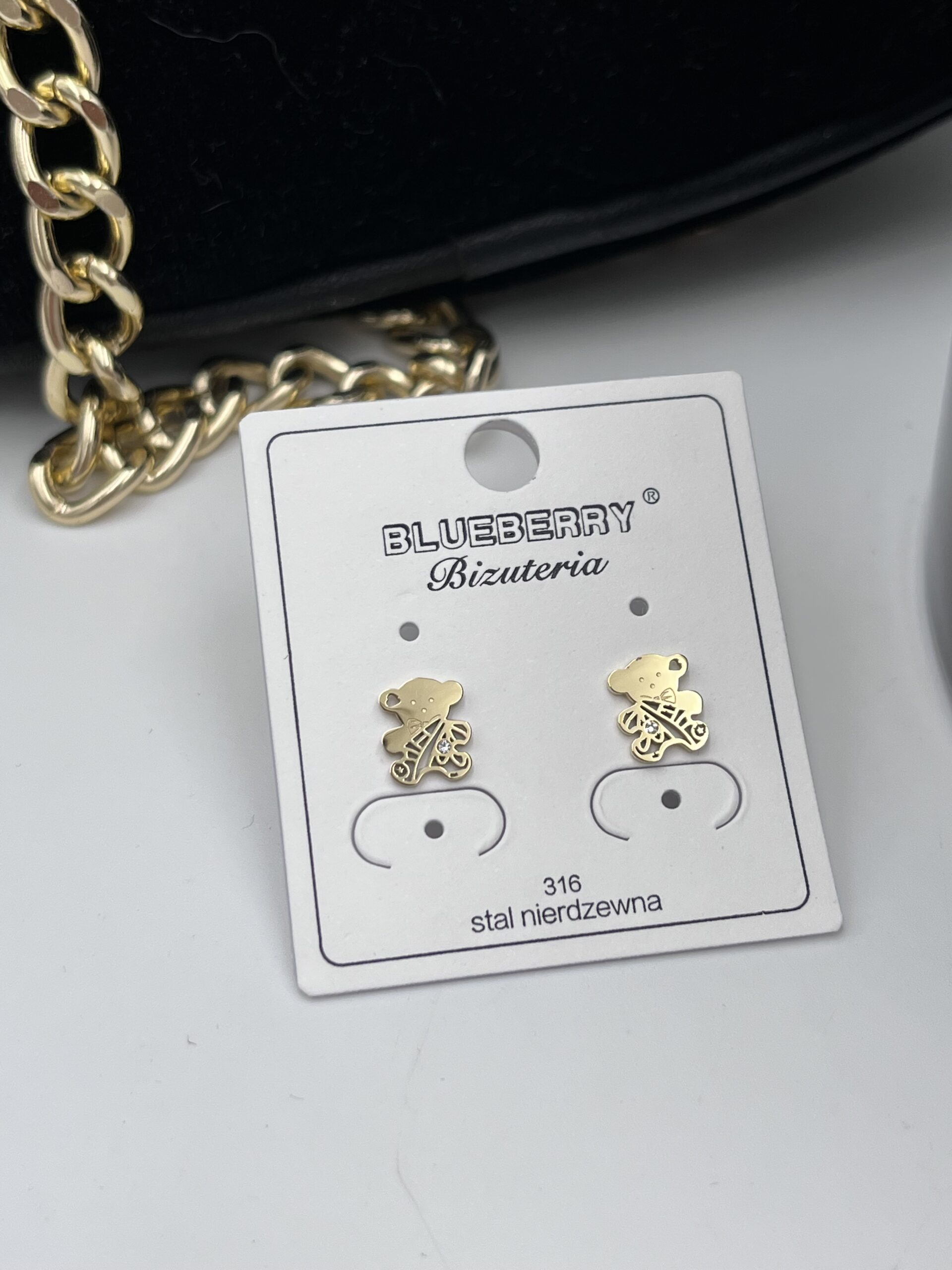 Kolczyki miś misie ażur cyrkonia stal 316L złote