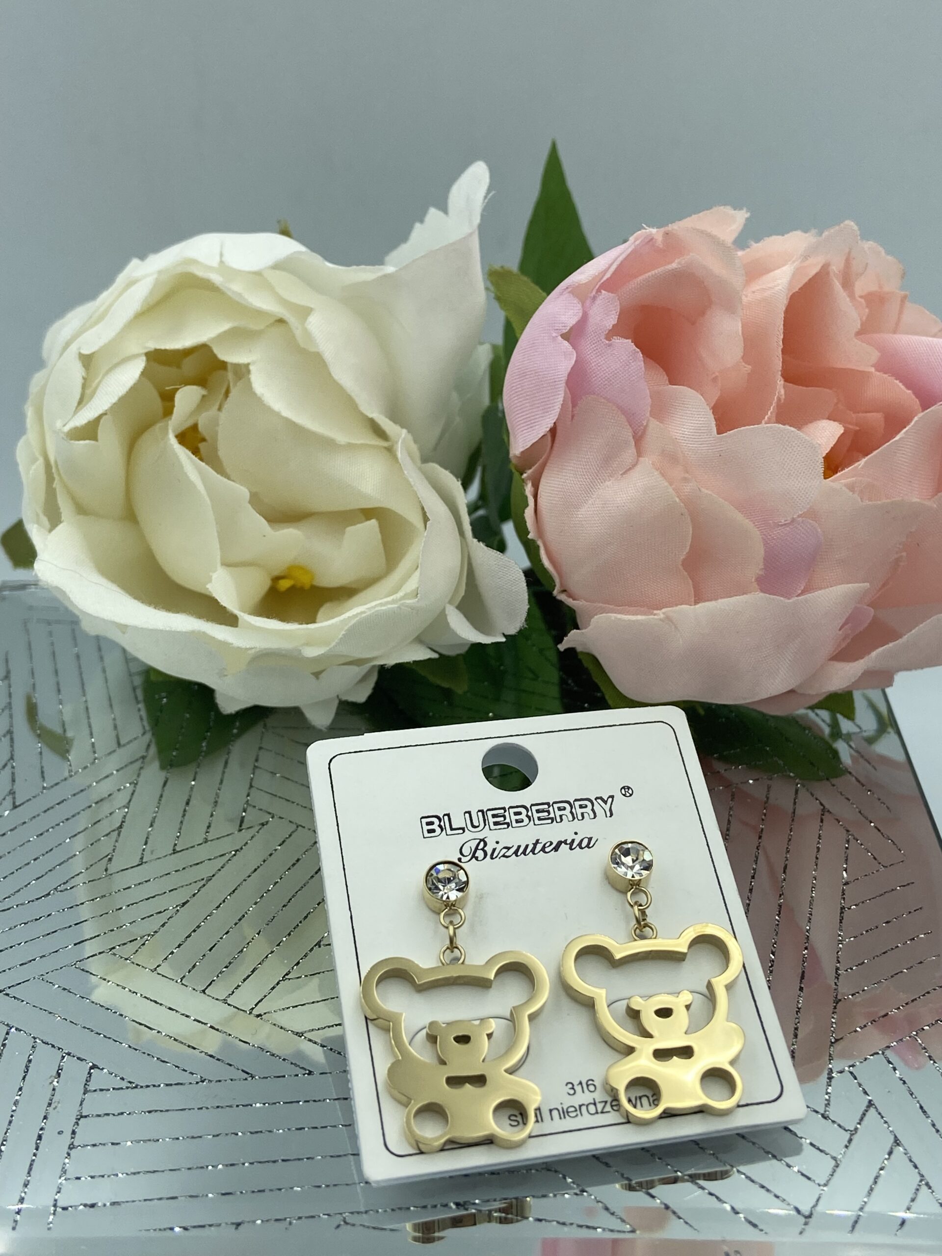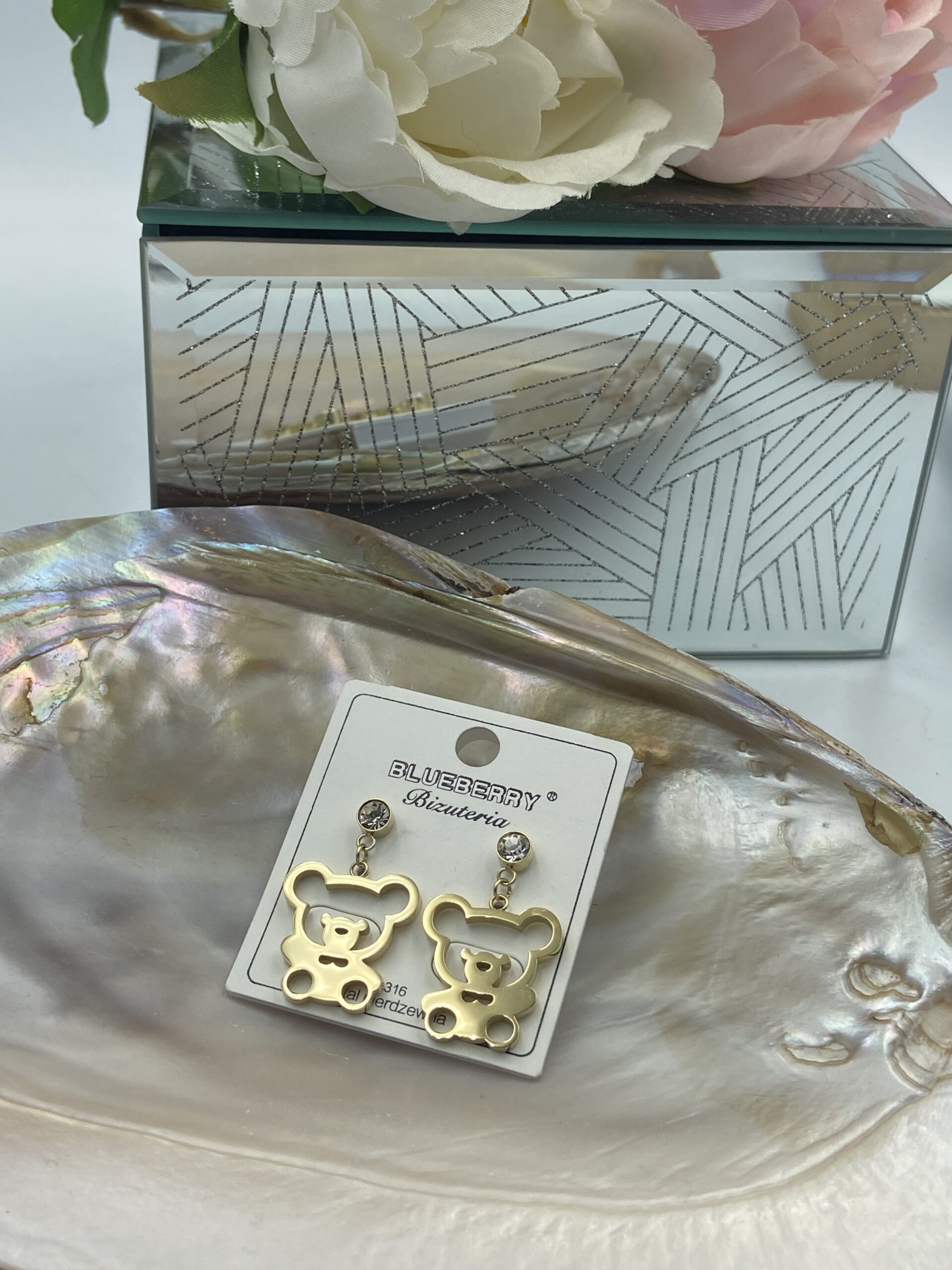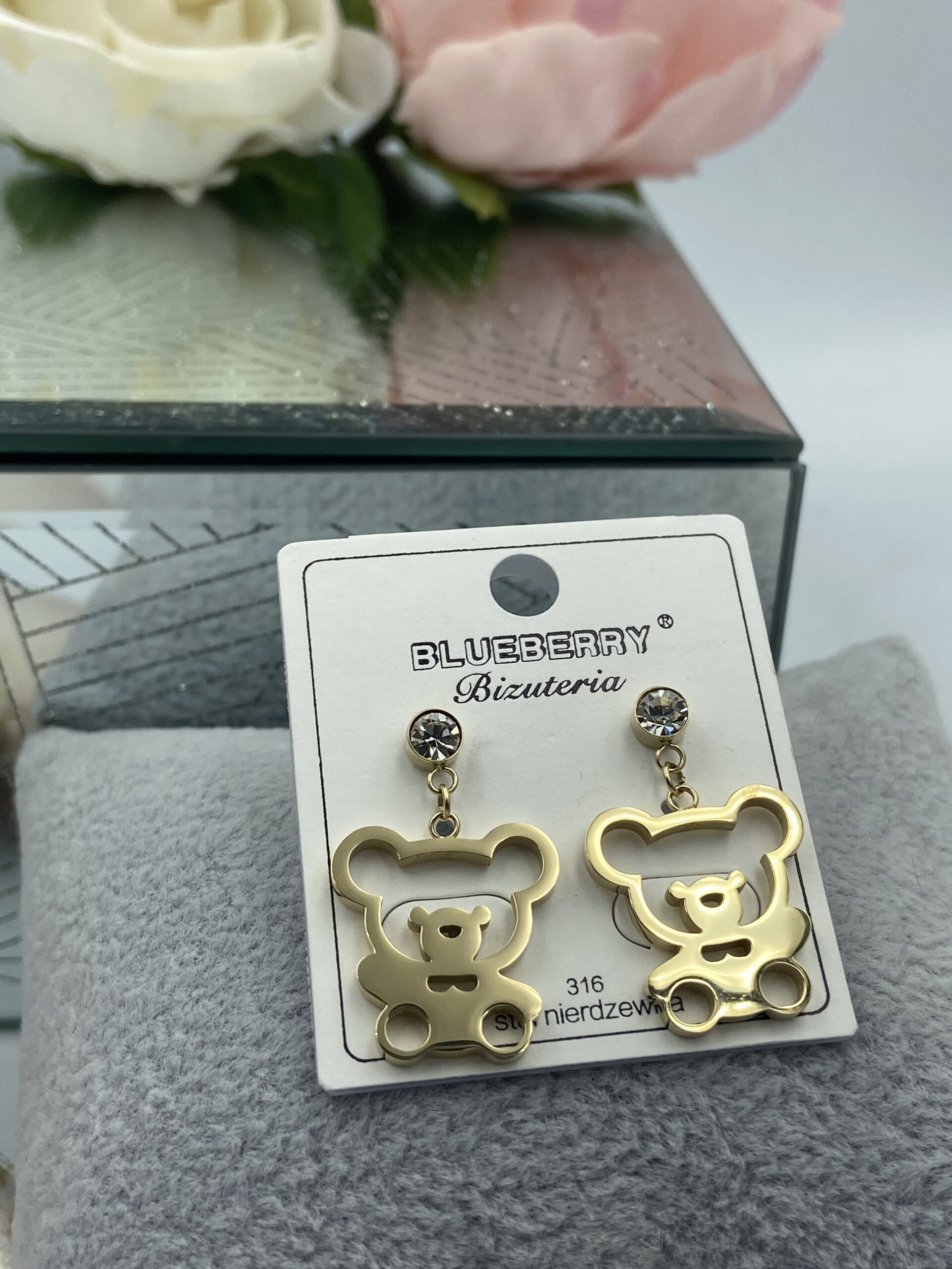 Śliczne, wiszące misie z cyrkonią. Kolor złoty.