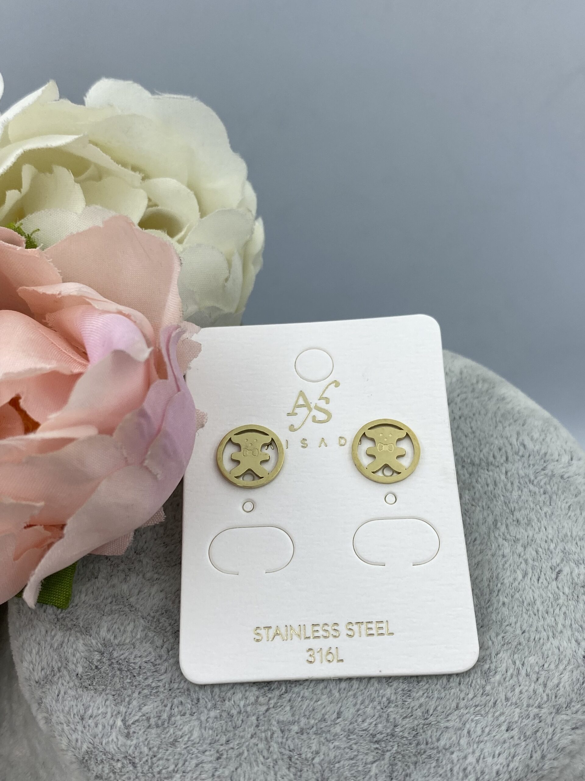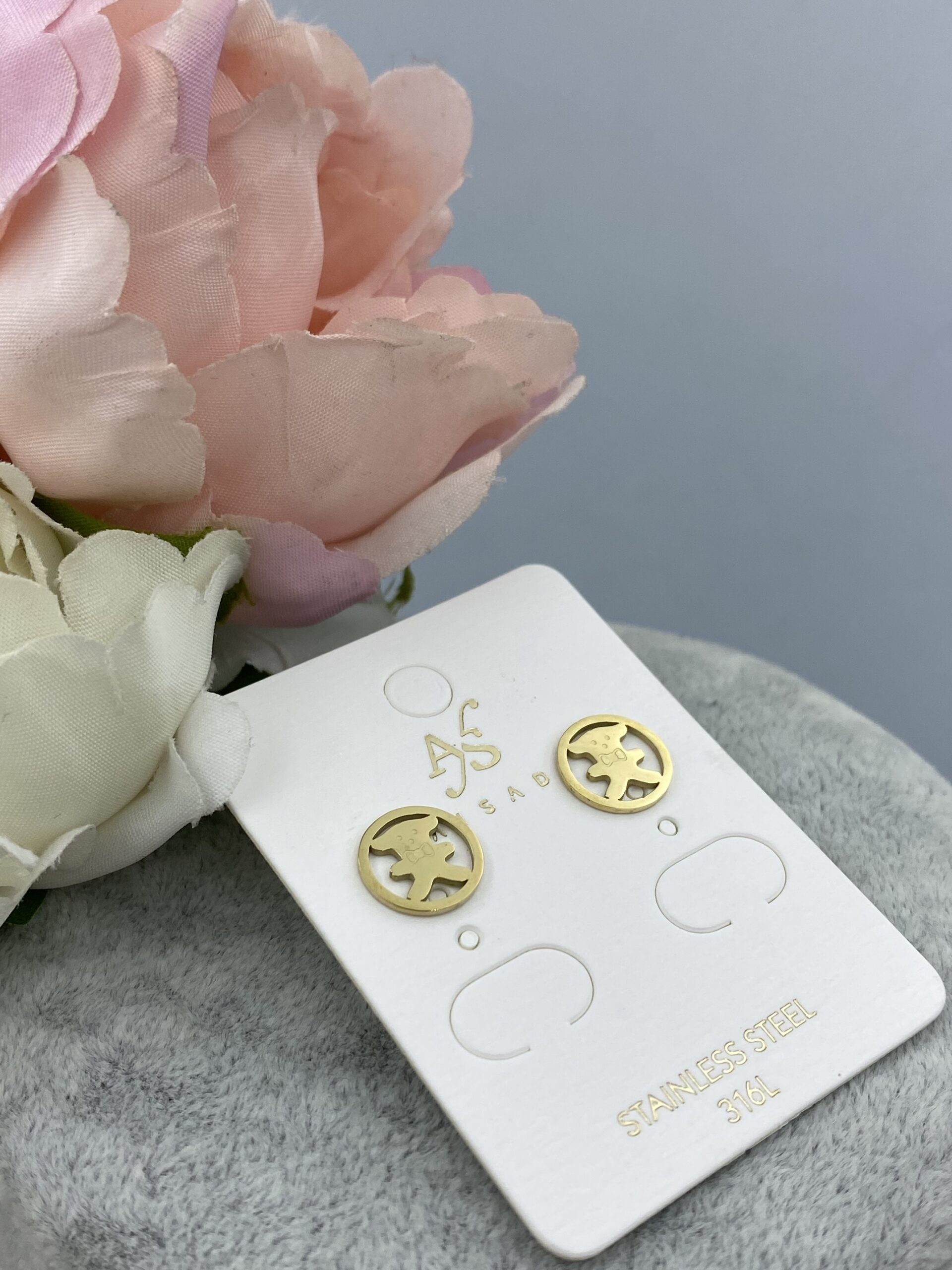 Kolczyki miś misie kółko stal 316L złote