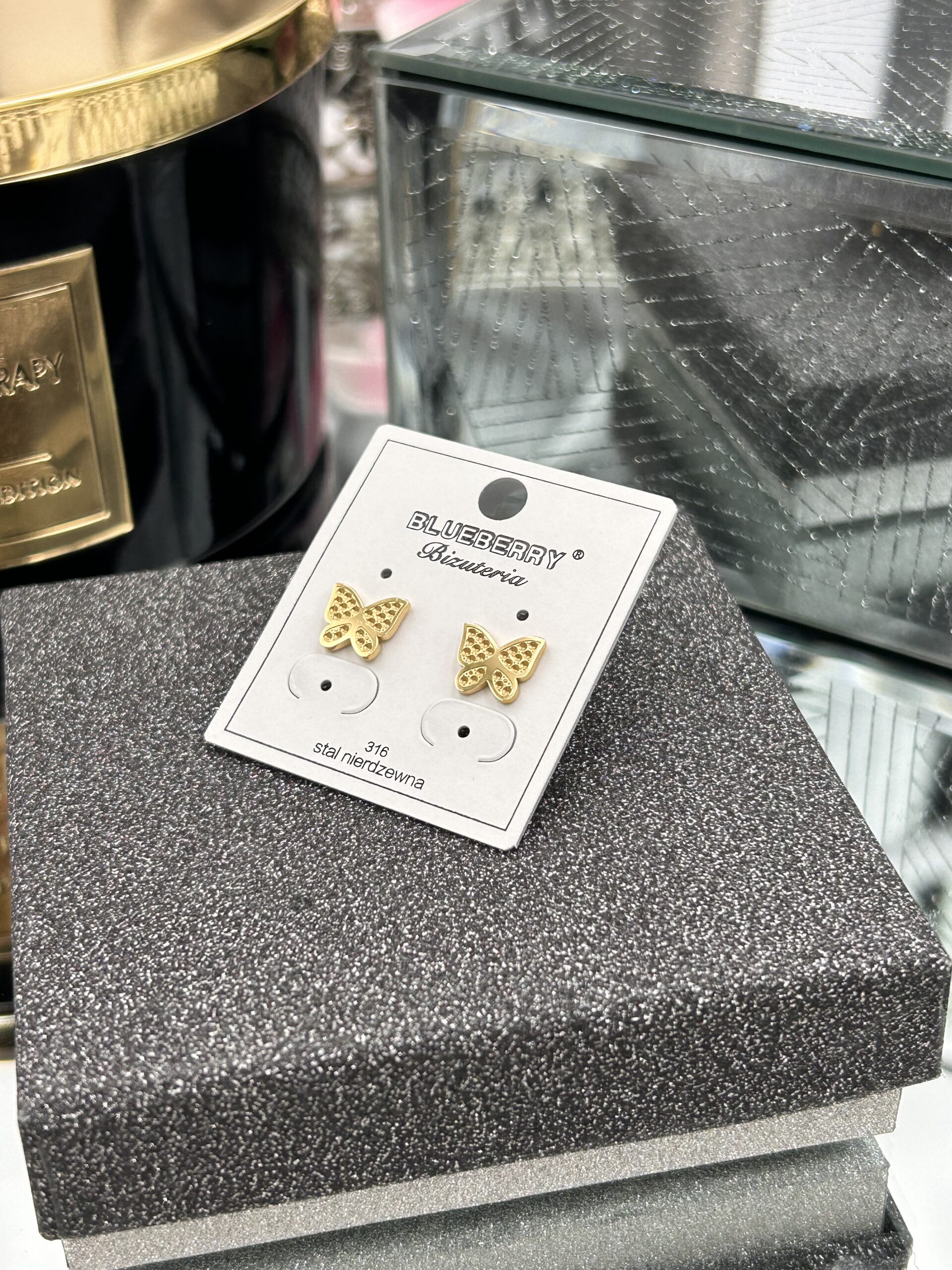 Kolczyki motyl motylki stal 316L złote