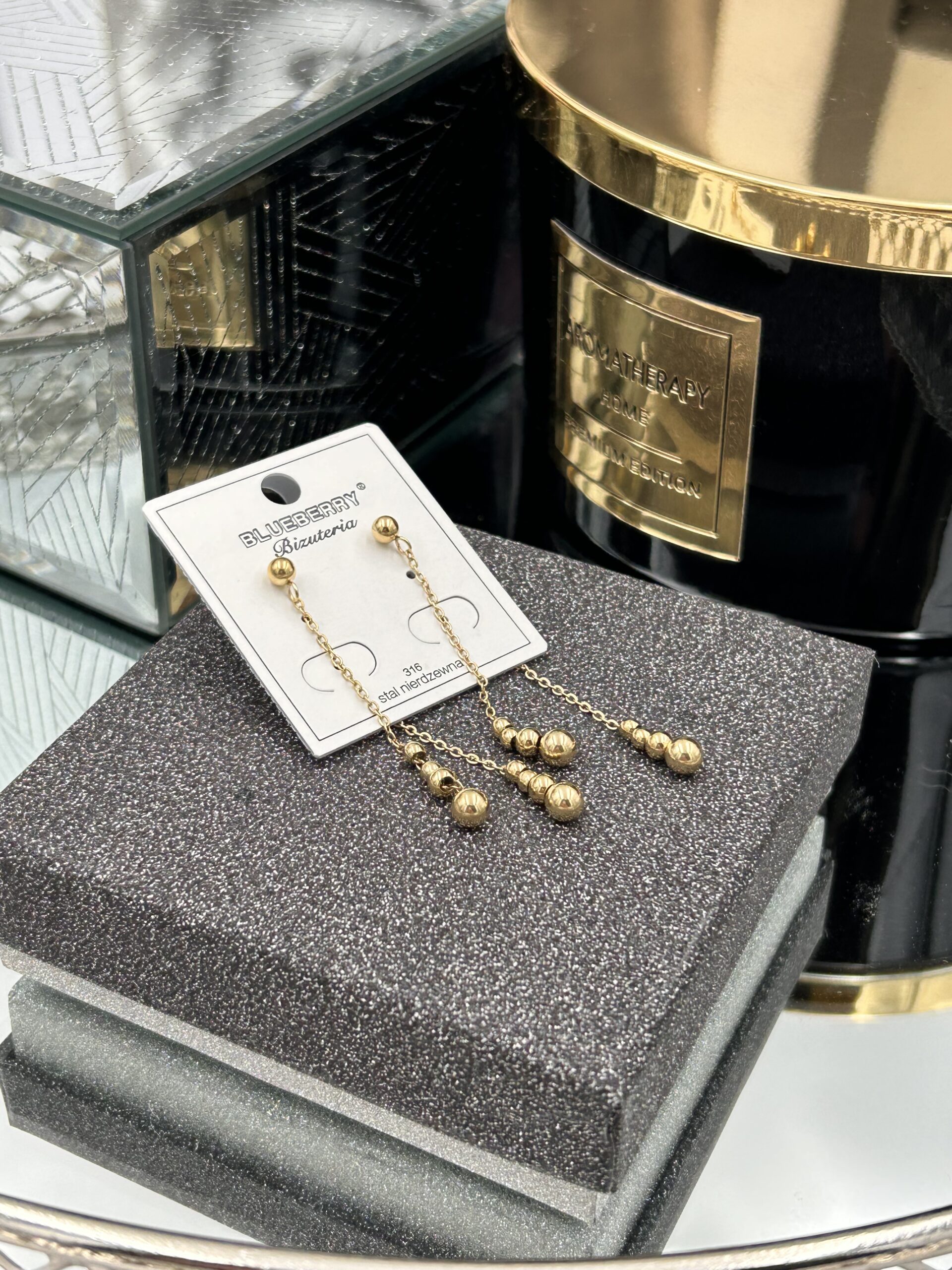 Kolczyki kulki łańcuszek stal 316L złote
