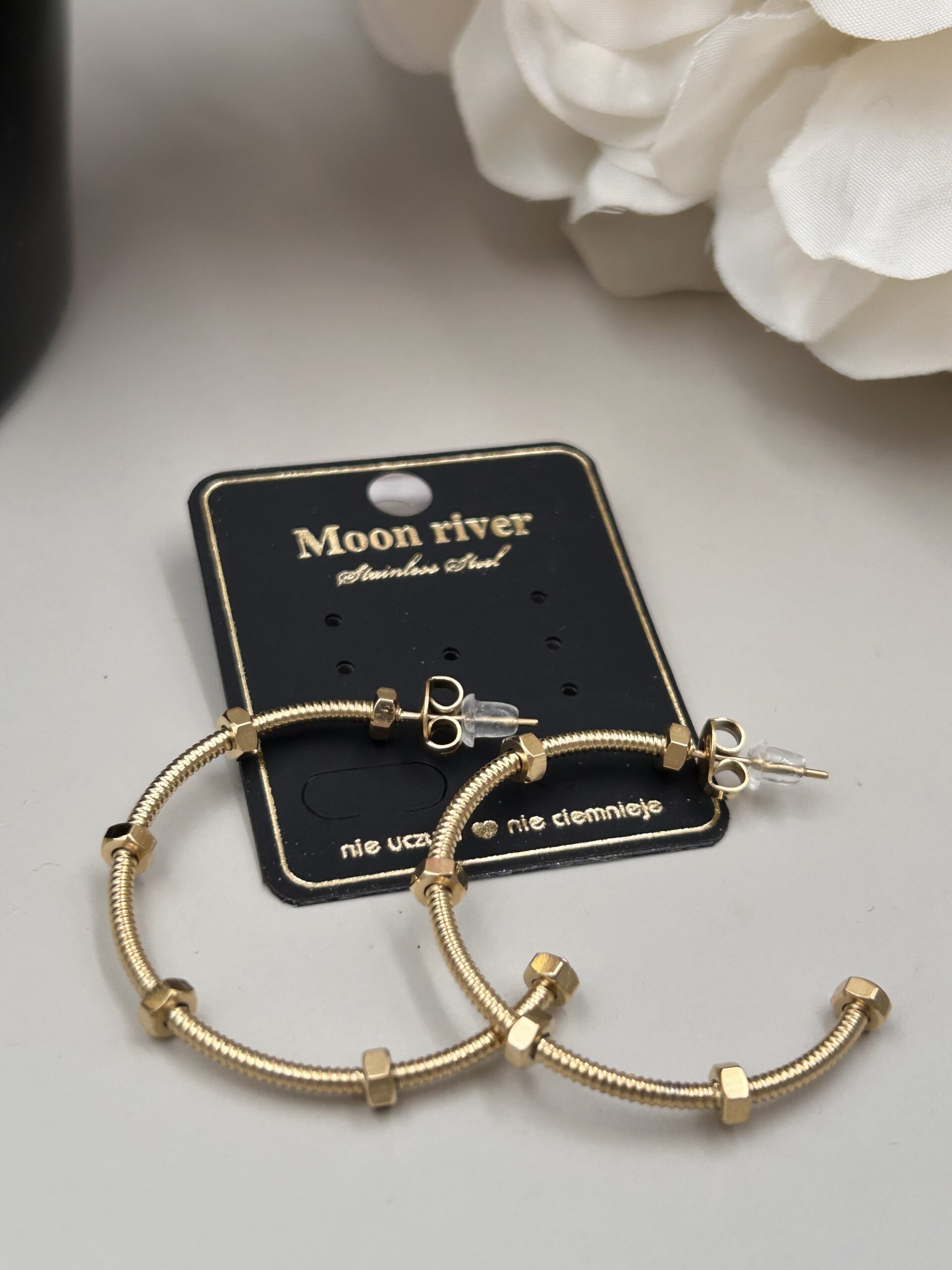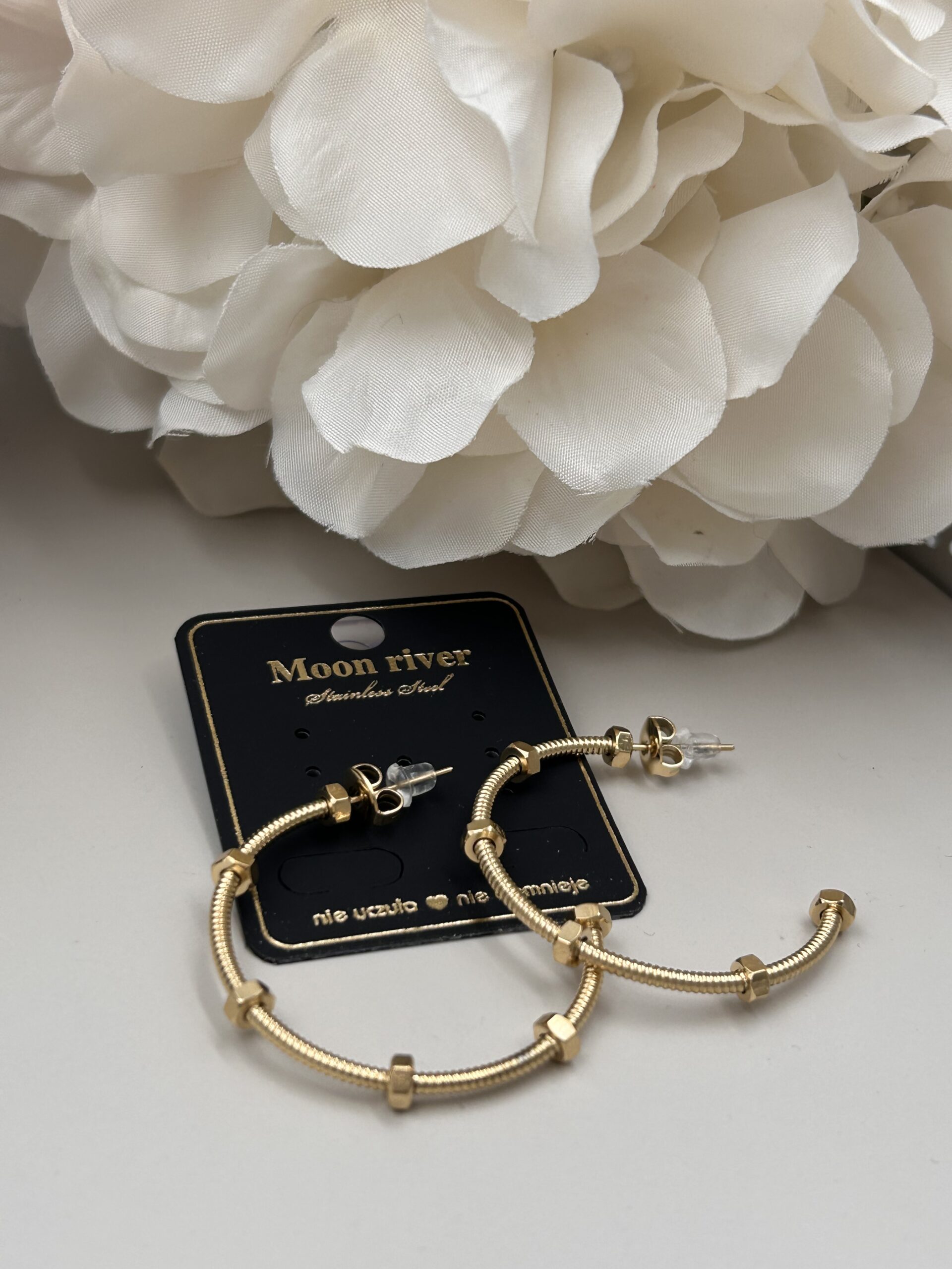 Kolczyki koła półkola śrubka nakrętka 3,8 cm stal 316L złote