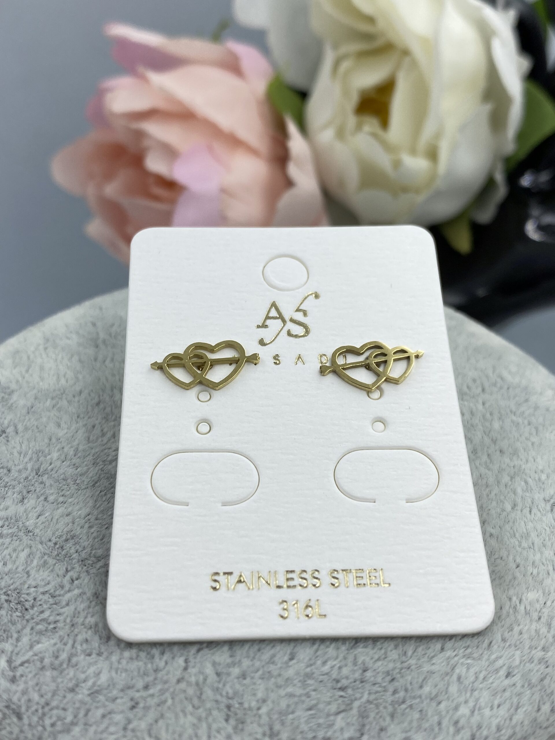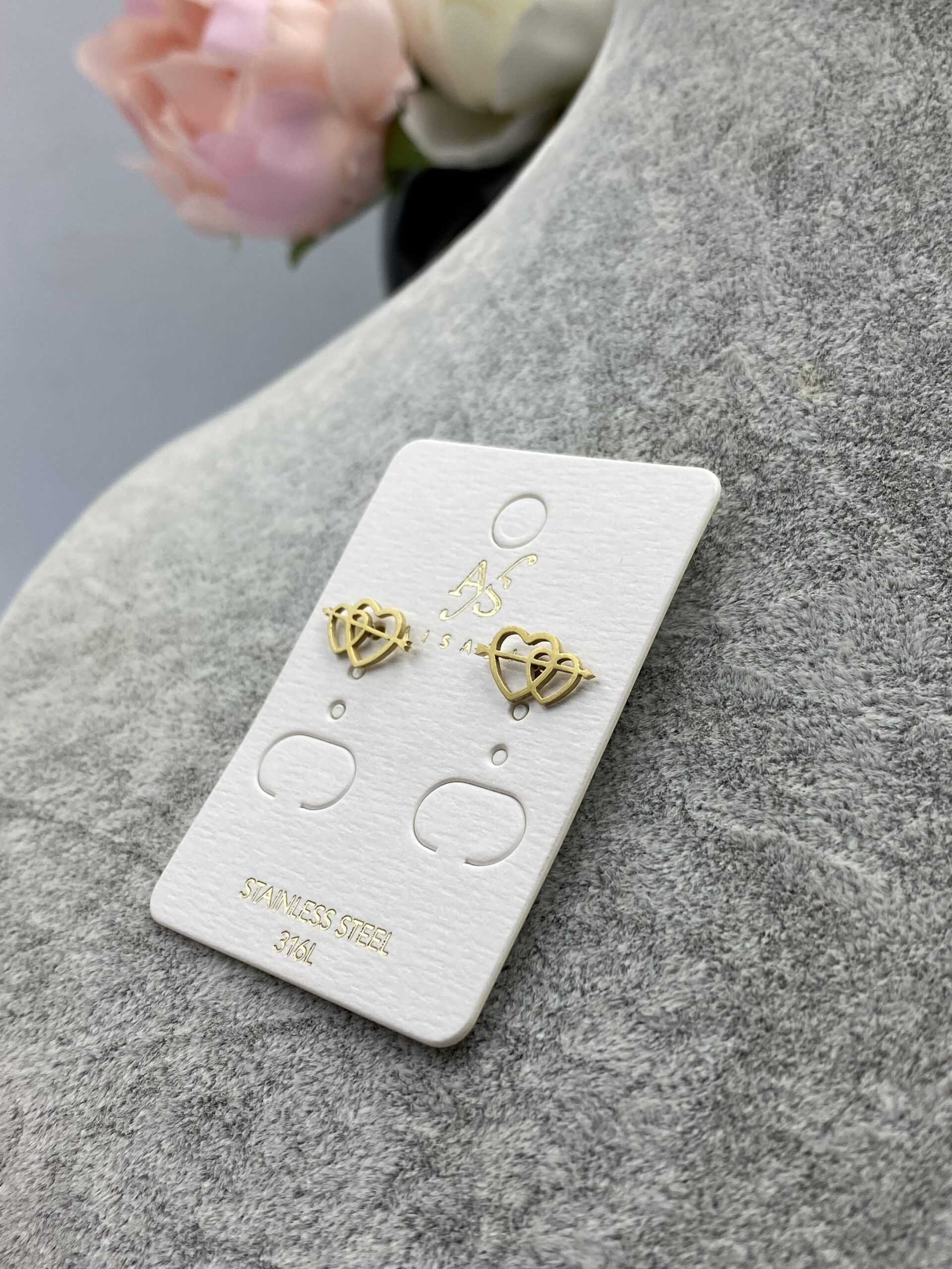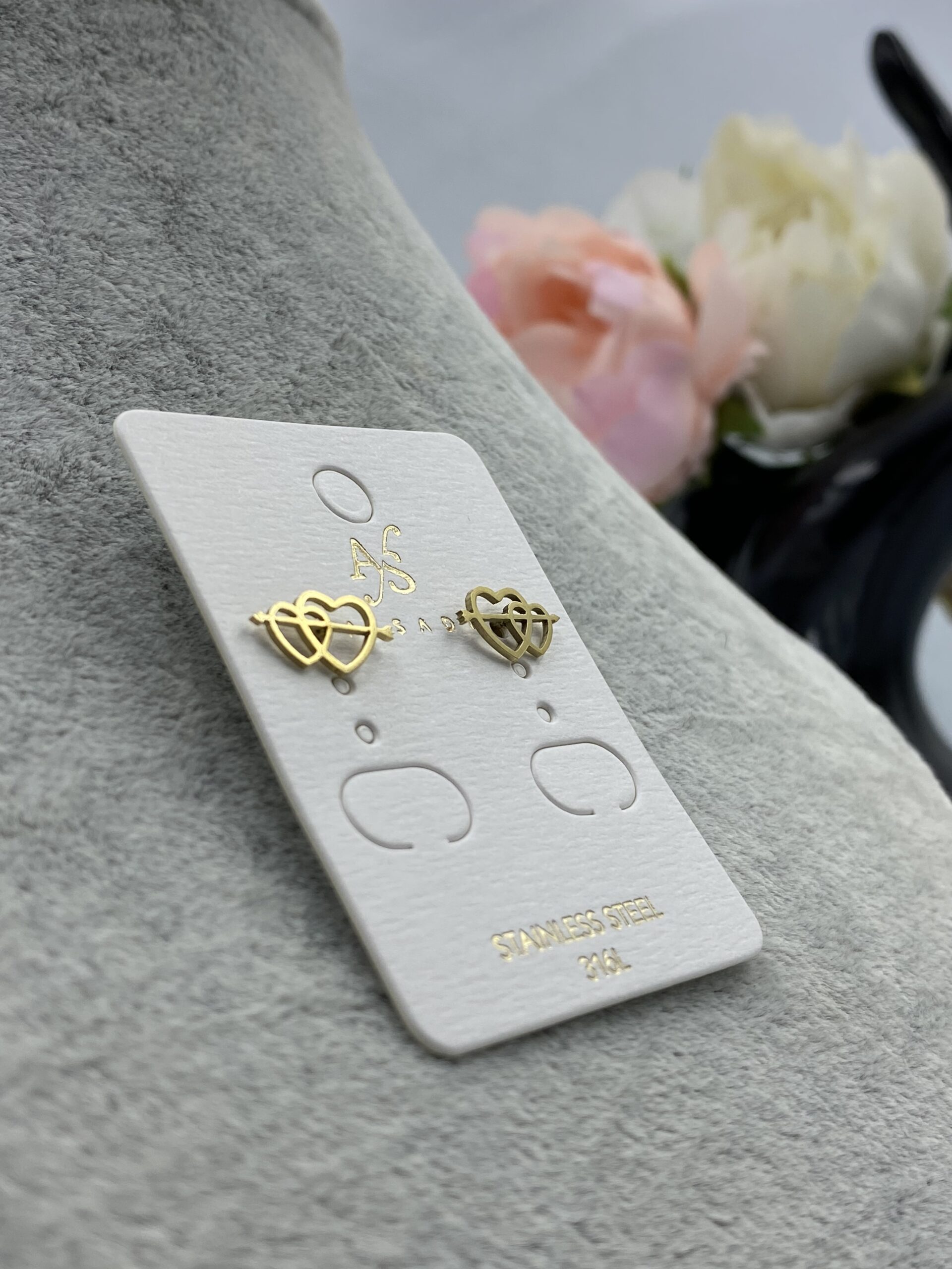 Kolczyki serca strzała stal 316L złote