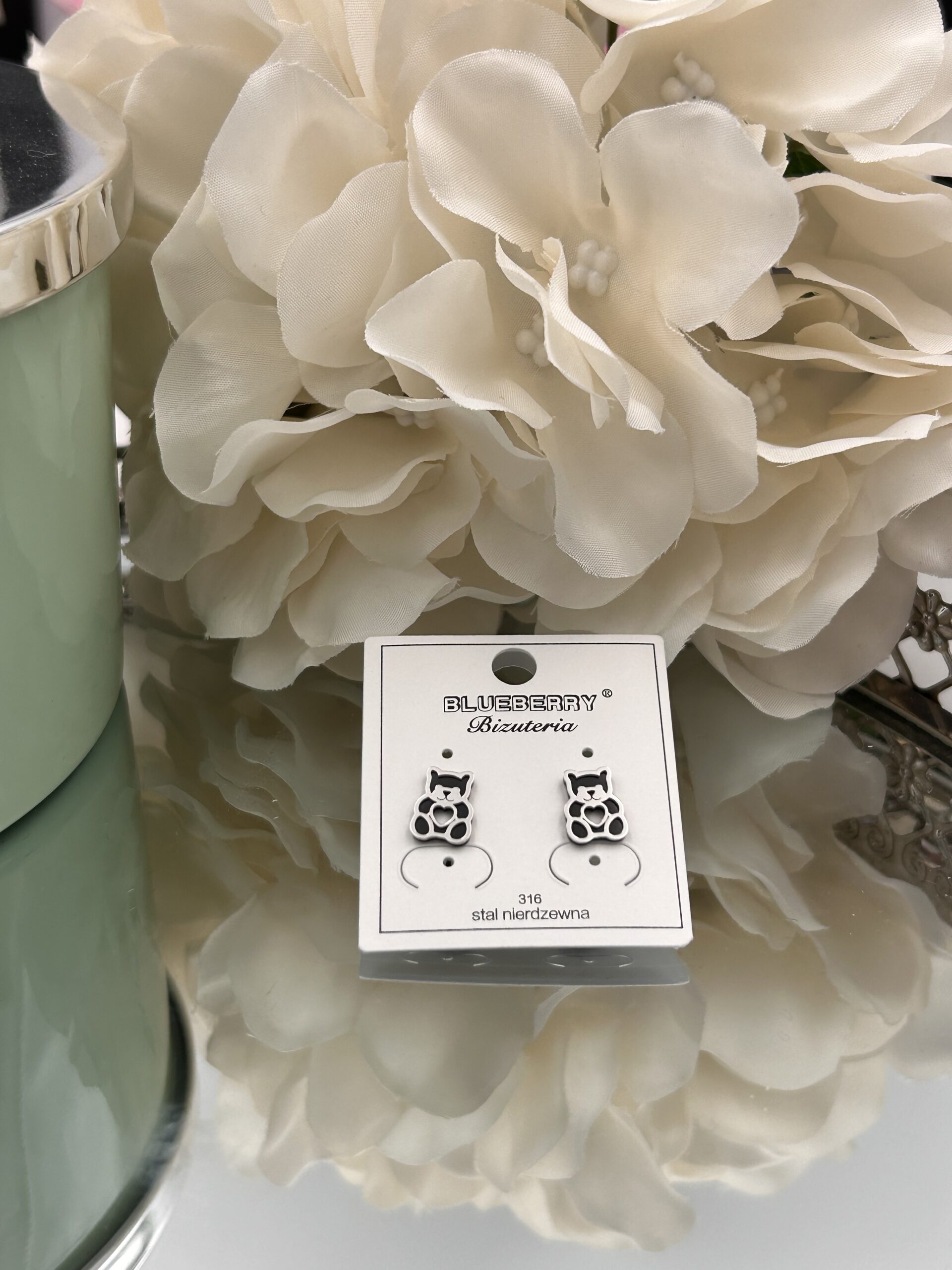 Kolczyki czarny miś misie srebrne stal 316L
