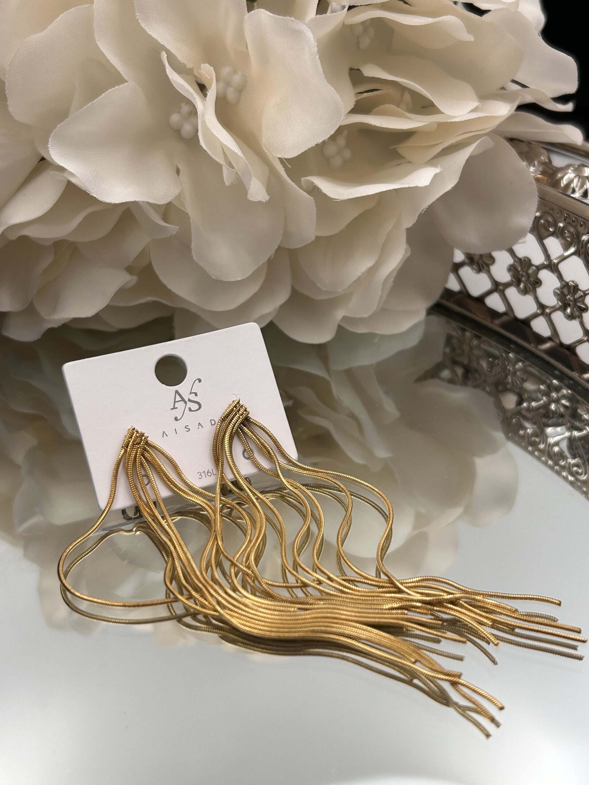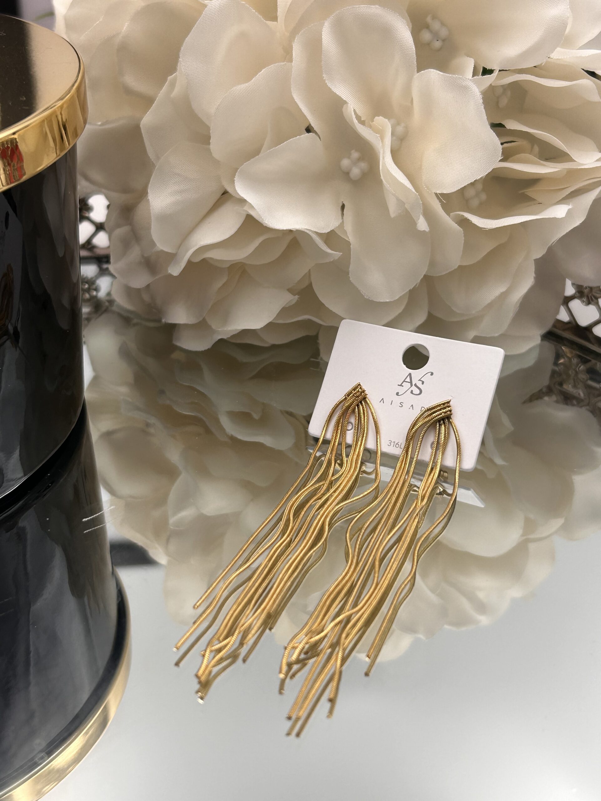 Kolczyki długie, wiszące wężyki. Kolor złoty.