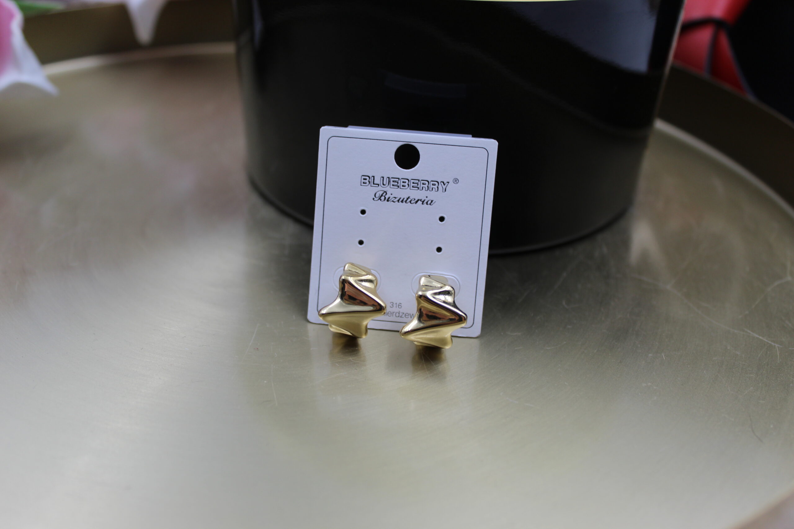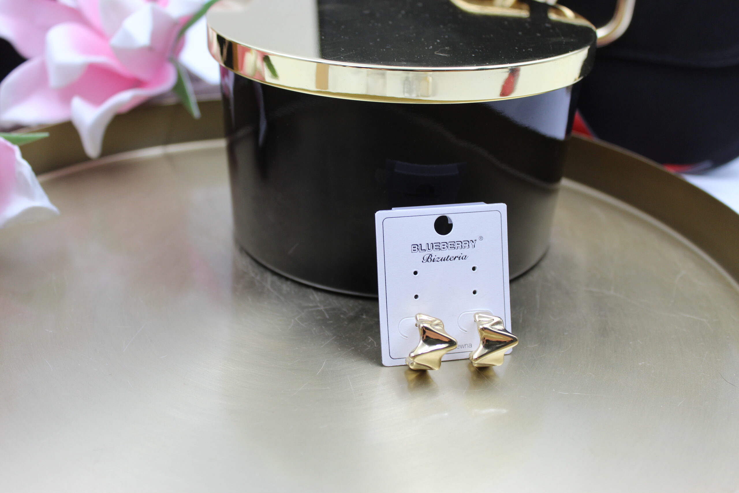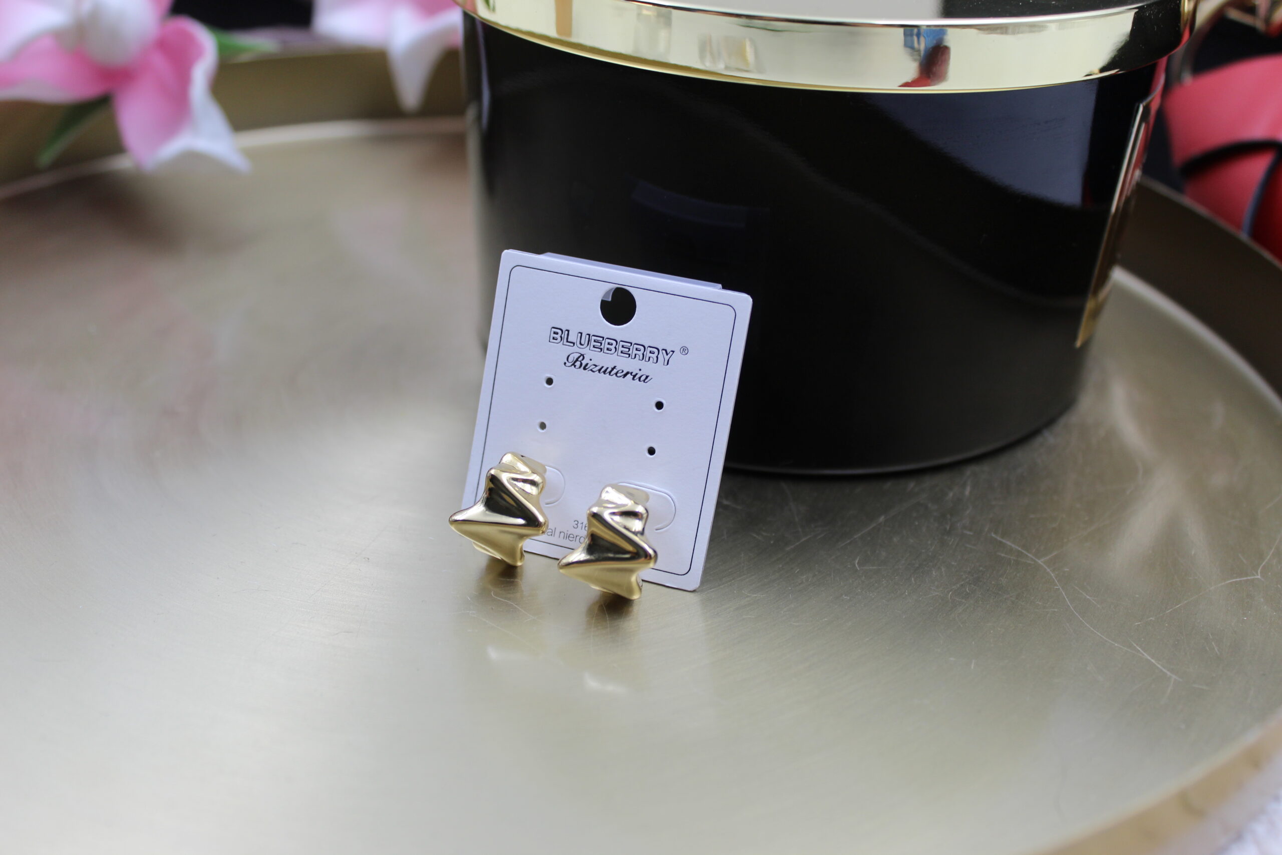 Piękne kolczyki, wiszące, falowane, półkola, zygzaki, kolor złoty.